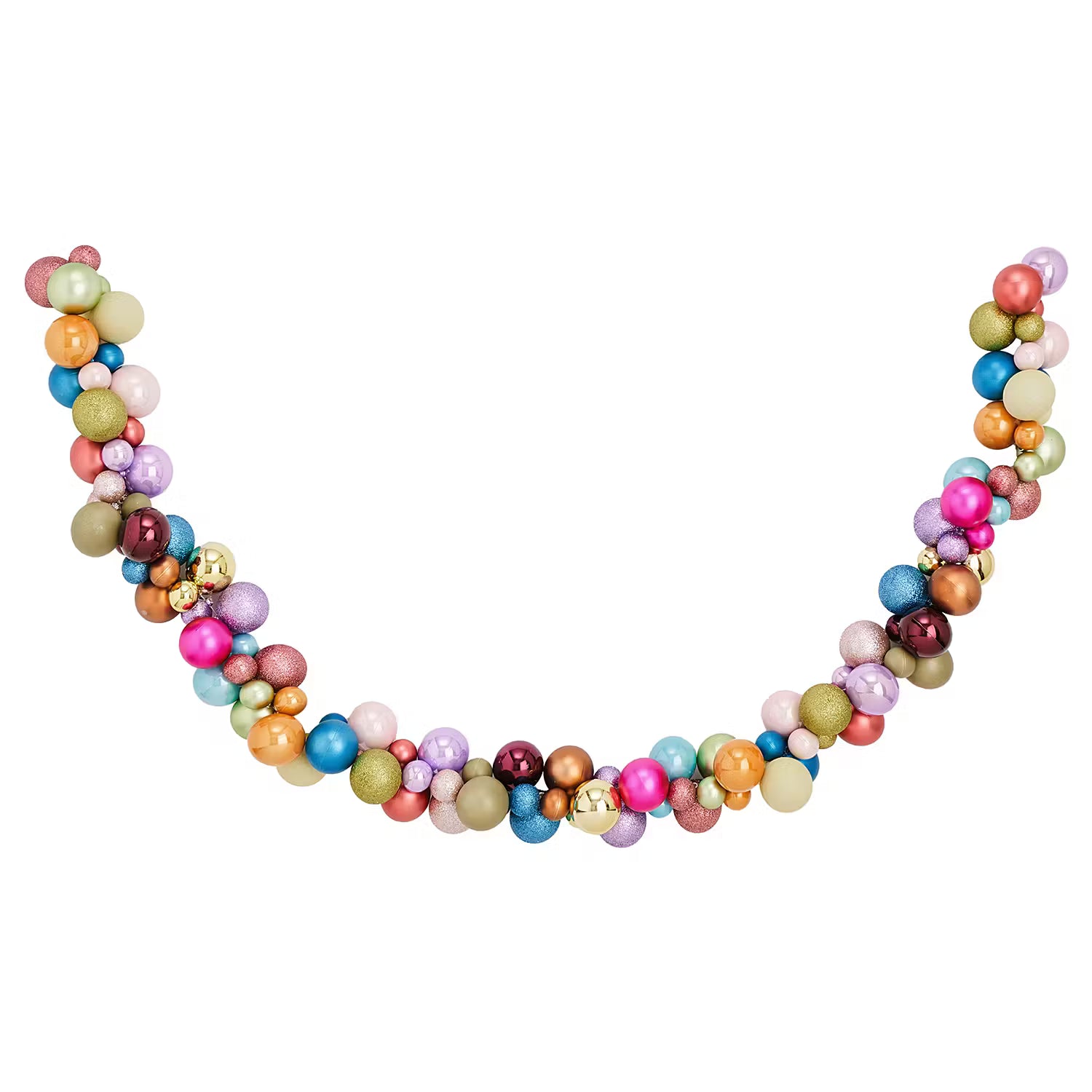 Eng mit bunten Kugeln bestückt, wird aus dieser Festival Girlande eine runde Sache in rundum festlich-eleganter Optik. Sie hängen ihn an die Zimmertür oder an die Wand, dekorieren ihn auf der Tafel oder schmücken damit Ihr Sideboard bzw. Regal - und erzielen so einen schmucken Effekt. Nur für den Innenbereich geeignet.