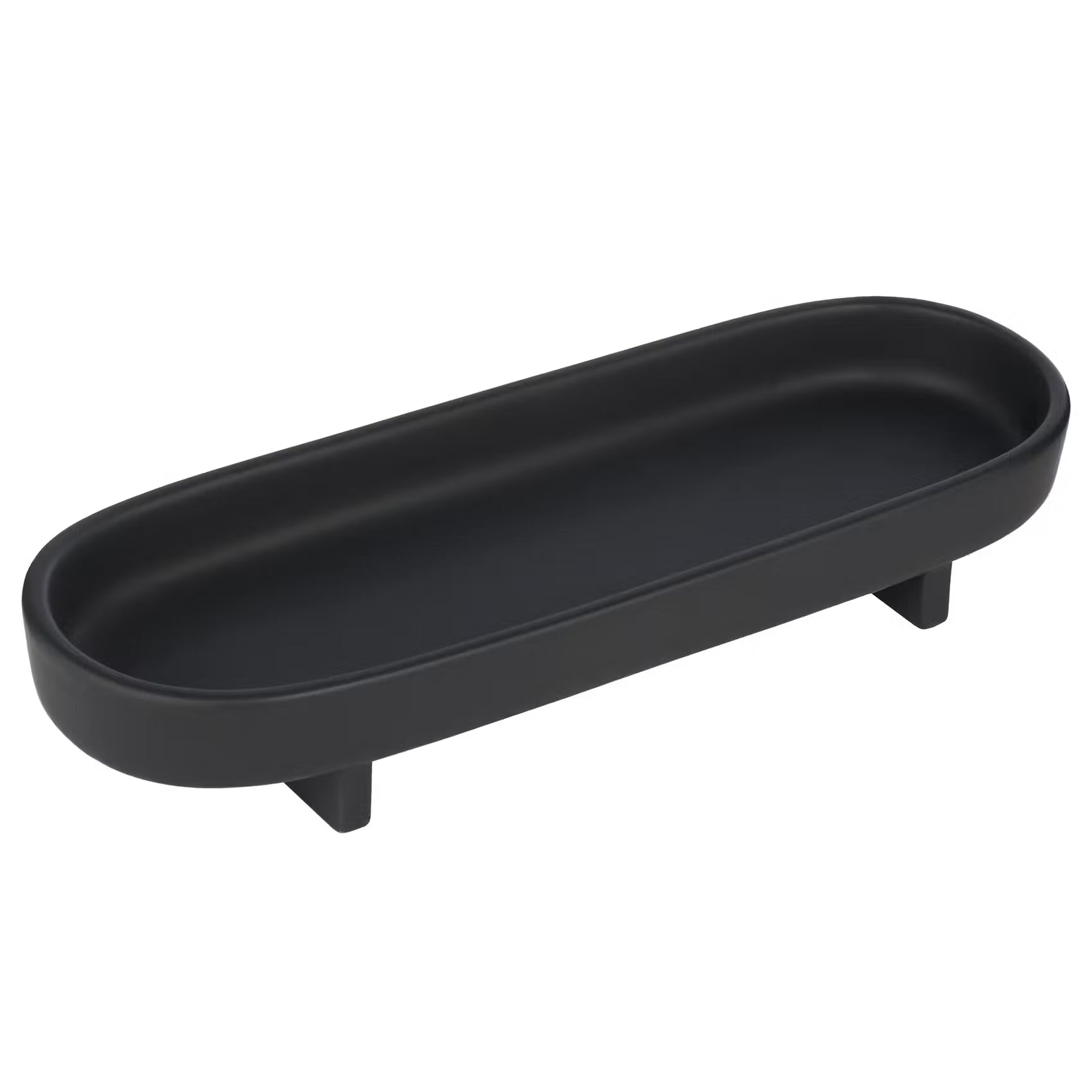 Minimalismus pur: Das formvollendete Kyoto Dekotablett aus Dolomit in Schwarz feiert reduziertes japanisches Design. Du nutzt es als Ablage oder als Basis für individuelle Dekorationen, etwa mit Teelichtern oder Vasen.