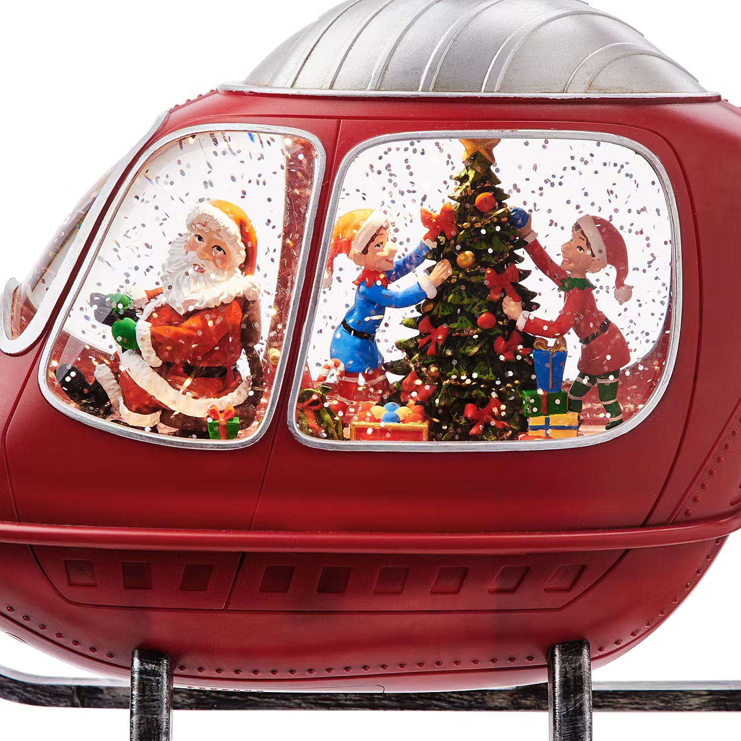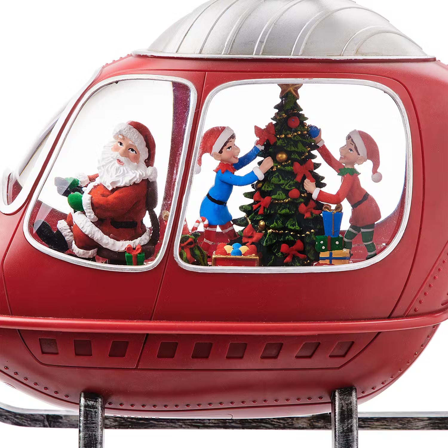 Santa Claus an Tower: Ich lande jetzt mit Ladung in meinem X-Mas Deko Hubschrauber mit LED-Lichteffekt! Tatsächlich kommt bei dieser originellen Weihnachtsdeko der Weihnachtsmann mit geschmücktem Baum im eigenen Hubschrauber angereist, um in deinem Zuhause für ordentlich Aufsehen zu sorgen. Die Details und Figuren bei dem trendigen Dekoelement sind liebevoll und aufwändig ausgearbeitet, und das macht diese neue Variante der fliegenden Kutsche zu einem echten It-Piece.