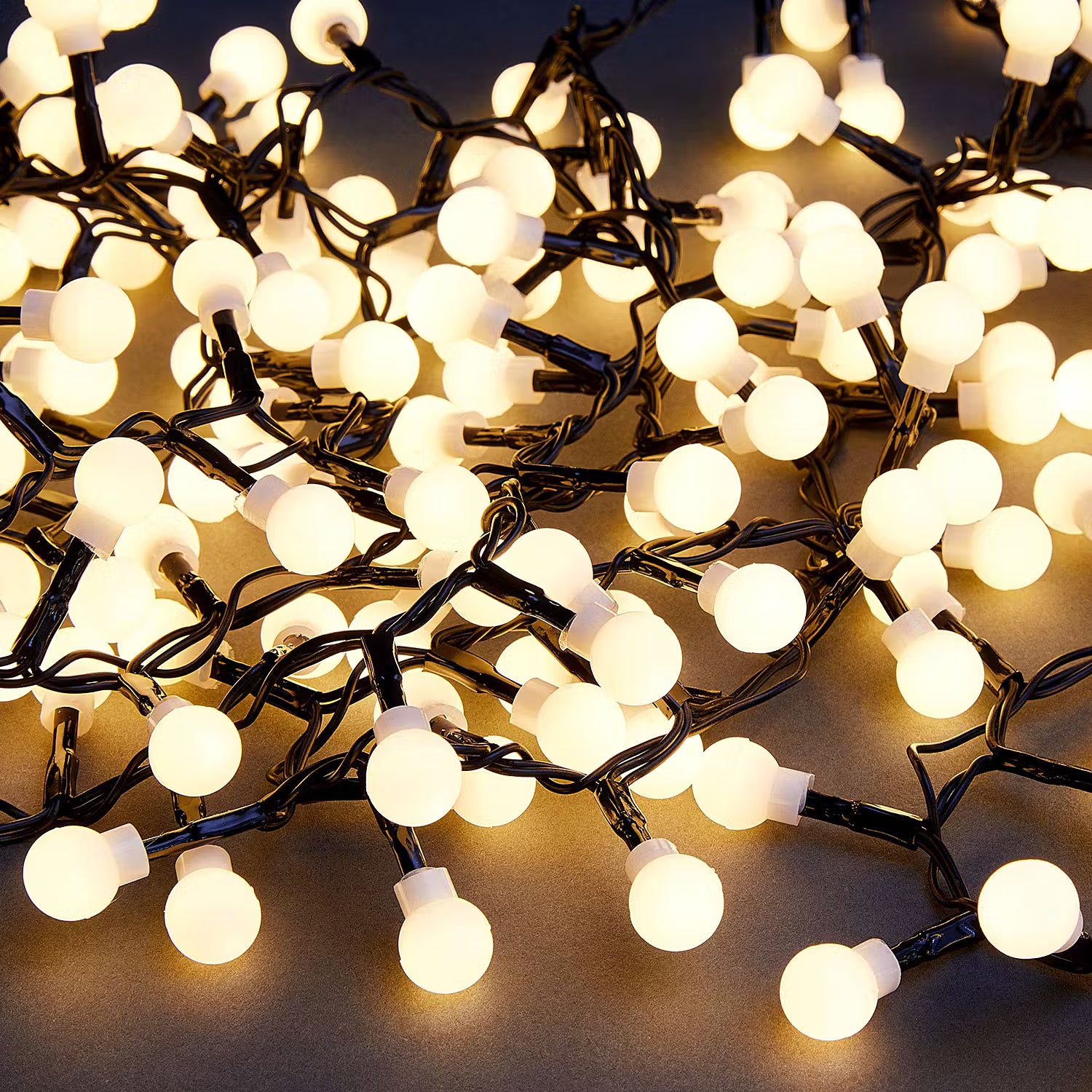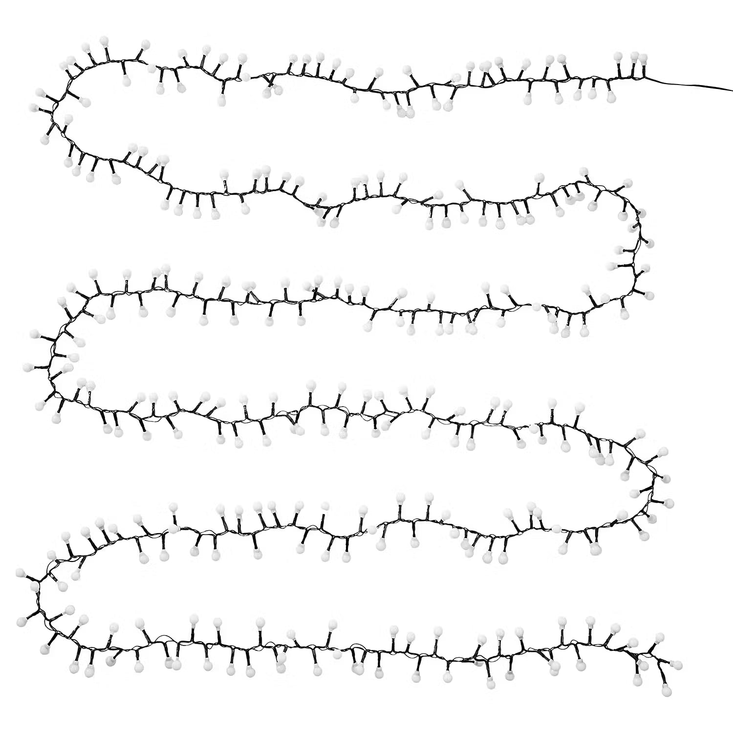 Gemütlich warm-weißes Licht für die Abendstunden auf dem Balkon oder der Terrasse: Die White Bulbs LED Lichterkette mit 200 Lichtern für den Outdoor-Gebrauch erhellt Ihnen die Grillparty oder späten Drink im Freien. Einfach Stecker einstecken, und schon strahlt das dekorative Highlight, zum Bespiel am Geländer, an einem Spalier oder einer Pflanze.