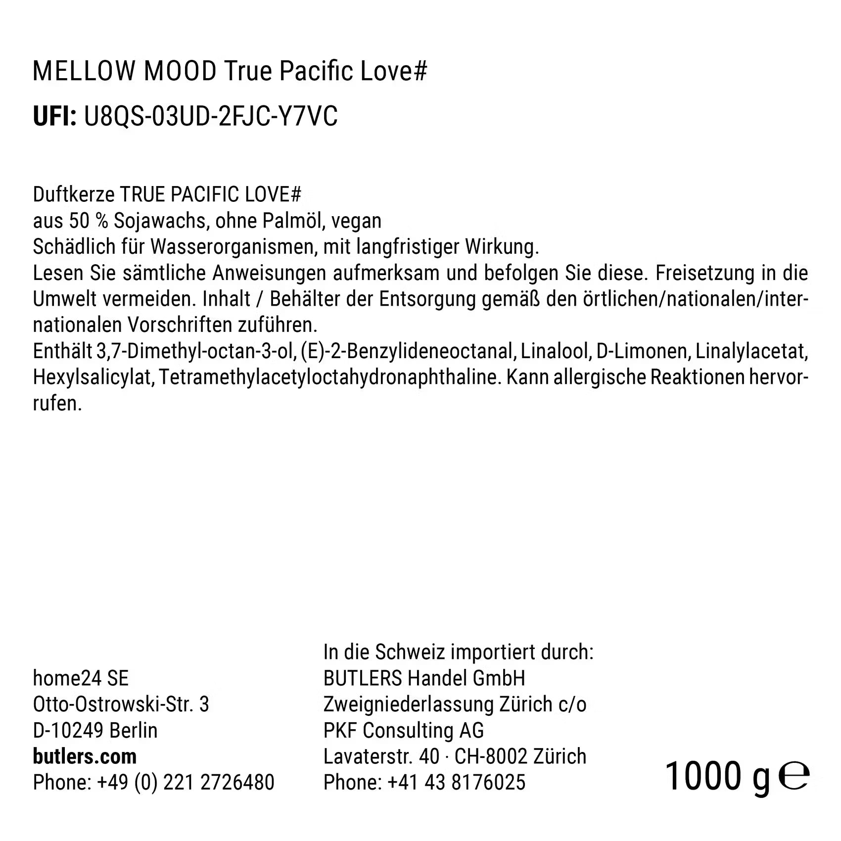 Name: BUTLERS GmbH & Co. KG Adresse: Hohenzollernring 16-18 D-50672 Köln, Germany Elektronische Adresse: https://www.butlers.com/ |