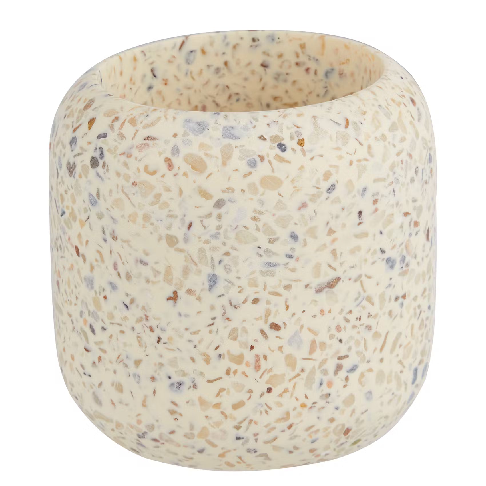 Dein Badezimmer erhält ein stilvolles Upgrade mit dem modernen Paros Zahnputzbecher. Das runde, gesprenkelte Gefäß aus Steinzeug bietet Platz für Zahnbürsten und Zahnpasta und sorgt für Ordnung am Waschbecken. Passende Paros Aufbewahrungsdose und Seifenspender erhältlich – für ein harmonisches Styling in deinem Bad oder in deiner Gästetoilette.