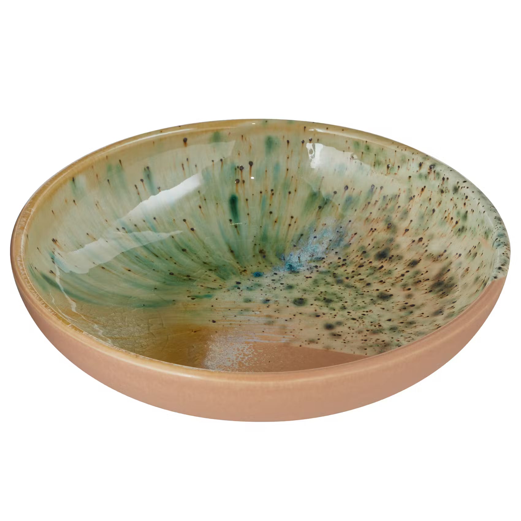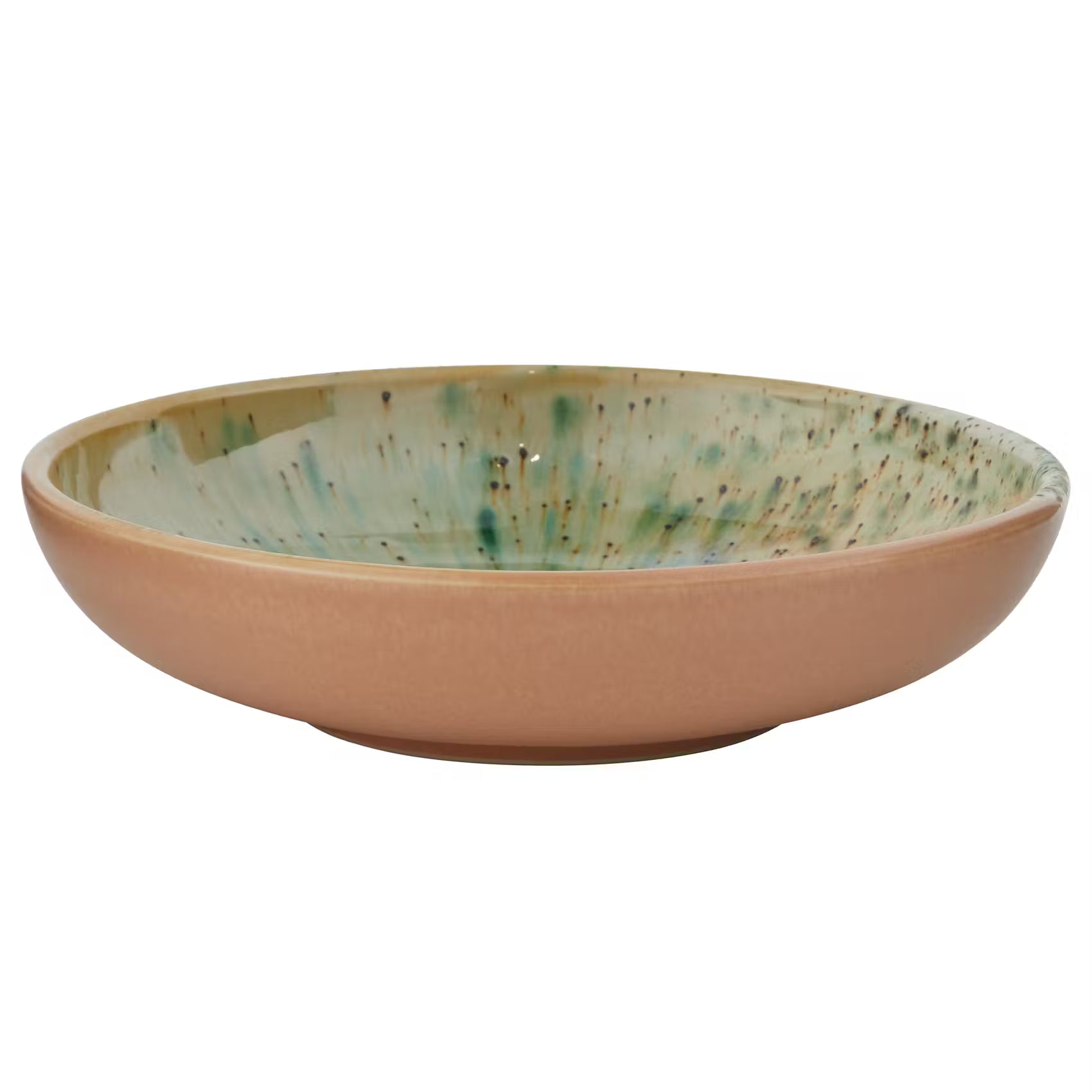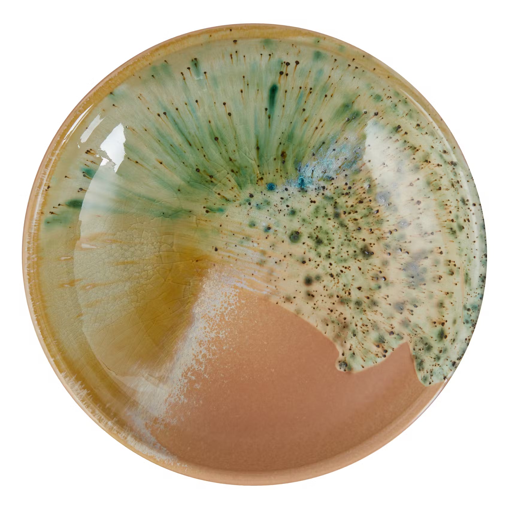 Ein einzigartiges Statement-Piece für deinen gedeckten Tisch: Der Sintra Pastateller 22,8 cm Durchmesser zieht mit seinen dynamischen Farbverläufen und abstrakten Mustern alle Blicke auf sich. Hinter dieser beeindruckenden Optik verbergen sich natürlich Glasuren mit individuellem Charakter, veredelt durch eine transparente Krakelé Glasur. Erdverbunden und authentisch entsteht so eine besondere Form von Luxus. Der Steinzeug-Teller ist übrigens spülmaschinengeeignet und mikrowellengeeignet, und für den perfekt gedeckten Tisch gibt es aus der Sintra Geschirrserie weitere Teller, Salatschalen und Servierschalen in verschiedenen Farbvarianten.