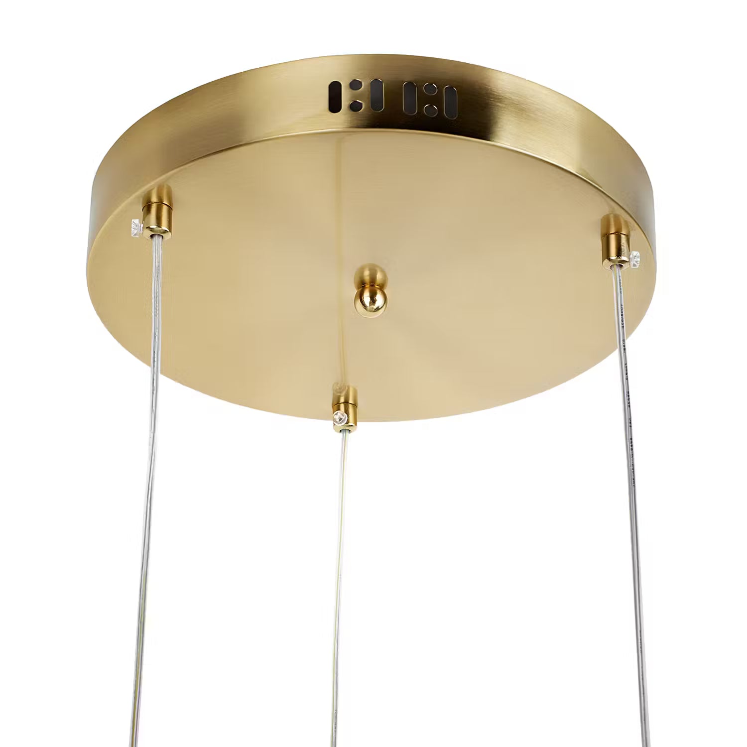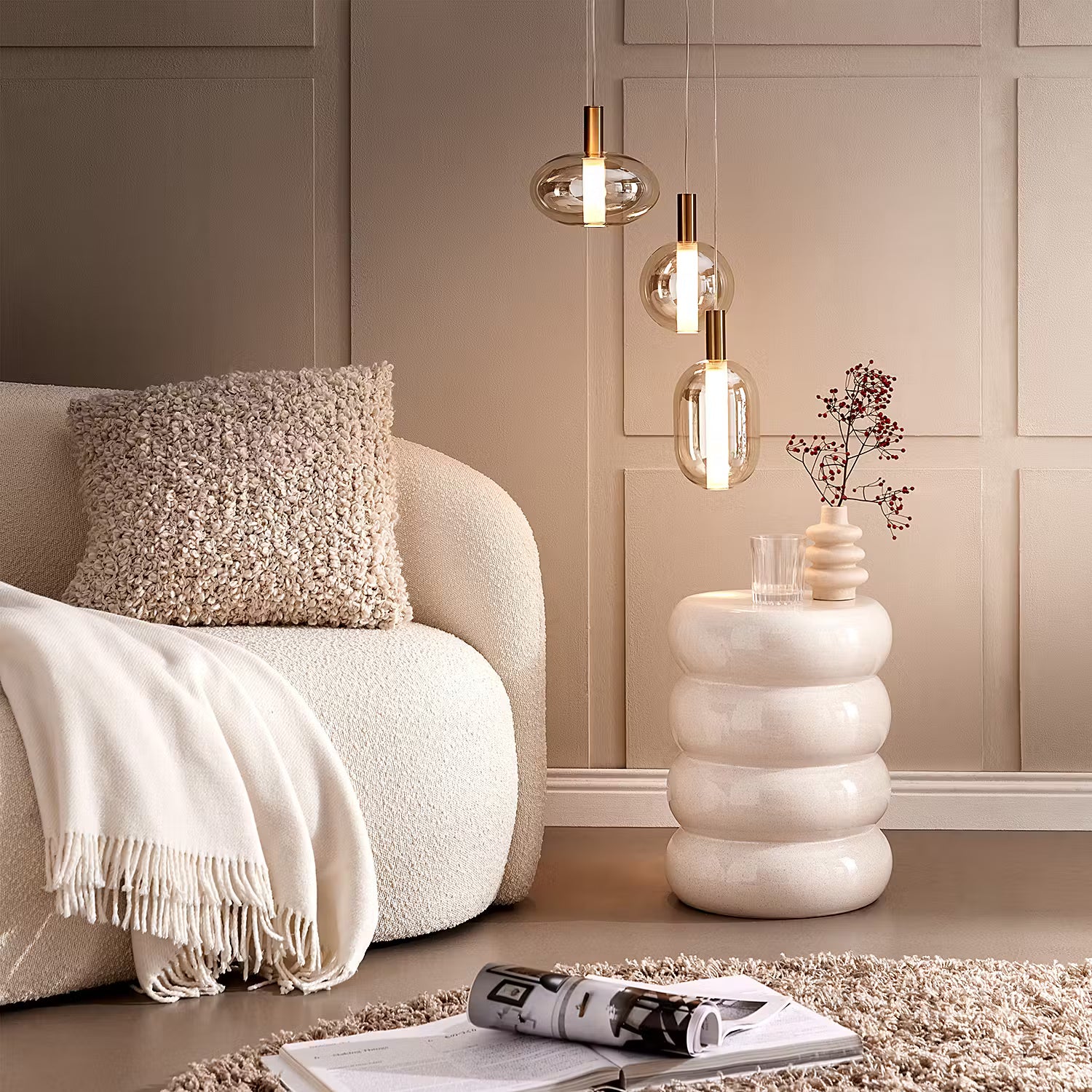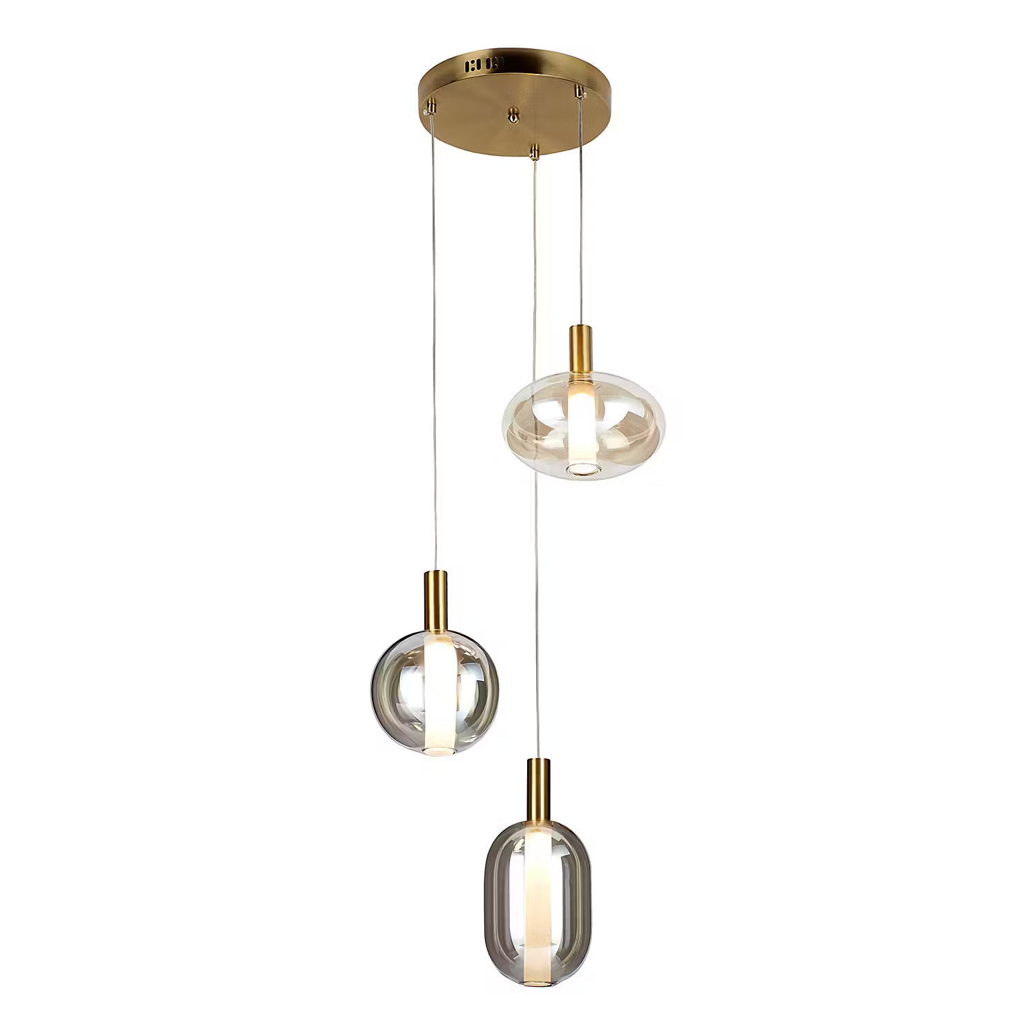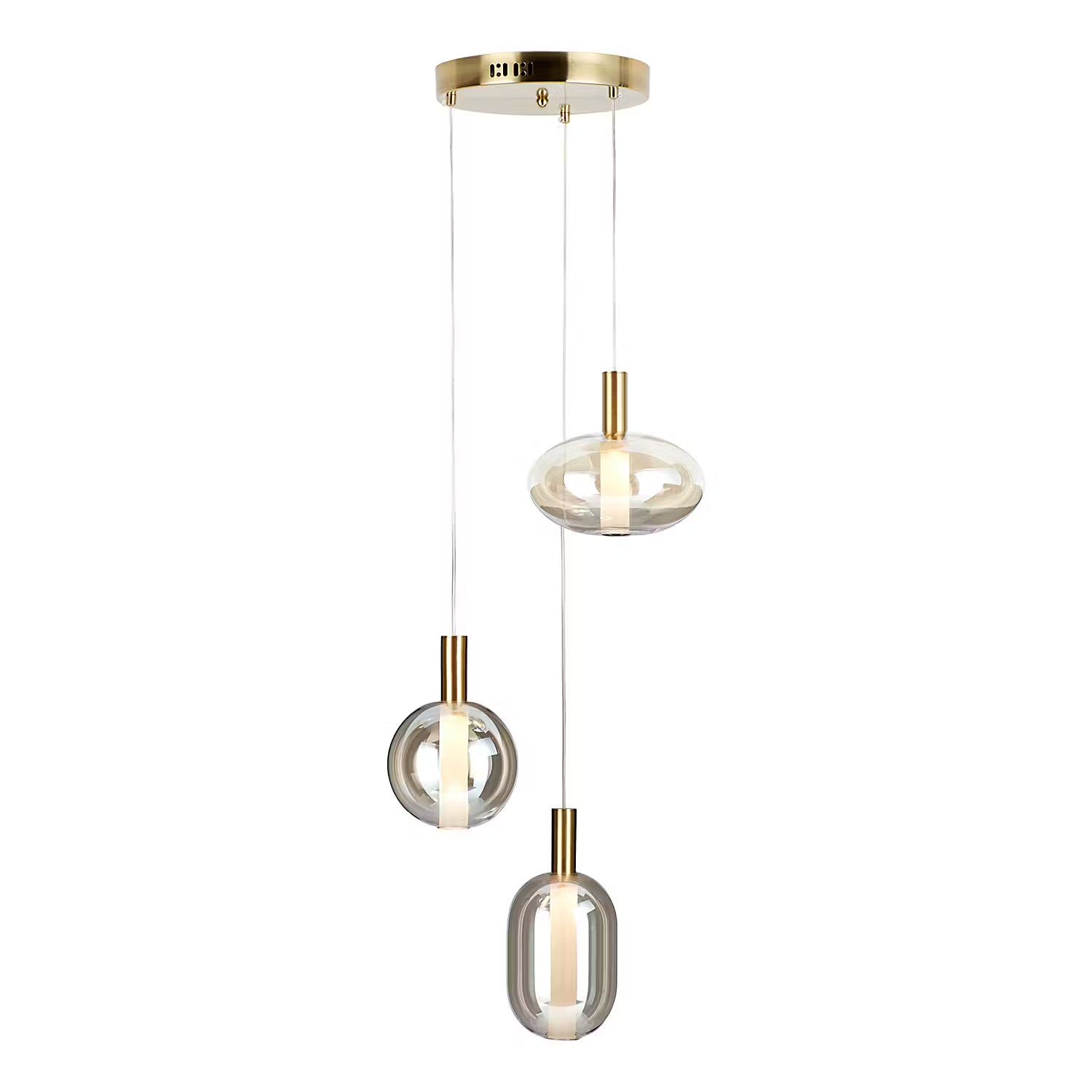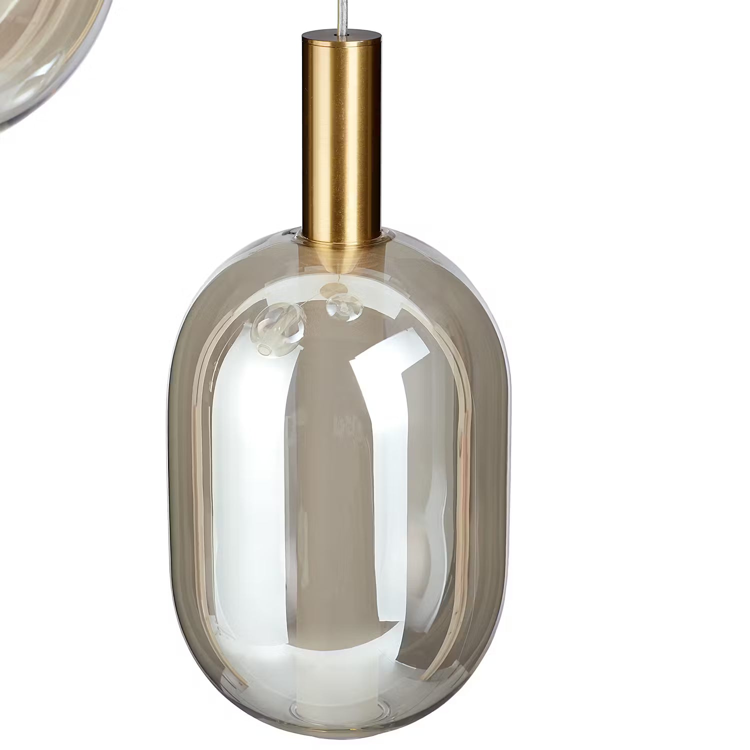 Die Exemplar Pendelleuchte 3-flammig rund hat es in sich: In die Glaskugeln sind stabförmige Leuchtmittel integriert, die optisch nach oben durch eine goldfarbene Aufhängung verlängert werden. So reduziert dieses Design auch ist, so maximal ist doch der Effekt, vor allem durch die goldfarbenen Akzente. So ergänzt du deine moderne Einrichtung stilsicher um einen eleganten Blickfang. In verschiedenen Varianten erhältlich.