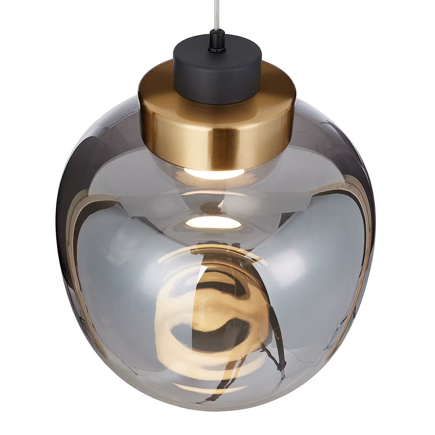 Die Exemplar Pendelleuchte smoky hat es in sich: In die dunkelgraue Glaskugel ist ein stabförmiges Leuchtmittel integriert, das optisch nach oben durch eine goldfarbene Aufhängung verlängert wird. So reduziert dieses Design auch ist, so maximal ist doch der Effekt, vor allem durch die goldfarbenen Akzente. So ergänzt du deine moderne Einrichtung stilsicher um einen eleganten Blickfang. In verschiedenen Varianten erhältlich.