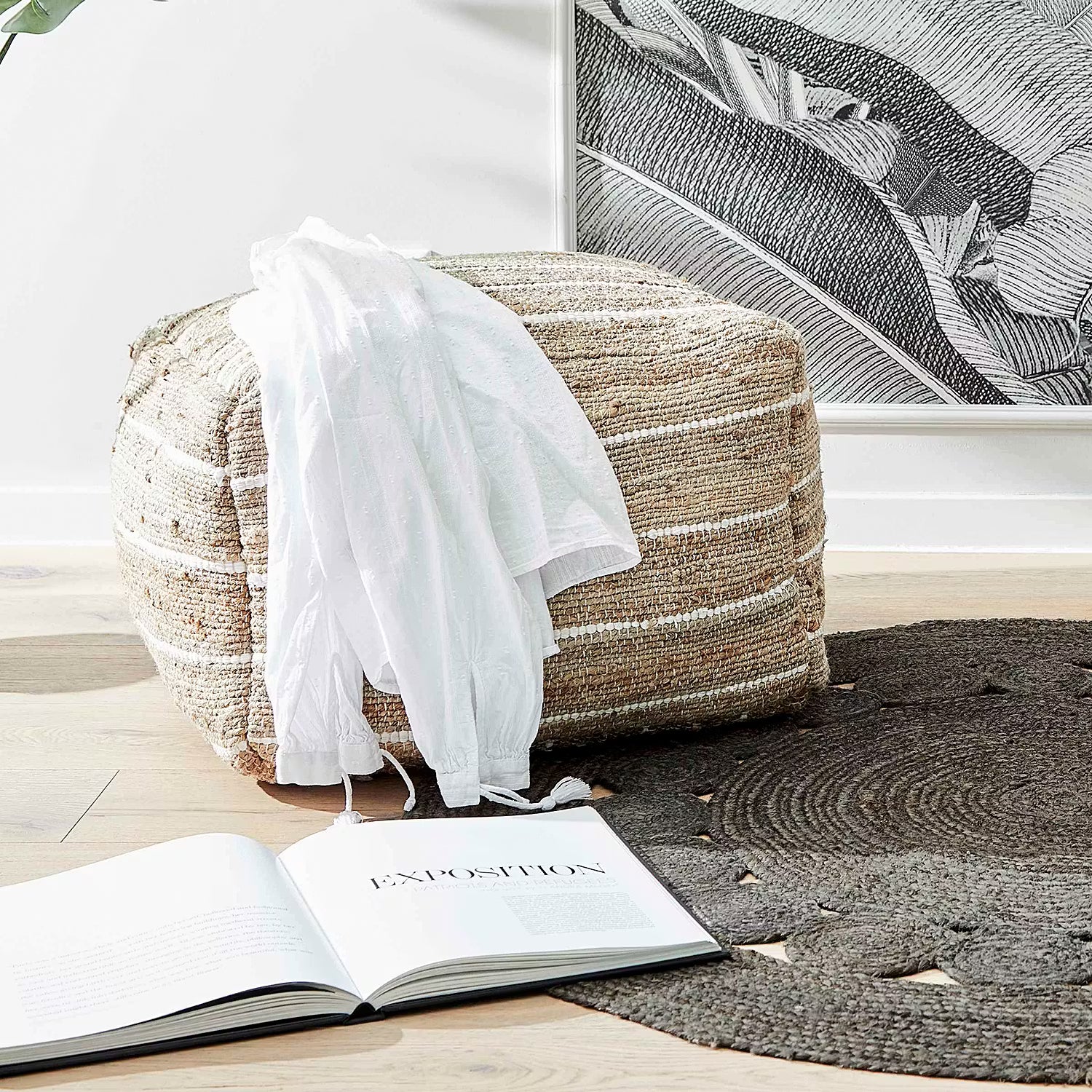 Kein Pouf wie jeder andere: Beim handgefertigten All Nature Sitzpouf zeigt sich das Naturmaterial Hanf von seiner charakteristischen Seite. Individuelle Unregelmäßigkeiten in der Webung sind sichtbar, und das harmoniert wunderbar mit der neutralen Farbgebung. So wird jeder Sitzwürfel zu einem dekorativen Unikat - und mit Tablett im Handumdrehen sogar zum praktischen Beistelltisch, zum Beispiel neben Ihrem Lieblingssessel.Jedes Teil ein Unikat: Natürliche Unterschiede bei der FarbgebungBoho-Trend: für den relaxten Lifestyle Kontakt mit Feuchtigkeit vermeiden, da Flecken entstehen können. Auch gut für Allergiker geeignet. Nicht waschbar.