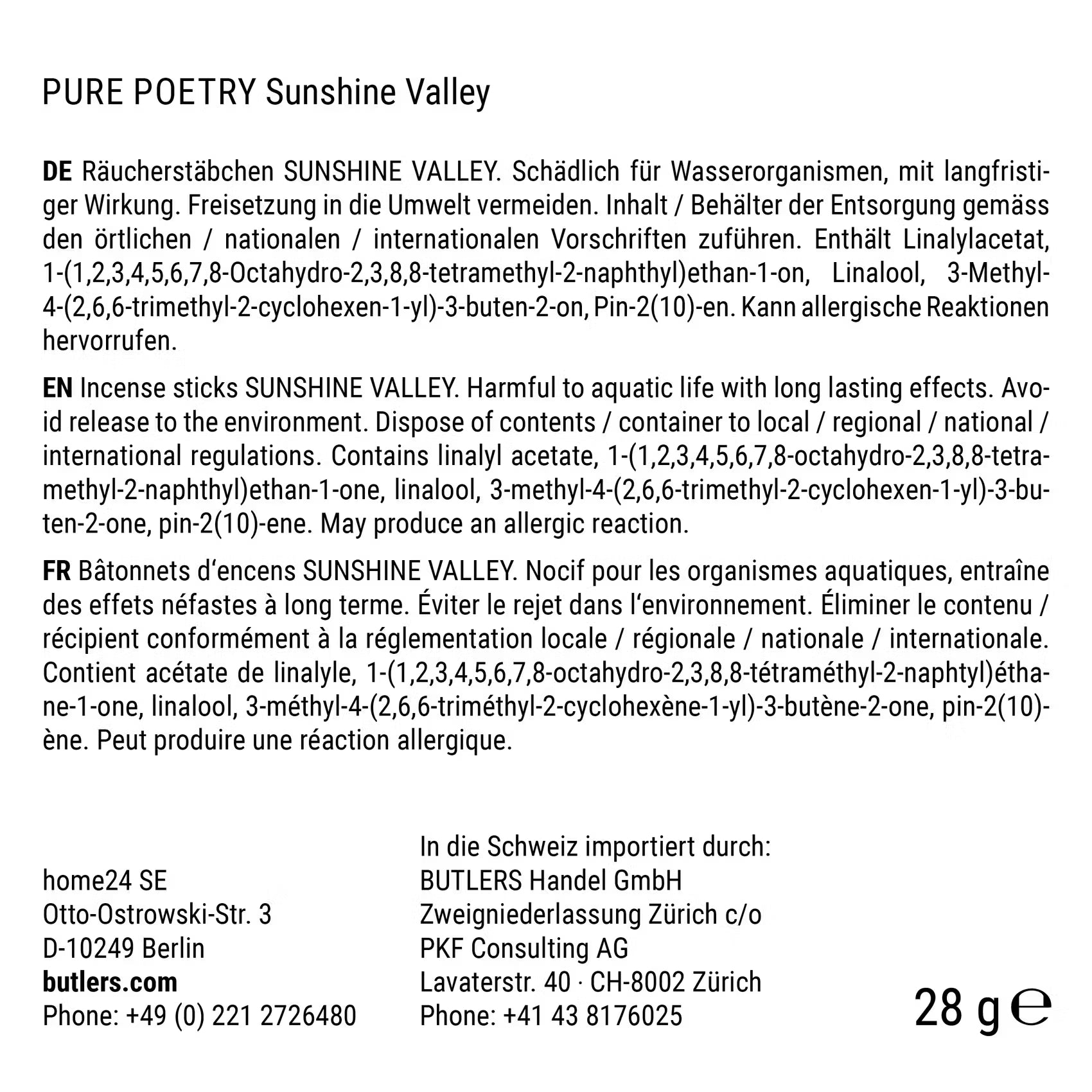 Name: BUTLERS GmbH & Co. KG Adresse: Hohenzollernring 16-18 D-50672 Köln, Germany Elektronische Adresse: https://www.butlers.com/ |