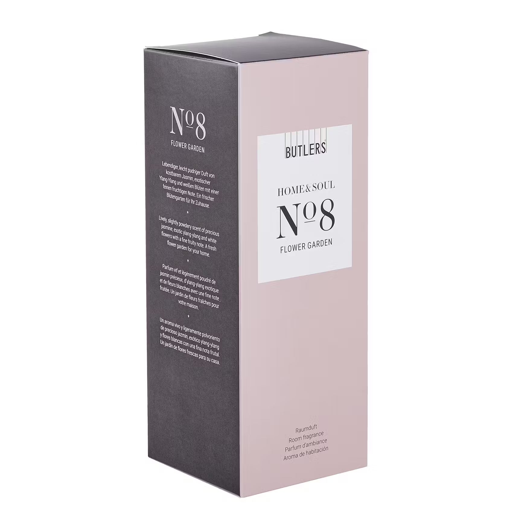 „Blume der Blumen“ heißt Ylang-Ylang auf Indonesisch. In dem Home & Soul Raumduft Flower Garden sind es diese exotischen Blüten, gepaart mit knackigem Rhabarber und fruchtigen Noten von Apfel und Pfirsich, die Ihr Zuhause in einen frischen Blütengarten verwandeln. In einer weiteren Größe erhältlich. Verschiedene Dufterlebnisse hat Butlers für Sie in Raumdüften der Home & Soul Serie eingefangen. In der französischen Parfümstadt Grasse aufwändig komponiert und in Deutschland sorgfältig hergestellt, erfüllen die Flakons Ihr Zuhause mit einem sinnlichen Hauch - von aromatisch frisch bis blumig, von belebend-würzig bis betörend.