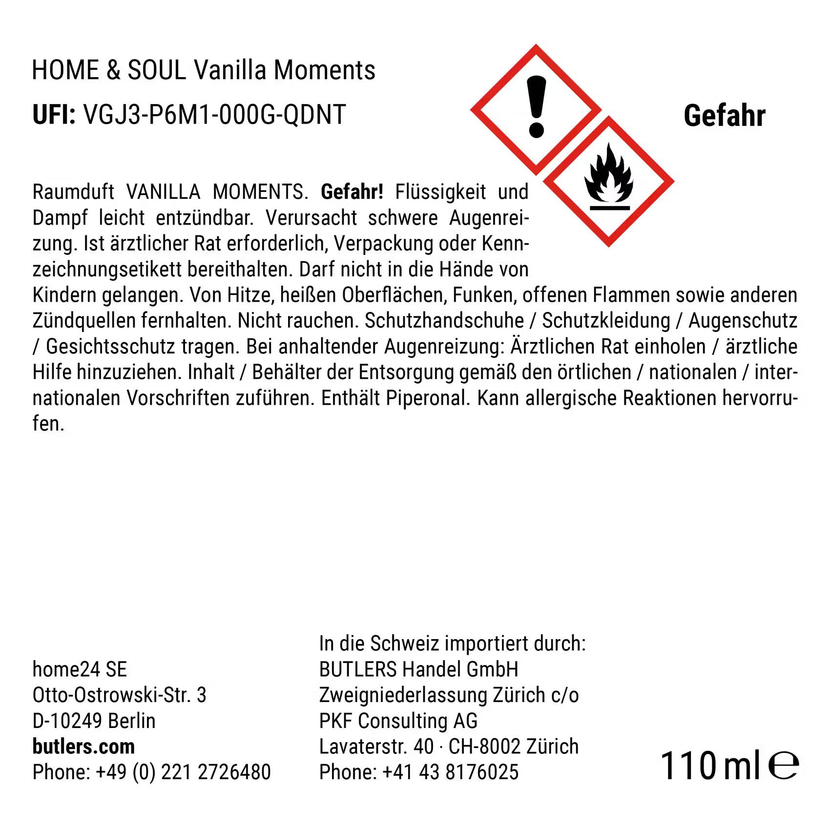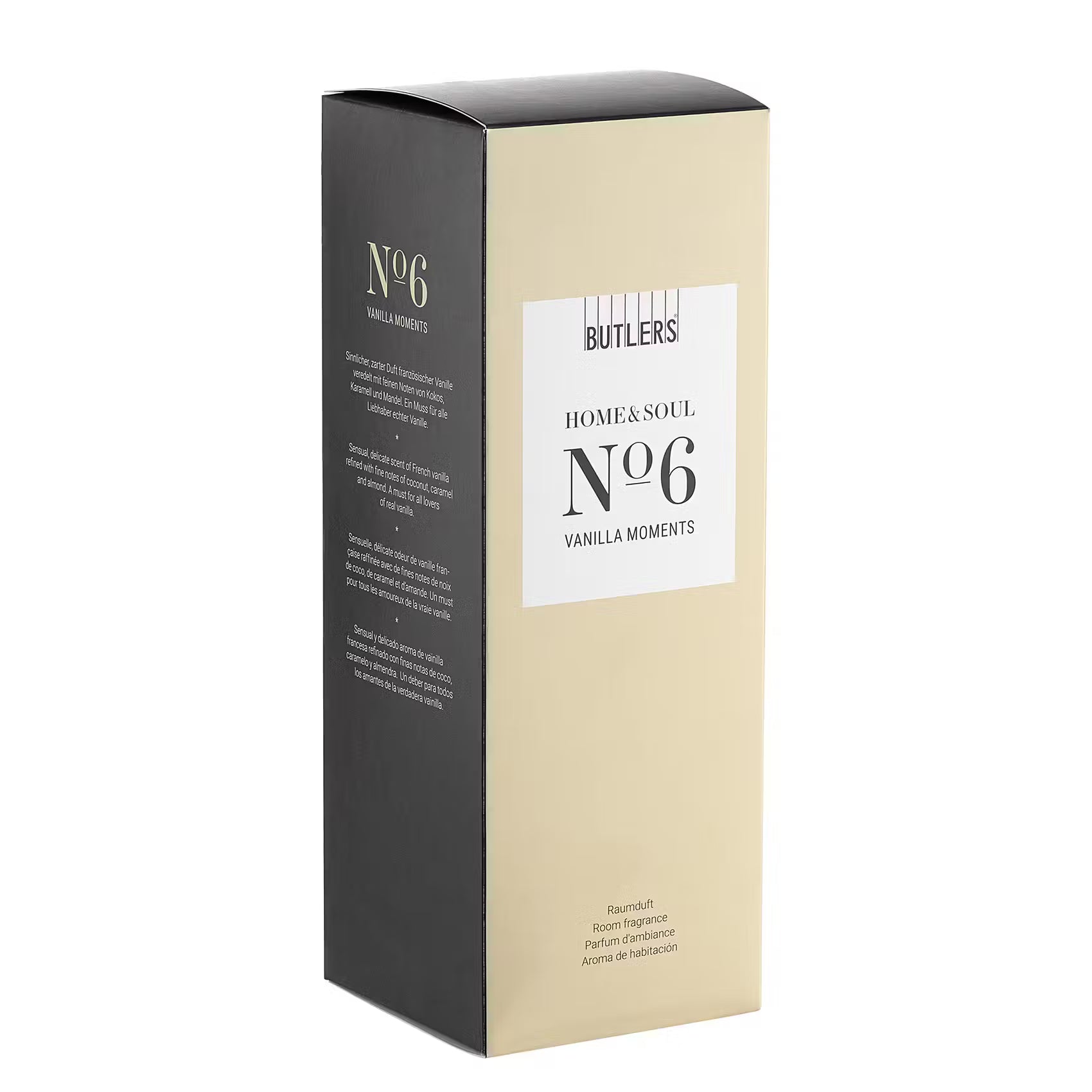 Der Duft von Vanille, zarten Blumen und Beeren – im Home & Soul Raumduft Vanilla Moment ergeben diese Aromen zusammen mit einem Hauch von Vetiver und frischem Moos eine sinnliche Komposition ganz nach Ihrem Geschmack. In einer weiteren Größe erhältlich. Verschiedene Dufterlebnisse hat Butlers für Sie in Raumdüften der Home & Soul Serie eingefangen. In der französischen Parfümstadt Grasse aufwändig komponiert und in Deutschland sorgfältig hergestellt, erfüllen die Flakons Ihr Zuhause mit einem sinnlichen Hauch - von aromatisch frisch bis blumig, von belebend-würzig bis betörend.