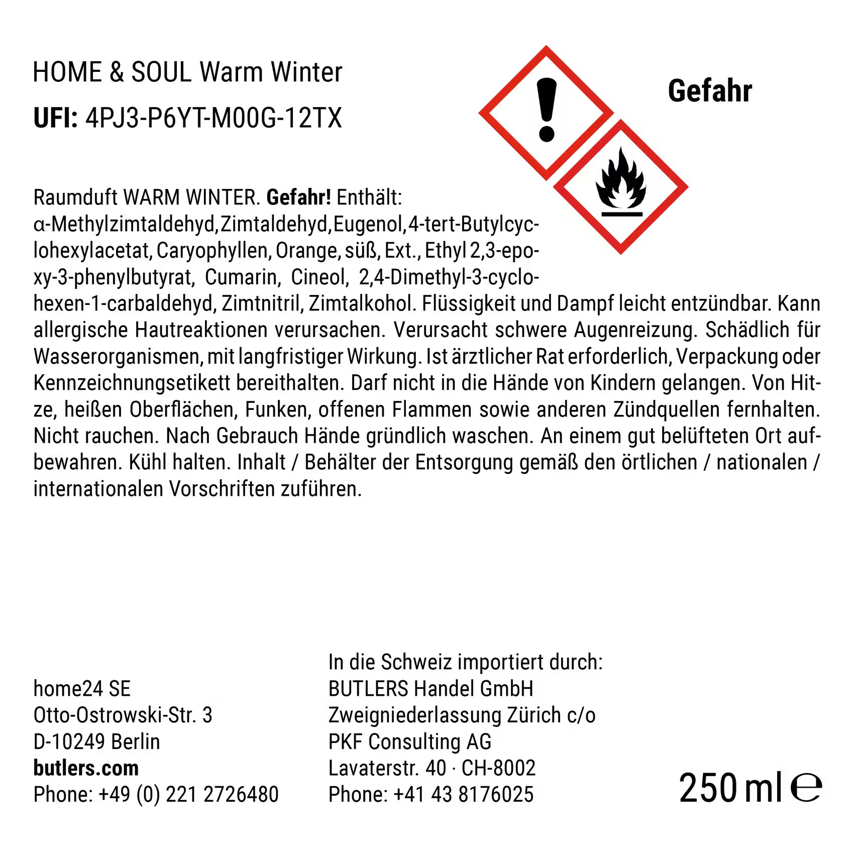 Warmer Duft aus fruchtigem Apfel, würzigem Zimt und frischer Nelke, mit einer Basis aus Vanille und Karamellnoten im Abgang. Wie ein Winterabend vor dem knisternden Kamin.