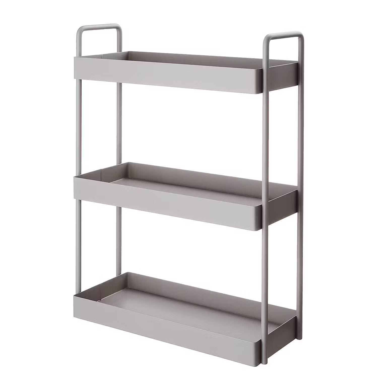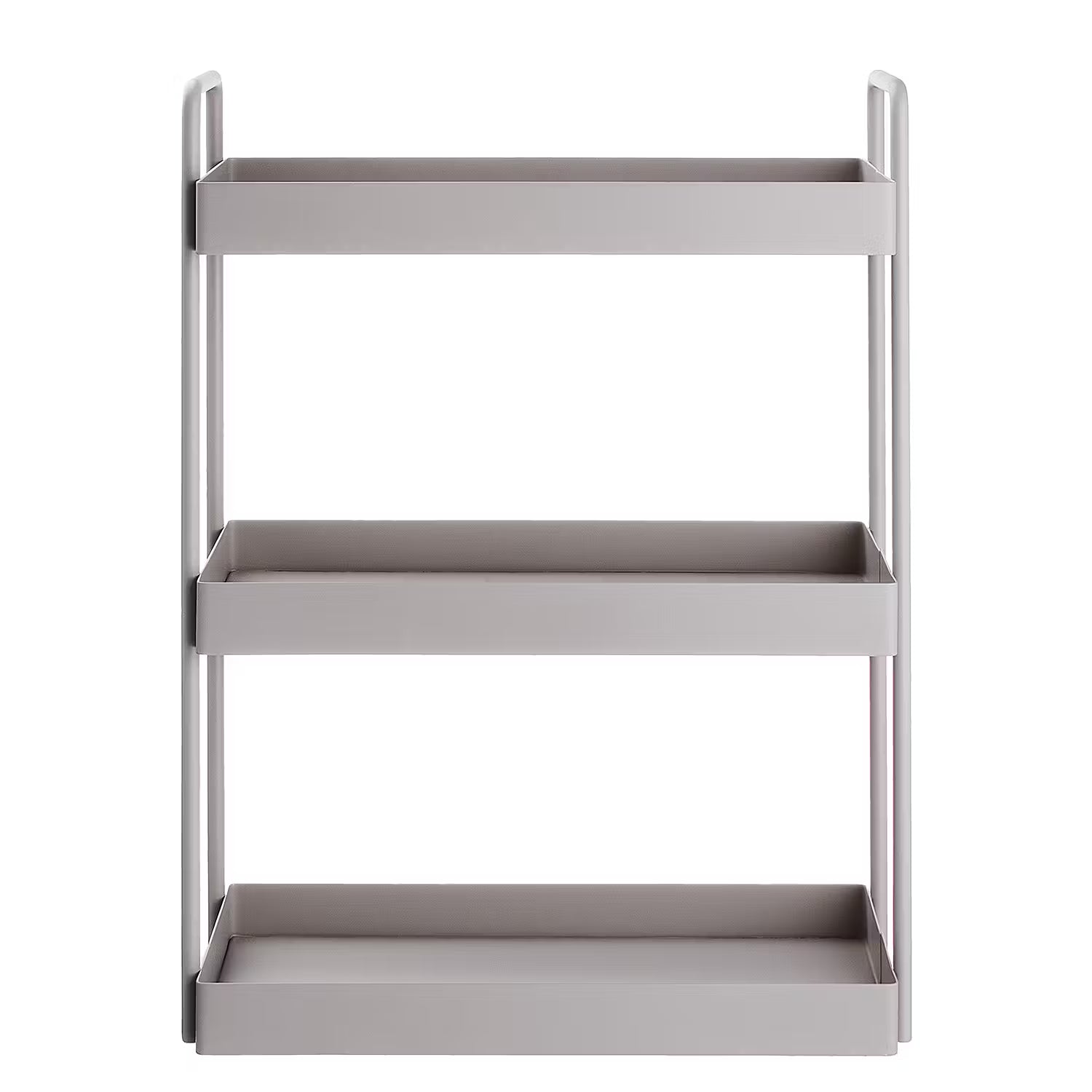 Ordnung kann so modern und cool aussehen mit dem Sideline Regal mit 3 Böden. Das geradlinige Regal aus massivem Metall findet mit seinem kompakten Maßen fast überall Platz und bietet wertvolle Abstellfläche für z.B. Dosen, Kosmetik oder Bürobedarf. Im Alltag erweist es sich mit seiner pulverbeschichteten Oberfläche dabei als robust und unkompliziert, zum Reinigen staubt oder wischt man das Regal einfach mit einem weichen Lappen ab. So sieht bei Ihnen alles tipptopp aus und Schmuddelecken haben keine Chance.