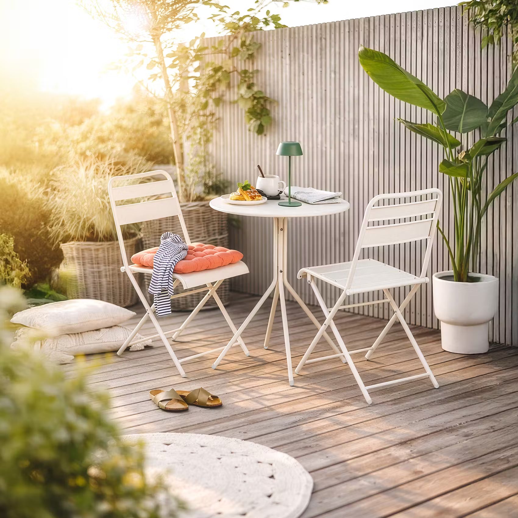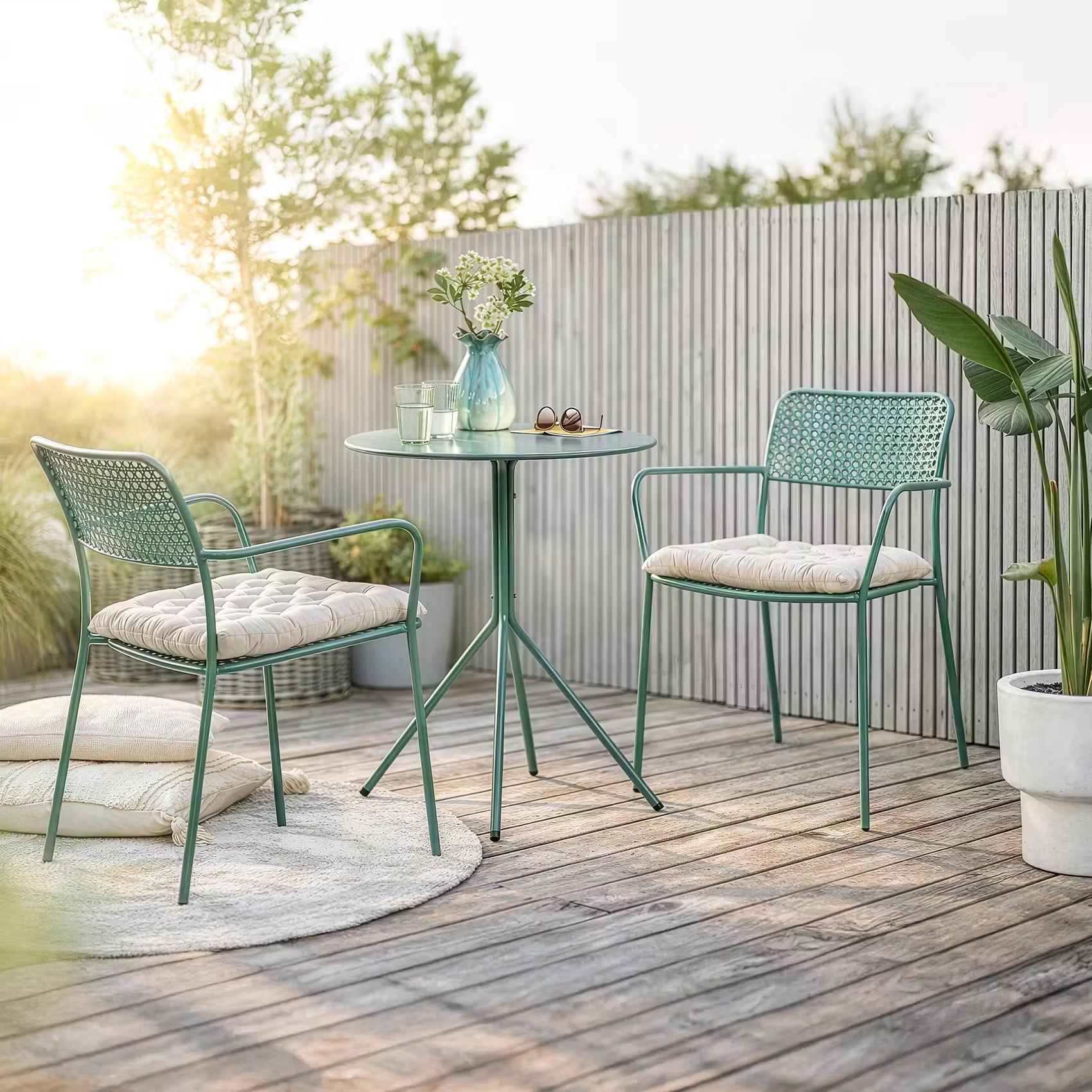 Schon auf den ersten Blick bist du ganz verliebt in den Rendevouz Bistrotisch aus Stahl. Die runde Tischplatte dieses eleganten Möbelstücks für indoor und outdoor hat einen Durchmesser von kompakten 60 cm. Damit geht der formschöne Tisch gerne auch eine Beziehung ein mit kleineren Balkonen oder Mini-Küchen. Erhältlich in Beige, Salbei und Orange, kombiniertbar mit den Stühlen Jill, Tonka, Urban One und New Twist.