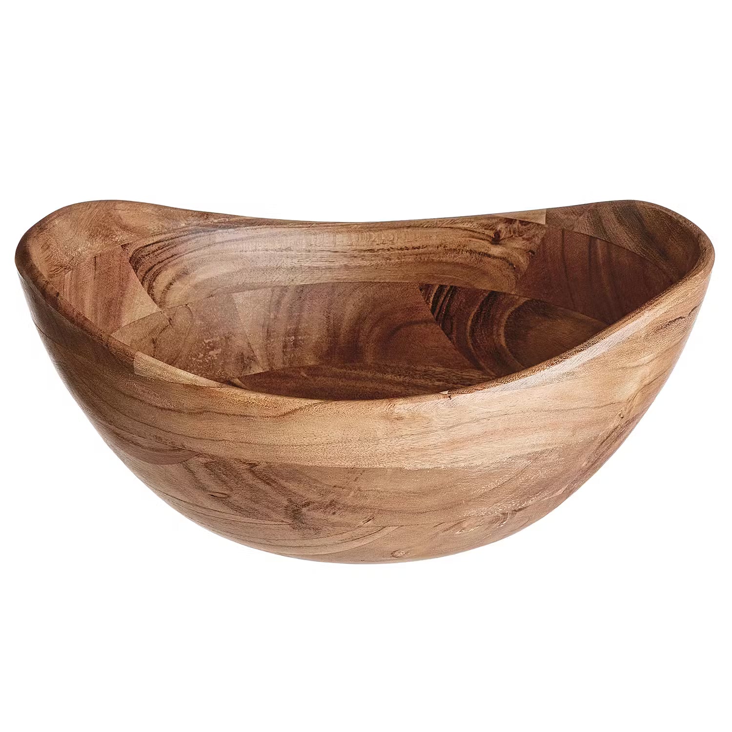 Besonders robust und farblich wunderschön: Echtes Akazienholz ist das perfekte Naturmaterial für die dekorative Acacia Salatschale organisch. Das warm schimmernde Braun, die edle Maserung und die angesagte organische Form machen die Schale optisch zu einem echten Hingucker. Funktional punktet das Akazienholz mit seiner von Natur aus schmutz- und wasserabweisenden Art, zudem nimmt es keine Gerüche auf.