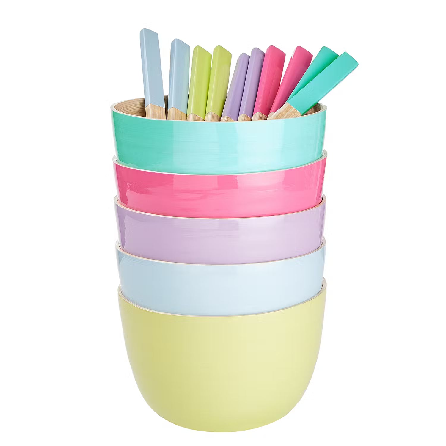 Ob mit Grünzeug und Gemüse, Rohkost oder Früchten: Knackig frische Salate sehen zum Anbeißen gut aus in der modernen Bamboo Schale mit salbeifarbener Lackierung außen und naturfarbenem Bambus innen. Weitere Farben und Größen erhältlich, zudem gibt es passende Bamboo Salatbestecke. So bringen Sie immer und für alle den richtigen Mix auf Ihren gedeckten Tisch.