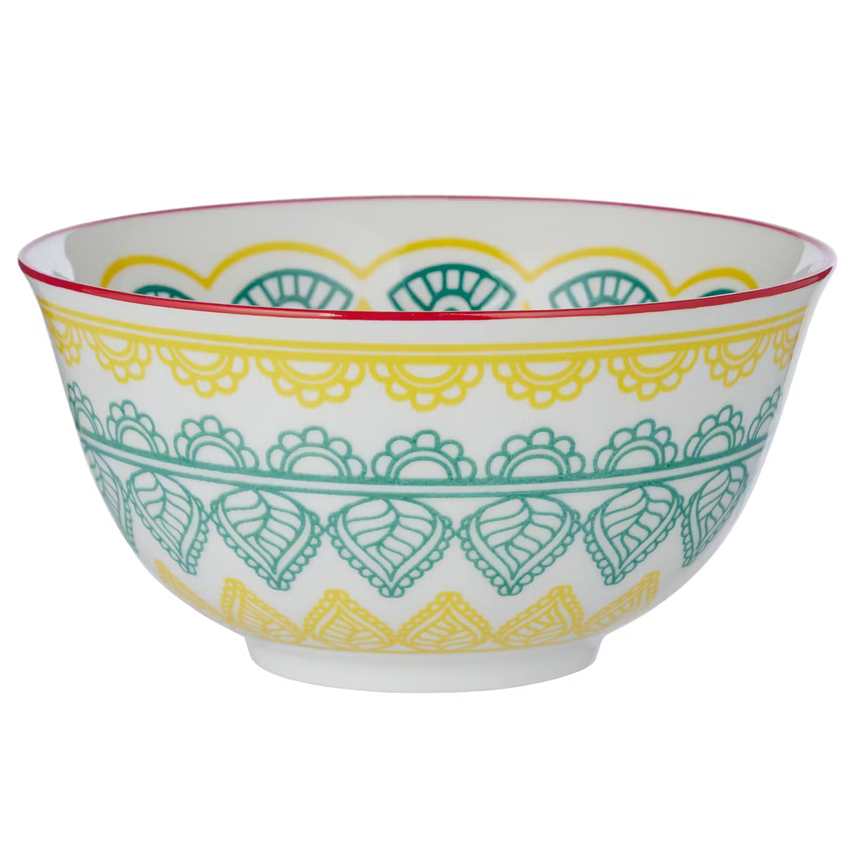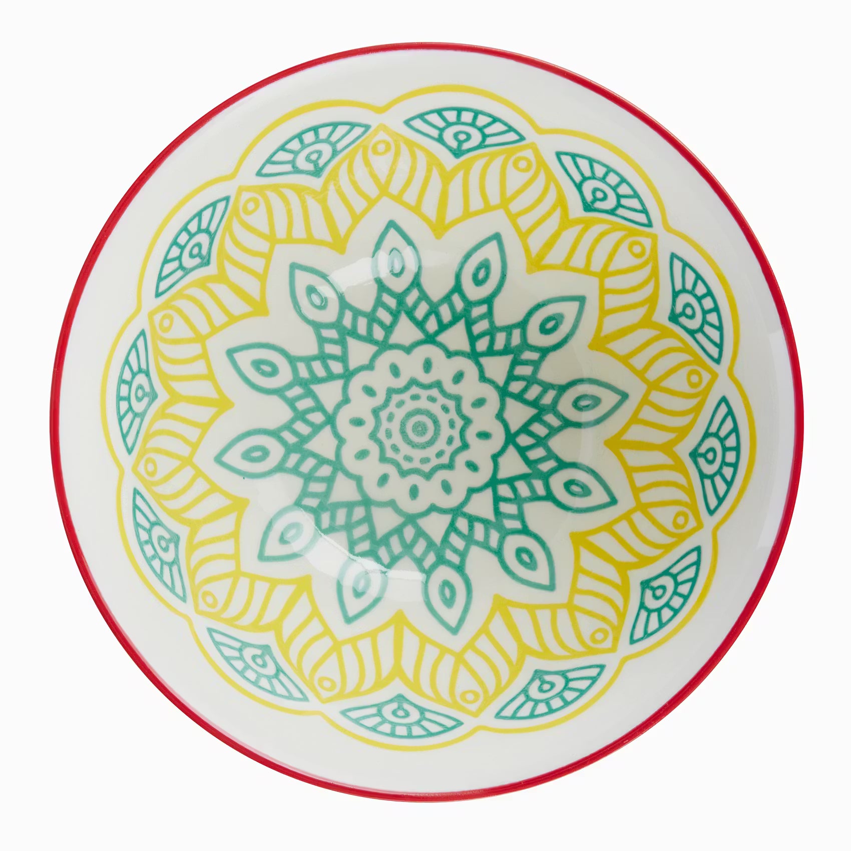 Schale mit Stil: Das bunte Ornaments-Geschirr im 6er-Set passt in jede moderne Küche und ist ein stylischer Blickfang auf Ihrem Esstisch. In dieser Porzellanschale können Sie Ihren Gästen leckere Kleinigkeiten servieren. Vielseitig einsetzbar: Als Müslischale, als Suppenschale, für Süßigkeiten, Chips und andere Snacks. In verschiedenen Varianten und Größen erhältlich.
