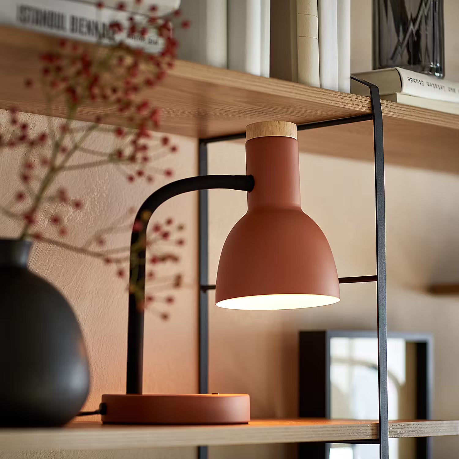Konzentriertes Arbeiten braucht genug Licht, und genau hier leistet die Hedvig Schreibtischleuchte ganze Arbeit. Die moderne Leuchte aus Metall und Holz bietet einen verstellbaren Lampenkopf, so dass du das Licht gezielt auf z.B. Papiere, Bücher oder Laptop richten kannst. Ihre Funktionalität verbindet die Schreibtischlampe dabei mit einem klaren, kombistarken Design. In verschiedenen Farben erhältlich.