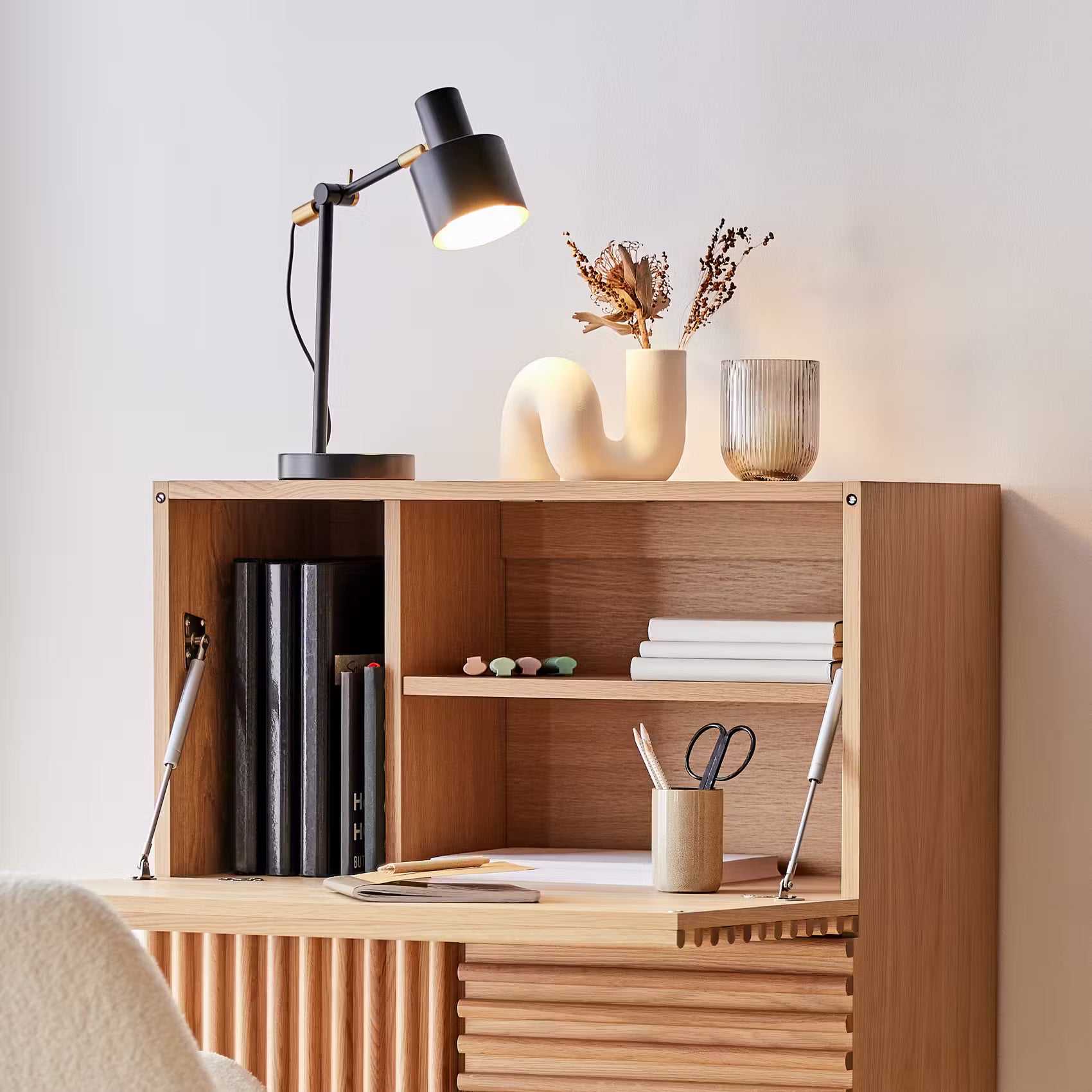 Moderne Formensprache mit klaren Linien: Die verstellbare Isak Schreibtischleuchte ist eines der schönsten Beispiele, wie skandinavisches Design einen aufgeräumten Look mit Funktionalität verbindet. Das macht die Schreibtischlampe aus Metall zu einem Highlight in deinem Zuhause, z.B. im Homeoffice oder auch auf dem Nachttisch. Für deine stimmige Einrichtung und deine individuellen Räumlichkeiten umfasst die Isak Leuchtenserie Tisch-, Steh-, Wand- sowie drei- und vierflammige Pendelleuchten in Schwarz und in Creme - ideal zum Kombinieren.