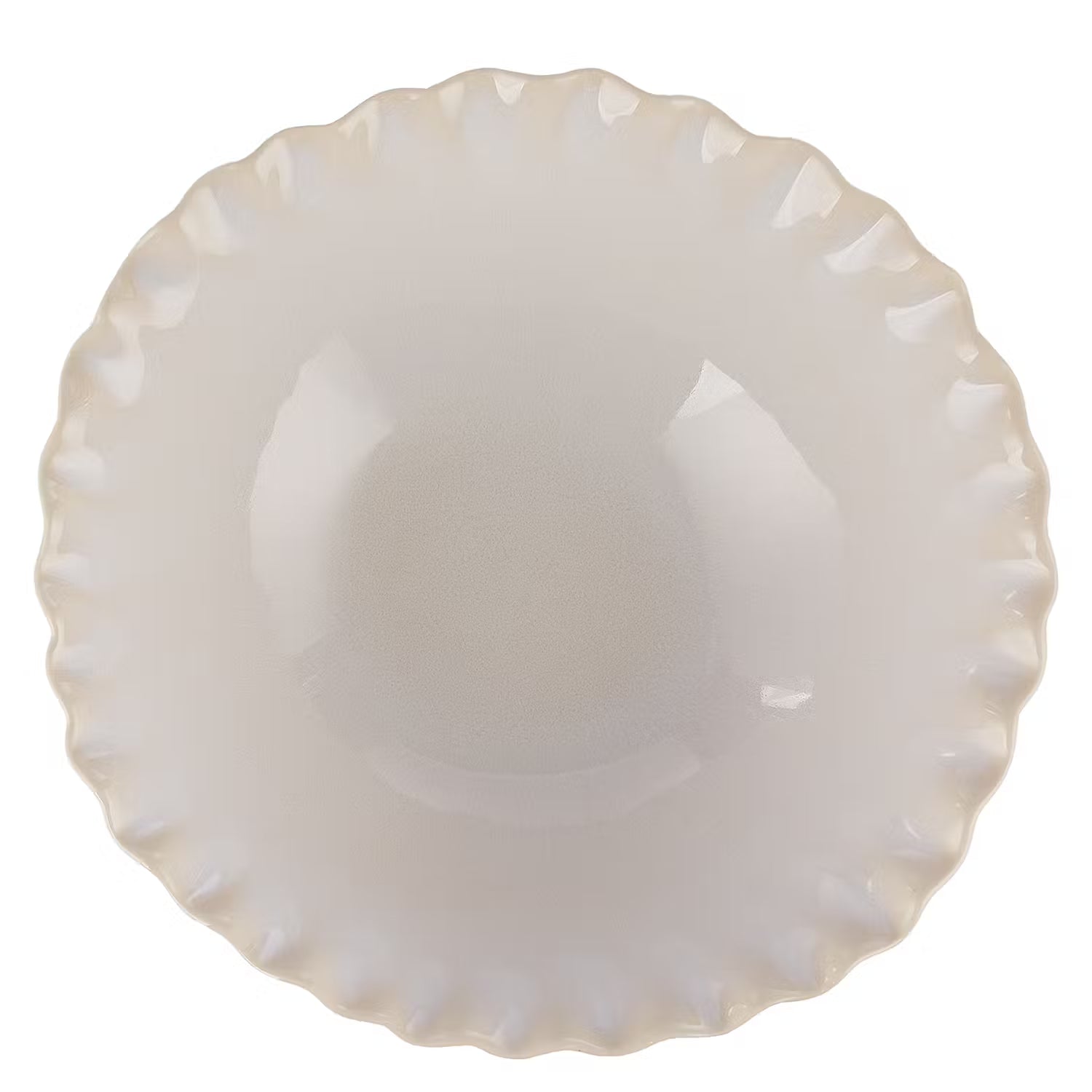 Charmant: Bei der hübschen Florence Schüssel fällt sofort der leicht gewellte, in hellem Creme akzentuierte Rand ins Auge. Er verleiht der Schüssel aus Steinzeug eine leicht verspielte Note, die deiner Tischdekoration Leichtigkeit und einen Hauch Romantik schenkt. Passende Teller 23 cm und 28 cm erhältlich, für den harmonisch gedeckten Tisch am Morgen oder Abend.