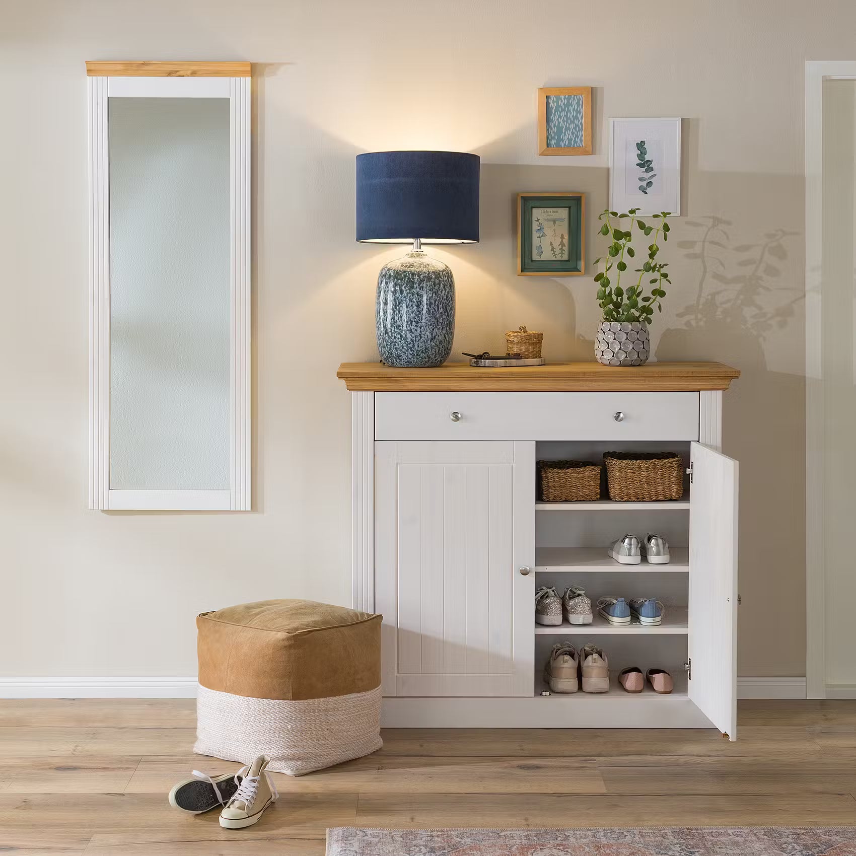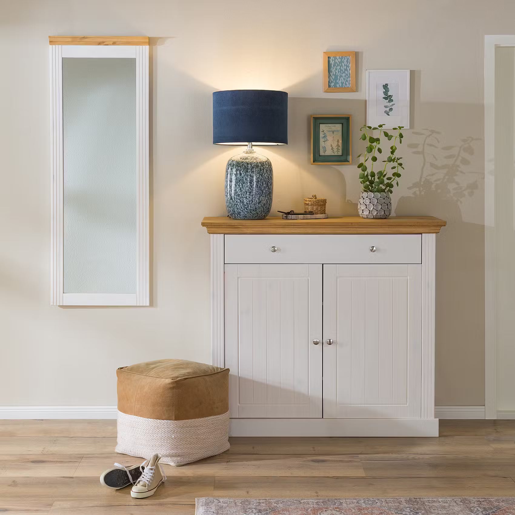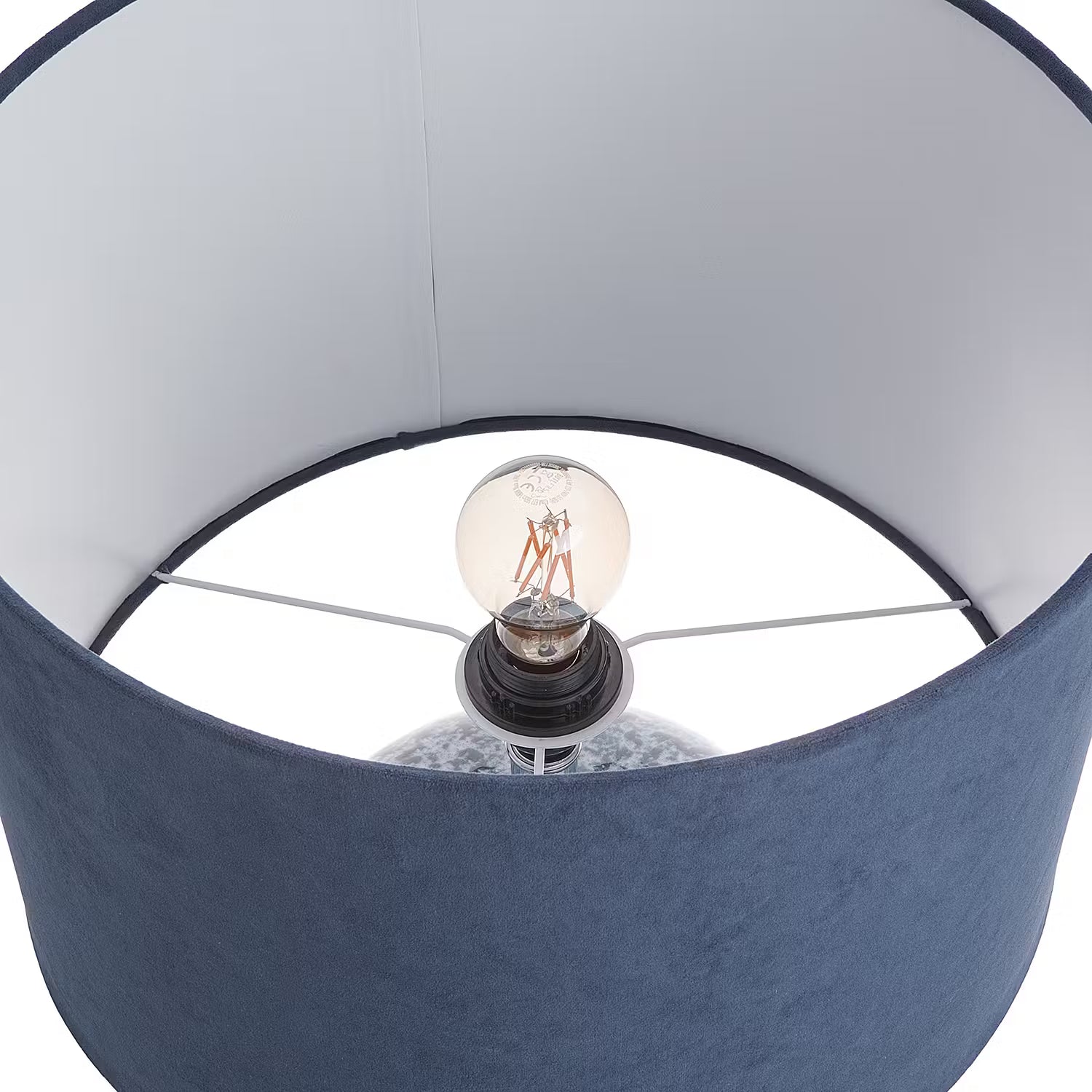 Mit deinem maritimen Zuhause oder deiner nordisch inspirierten Einrichtung harmoniert die hochwertige Seaside XL Tischleuchte in Blau. Die fast 70 cm hohe und damit optisch beeindruckende Tischlampe setzt beim Fuß auf eine gesprenkelte Keramik, die an dunkles Meer und weiße Gischt denken lässt. Der Lampenschirm ist in blauem Cord gehalten, wodurch ein wohnlicher Effekt entsteht. Diese Tischleuchte zieht auch als Einzelstück alle Blicke auf sich, z.B.. auf einer Kommode oder einem Beistellstisch präsentiert.