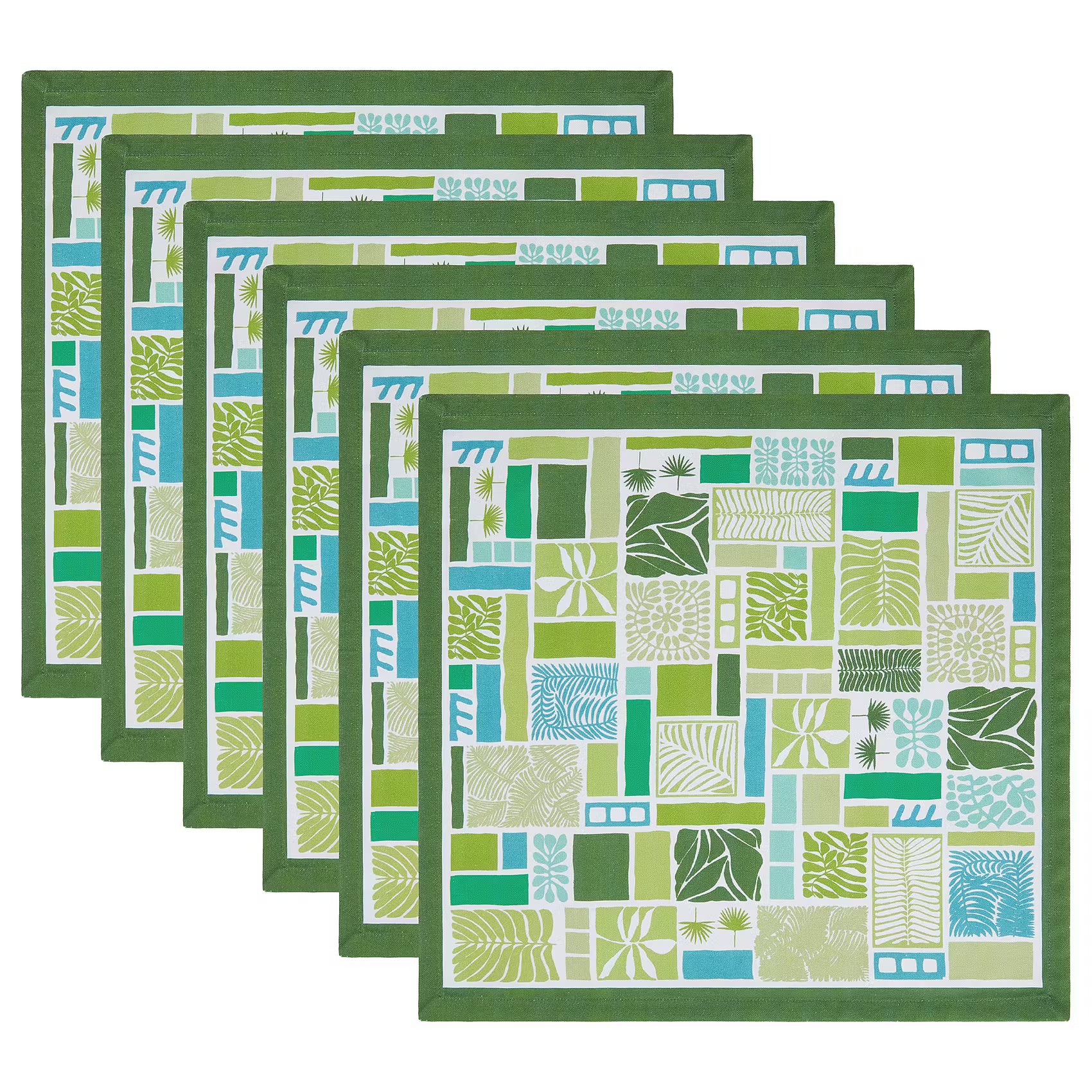 Die schönsten Grüntöne treffen auf dem Pachamama Servietten 6er-Set aufeinander und vereinen sich in einem Muster, das verschieden stilisierte Blätter mit grafischen Elementen verbindet. Das Ergebnis ist ein moderner Look, der diese alltagstaugliche Baumwoll-Tischdecke zu einem schönen Begleiter durch das Frühjahr und den Sommer macht. Aus der Pachamama Serie sind Tischdecken in weiteren Größen erhältlich, zudem gibt es einen passenden Tischläufer.