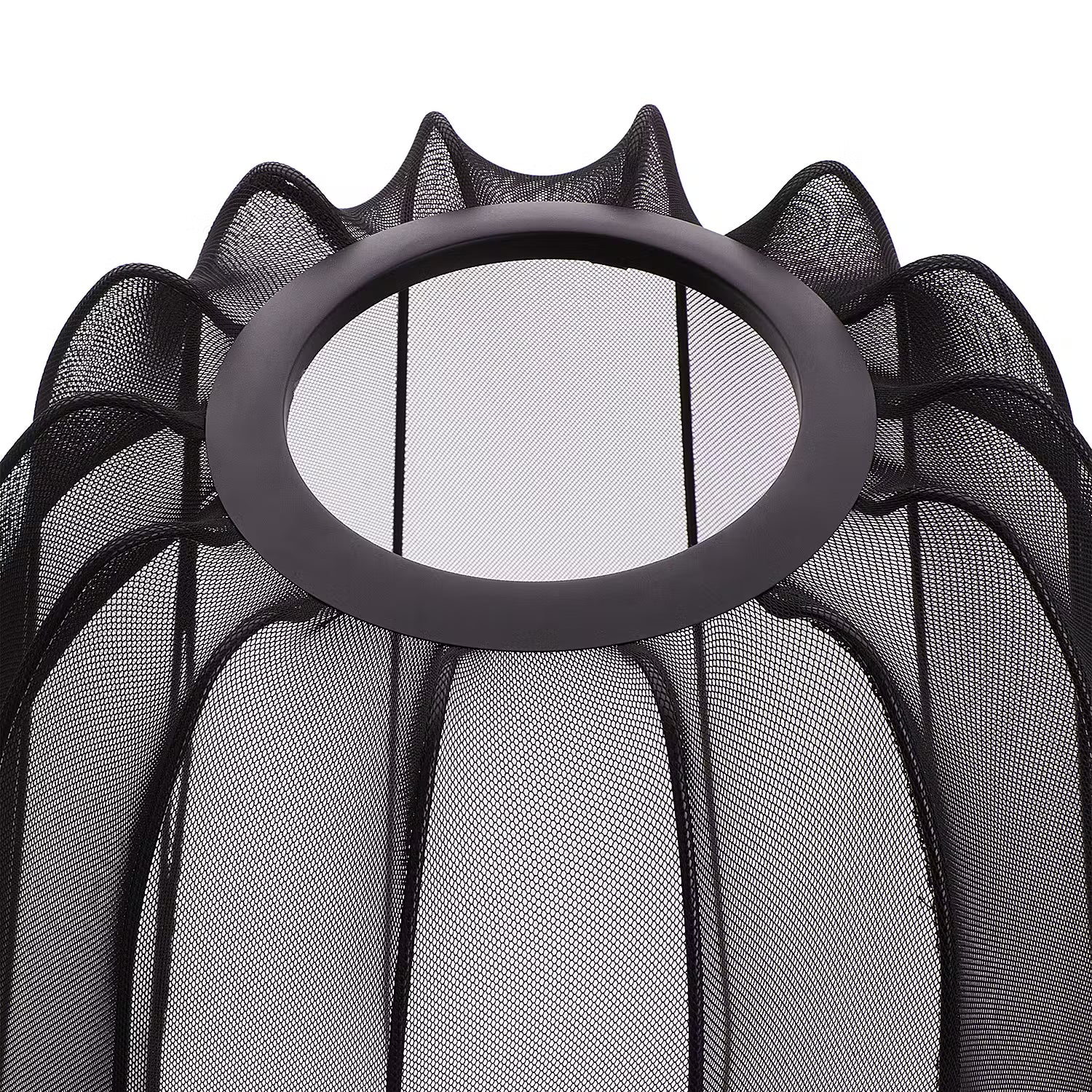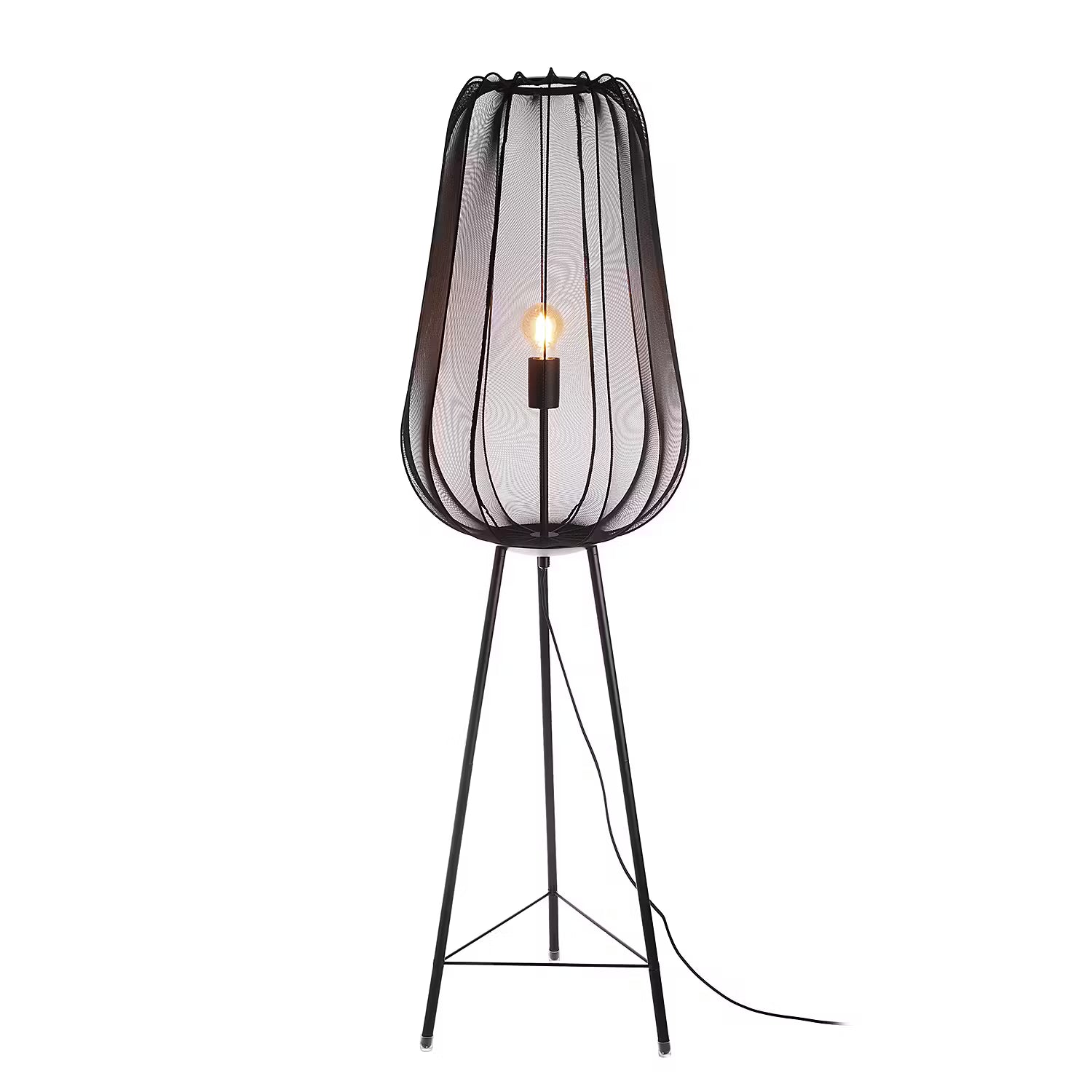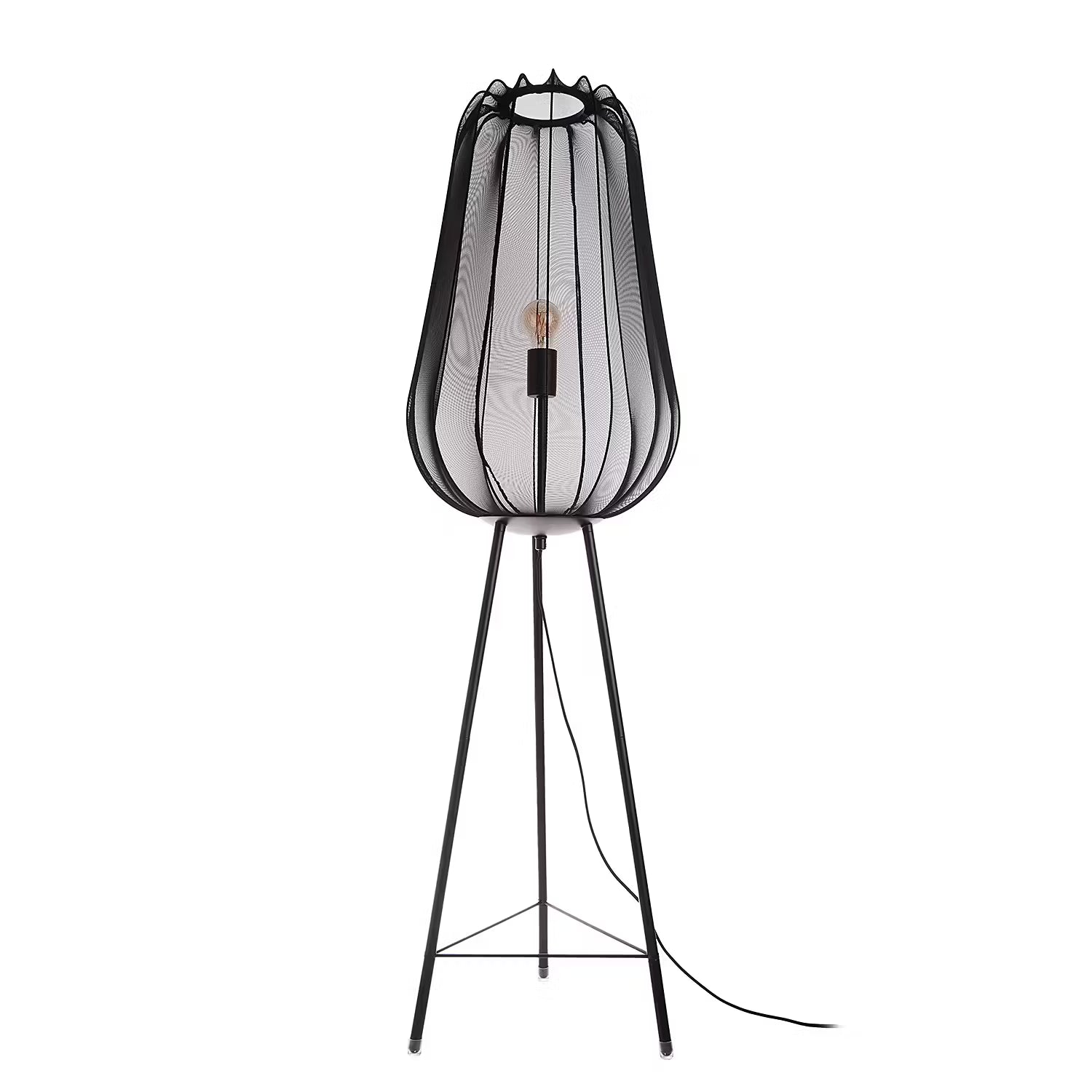 Ein Hauch von Extravaganz umgibt die moderne Amal Stehleuchte. Ihr hoher, geschwungener Schirm ist mit einem transparentem Netzgewebe überzogen und thront auf drei Beinen aus Eisen. Gerade diese Verbindung von exklusivem Design und hochwertiger Materialauswahl verleiht der Stehleuchte eine fast geheimnisvolle Ausstrahlung. In Creme und Schwarz erhältlich, auch als passende Tischleuchte und Hängeleuchte.