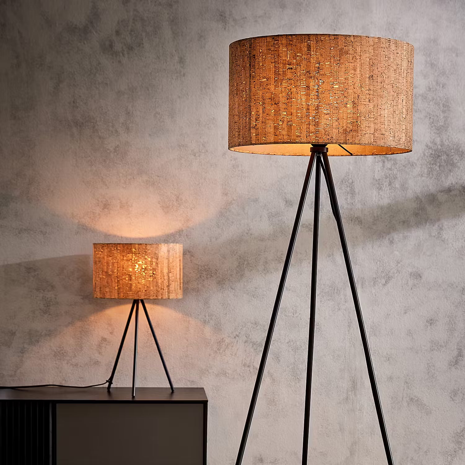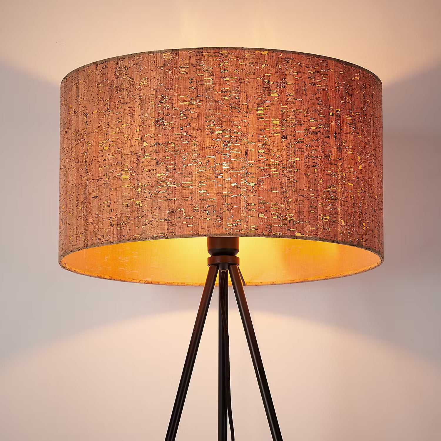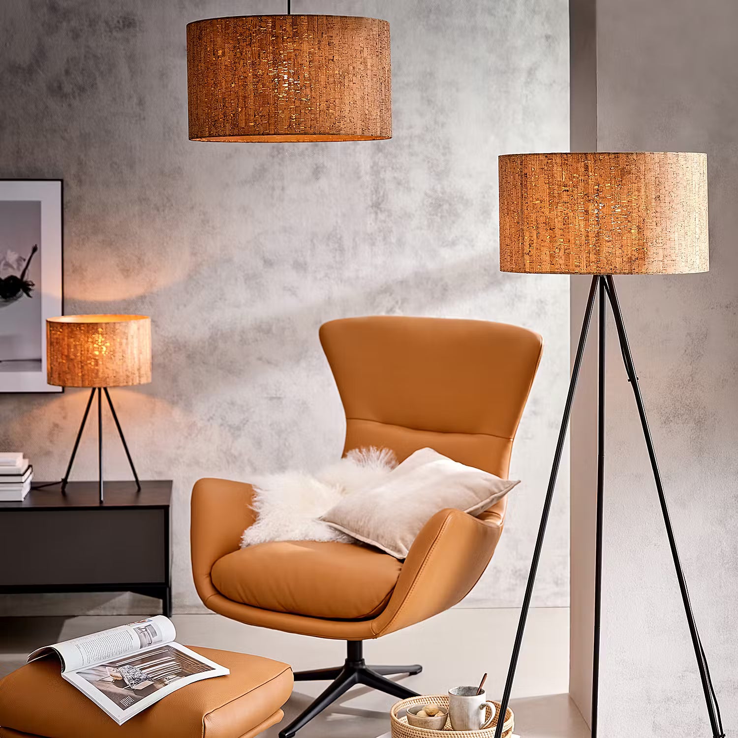 Eine Leuchte mit dem Naturmaterial Kork? Ja, damit gelingt der Cantico Stehleuchte mit Korkschirm ein echter Überraschungseffekt. Warm und angenehm schimmert das Licht durch den hellbraunen Korkschirm, der ganz schlicht mit einem schwarzen 3-Bein-Metallgestell und Textilkabel mit Fußschalter kombiniert ist. So geht Natürlichkeit auf moderne Art. Passend zur Cantico Stehleuchte sind eine Tischleuchte und eine Hängeleuchte erhältlich.