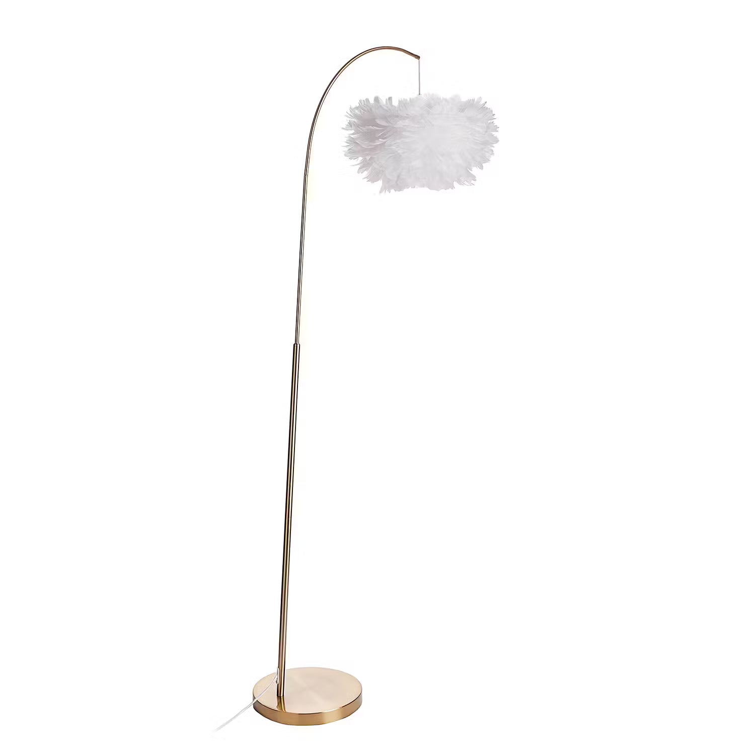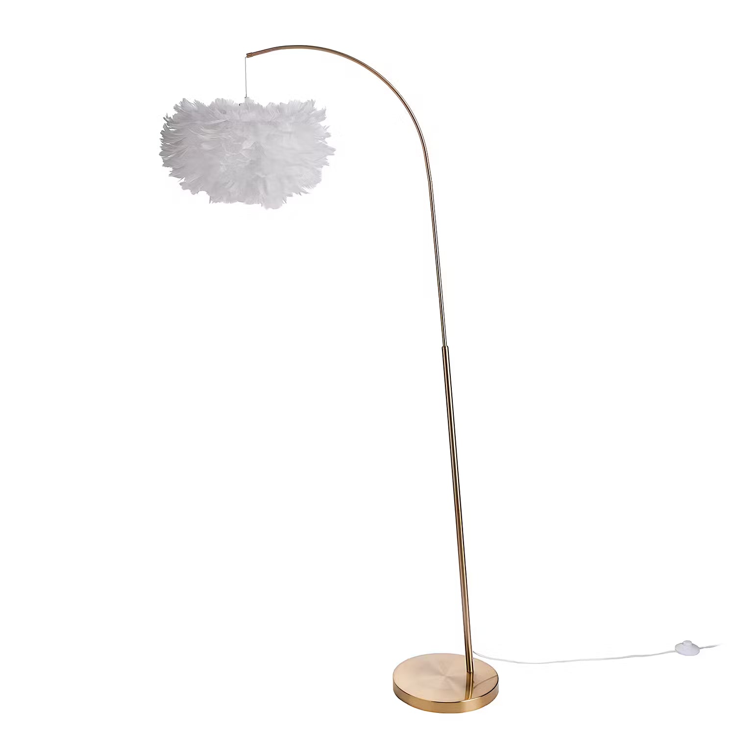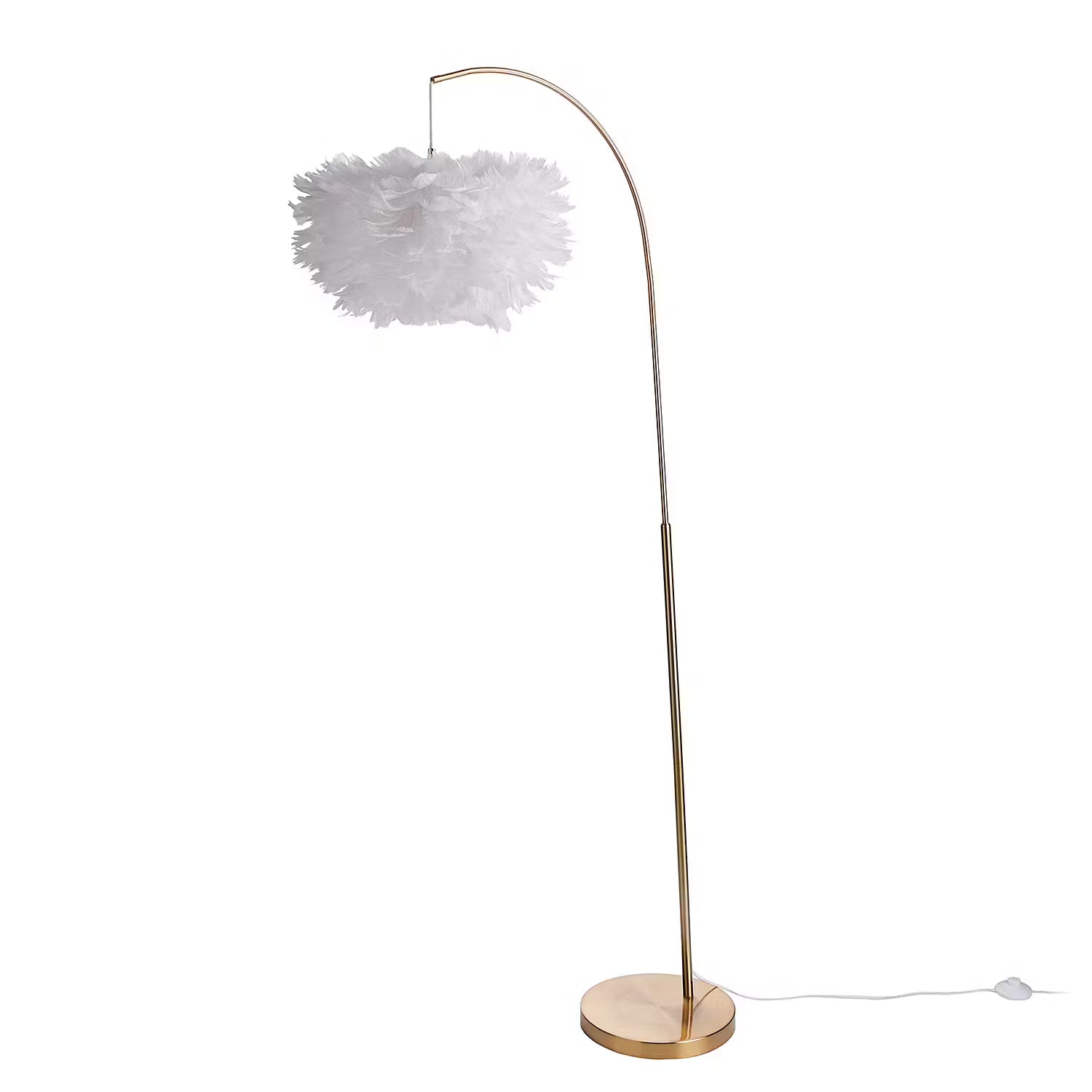 Wie eine luftig-leichte Wolke schwebt die Fiorella Stehleuchte mit Federn über deiner Sitzecke. Besonders elegant wirken bei dieser trendigen Bogenlampe die Kombination mit einem Fuß aus goldfarbenem Metall und das reduzierte Design. So wertest du mit dieser Stehlampe deine Einrichtung auf und lässt gleichzeitig eine sanfte Ambientebeleuchtung entstehen. Passende Tischleuchte erhältlich.