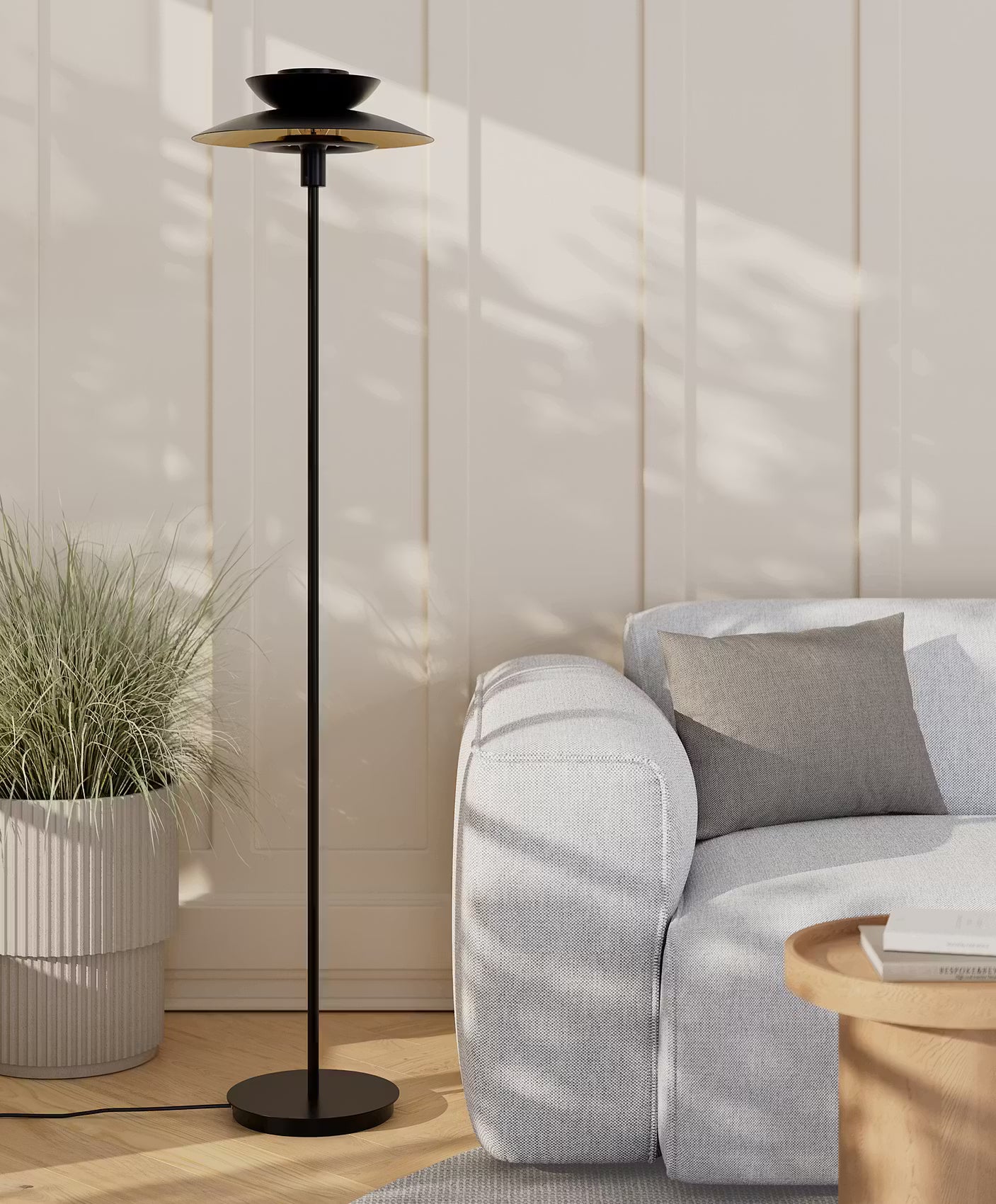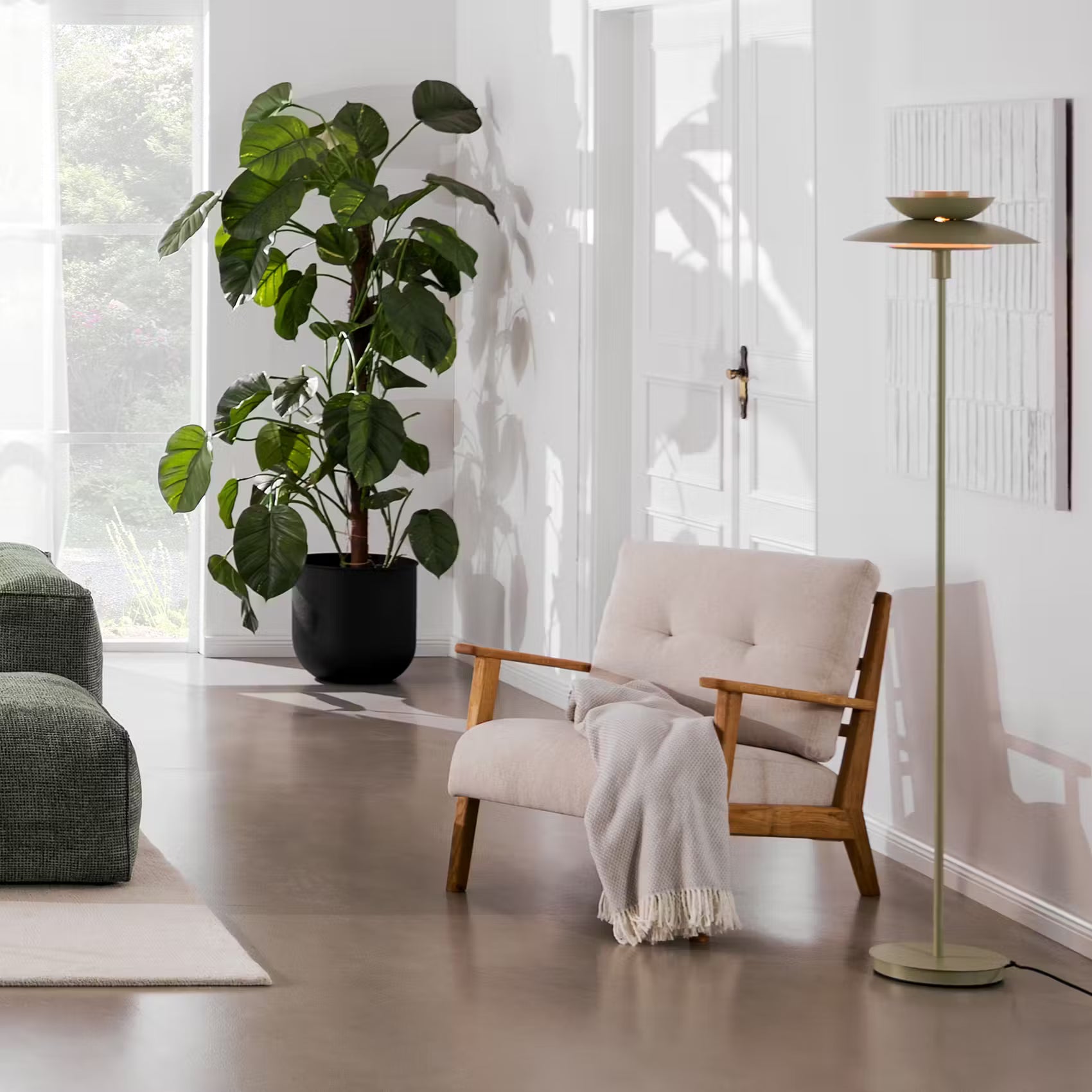 Asiatisch angehaucht, dabei puristisch und modern: So lässt sich das angesagte Design der Singapur Stehleuchte aus Metall zusammenfassen. Die Liebe zum Detail erkennst du bei dieser Stehlampe außerdem an den goldenen Akzenten und am Textilkabel - raffinierte Extras, die den Look abrunden. So setzt du mit der Singapur Stehleuchte einen selbstbewussten Akzent z.B. in deinem Wohnbereich oder Flur. Für die verschiedenen Bereiche in deinem Zuhause umfasst die Singapur Serie Hängeleuchten, 3-flammige Pendelleuchten, Tischleuchten und Stehleuchten in Salbei und Schwarz, teilweise auch in Beige - ideal zum Kombinieren.