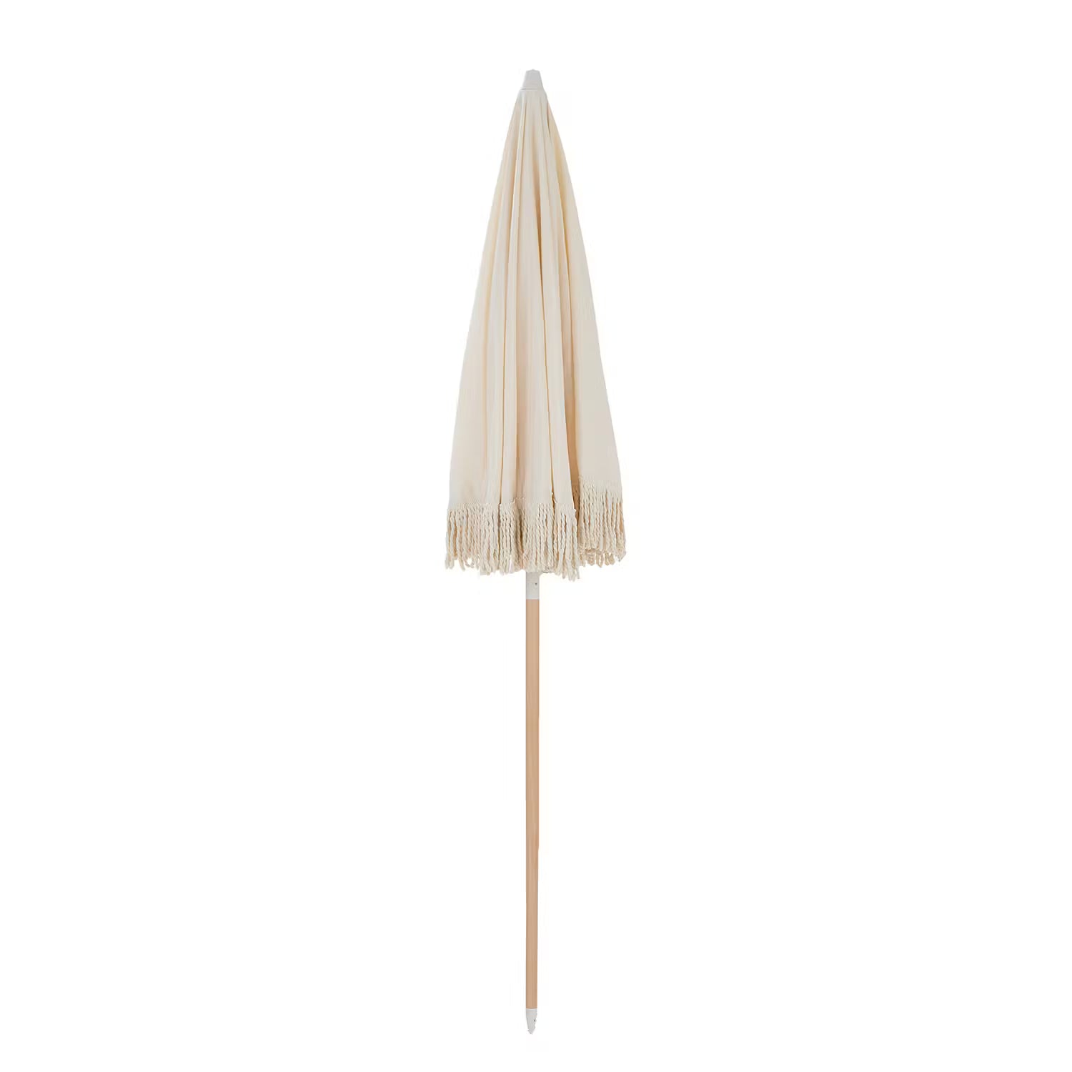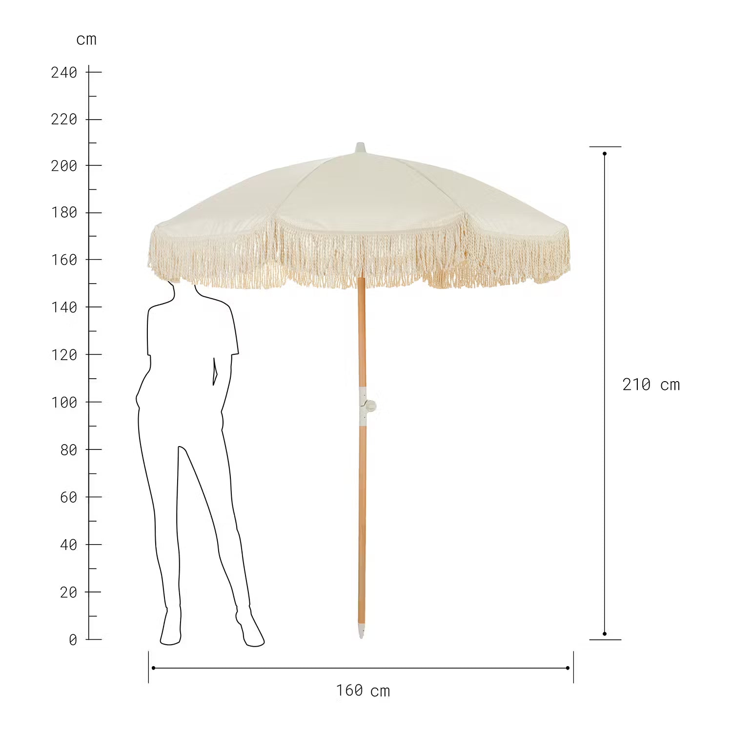 Und schon fühlt sich alles nach Ibiza an: Mit dem Boho Lounge Strandschirm mit Fransen in Creme verwandeln Sie selbst das Freibad um die Ecke, den nächsten Badesee oder den heimischen Balkon in ein kleines Fleckchen Urlaub. Einfach den Sonnenschirm in der Tragetasche mitnehmen, aufspannen, und schon räkeln Sie sich ganz entspannt unter dem Schirm mit 160 cm Durchmesser und UV-Schutz 80, während die verspielten Baumwoll-Fransen sich sanft im Wind bewegen. Die Schirmstange ist übrigens aus Buchenholz gefertigt und sorgt mit 32mm Durchmesser für Stabilität und Halt.