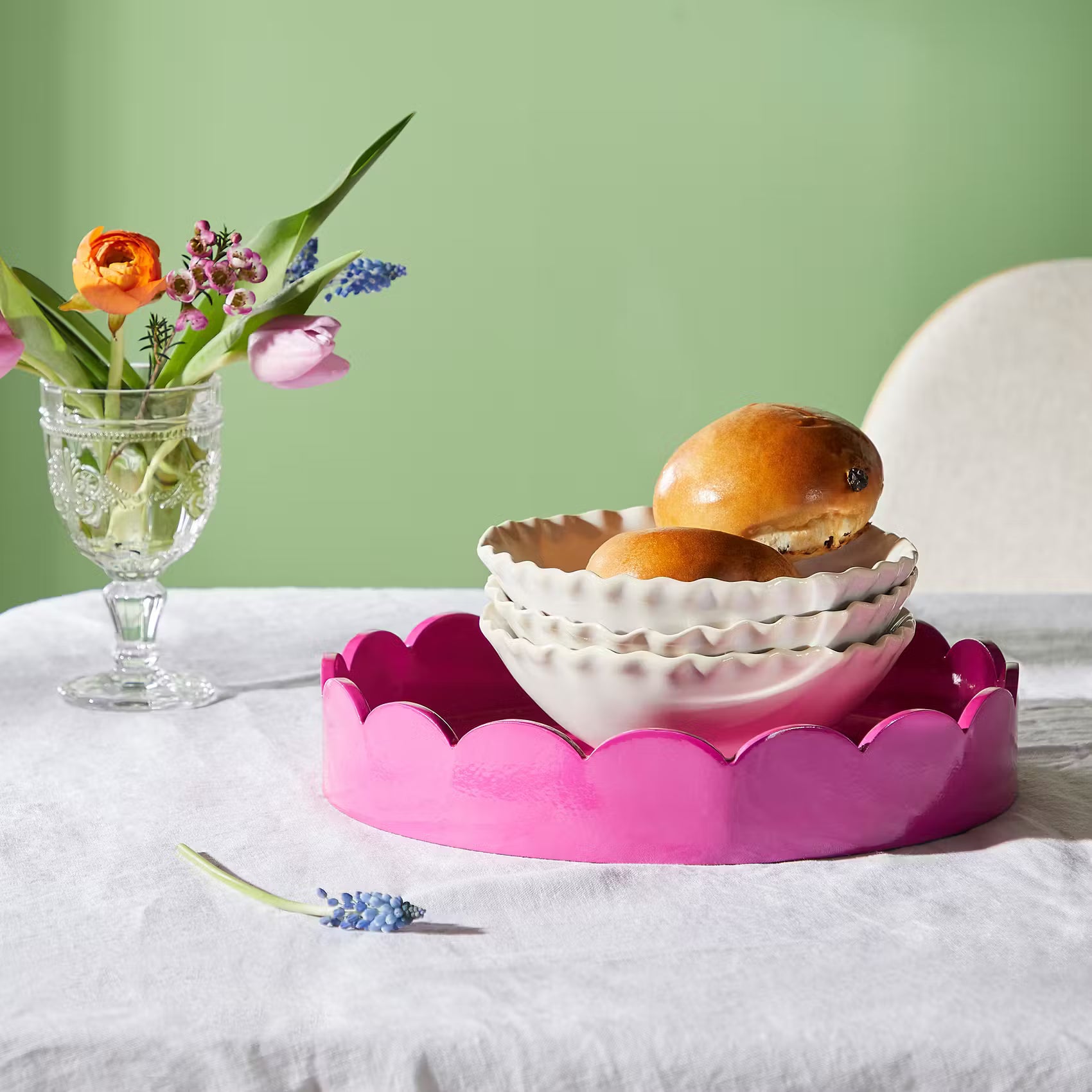 Seinen gewellten Rand hat sich das chice Scallop Tablett von der Jakobsmuschel abgeschaut, die bei Genießern als Delikatesse gilt. Und hier liegt schon wieder eine Gemeinsamkeit, denn für Design-Liebhaber gilt das runde Tablett ebenfalls als "Leckerbissen". In zwei Varianten erhältlich, schön auch als Deko-Tablett.