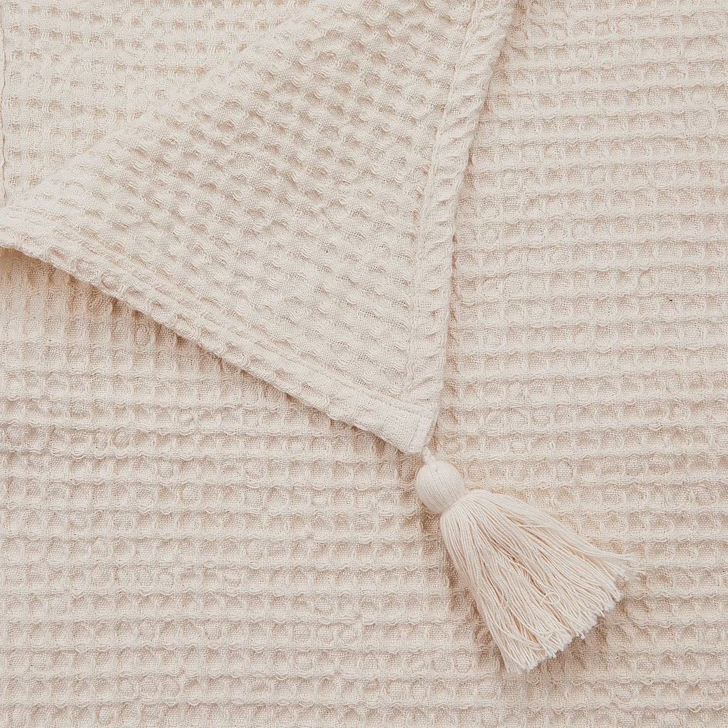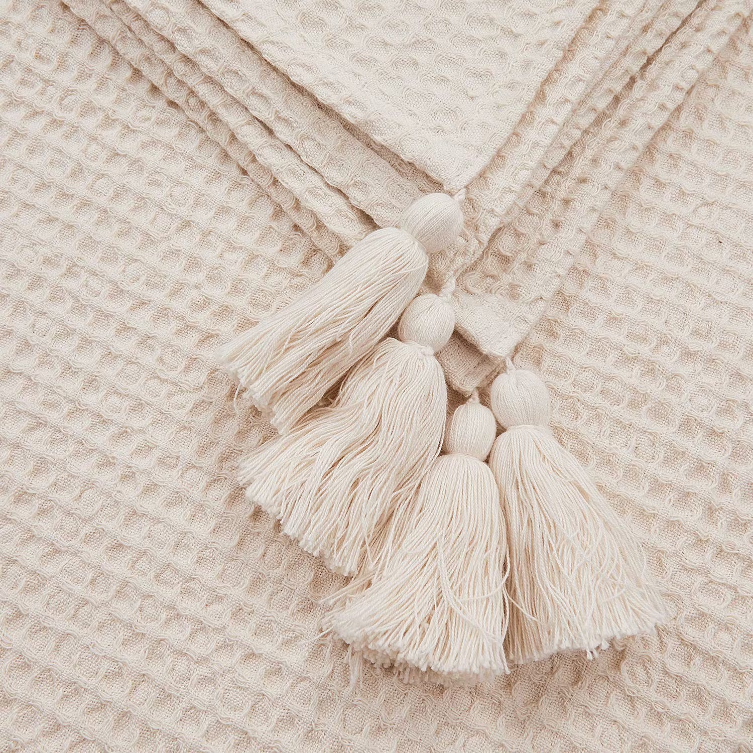 Hochwertige Wohndecken wie die Honey Comb Decke mit Tasseln bringen sommerliche Lässigkeit in Ihr Zuhause und machen zugleich den kühlen Abend auf Balkon oder Terrasse so richtig gemütlich. Die Honey Comb Decke in Beige ist aus reiner Baumwolle gefertigt, verarbeitet zu einer griffigen Wabenstruktur. Für einen Hauch von Boho sorgen die Tasseln an den Ecken. Mit einer Größe von 200 x 140 cm lädt diese Decke dazu ein, sich schön einzukuscheln.