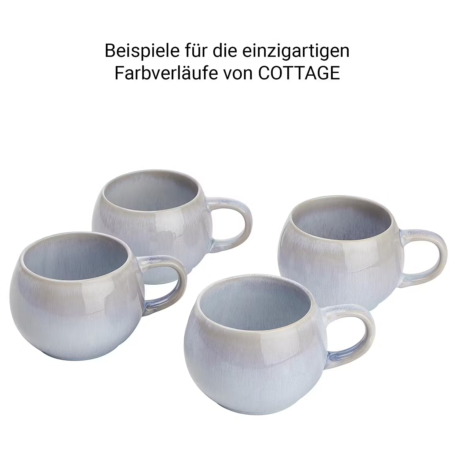 Einer der schönsten Gründe, öfter eine Kaffeepause einzulegen, ist die Cottage Tasse aus Steinzeug. Die Tasse ist mit einer reaktiven Glasur veredelt, was jedes Teil zu einem echten Einzelstück macht. Mit 350 ml Fassungsvermögen eignet sich die dekorative Tasse ideal auch für Milchkaffee und Chai Latte. In weiteren zeitlosen Farben erhältlich, die sich auf dem gedeckten Tisch wunderbar kombinieren lassen.