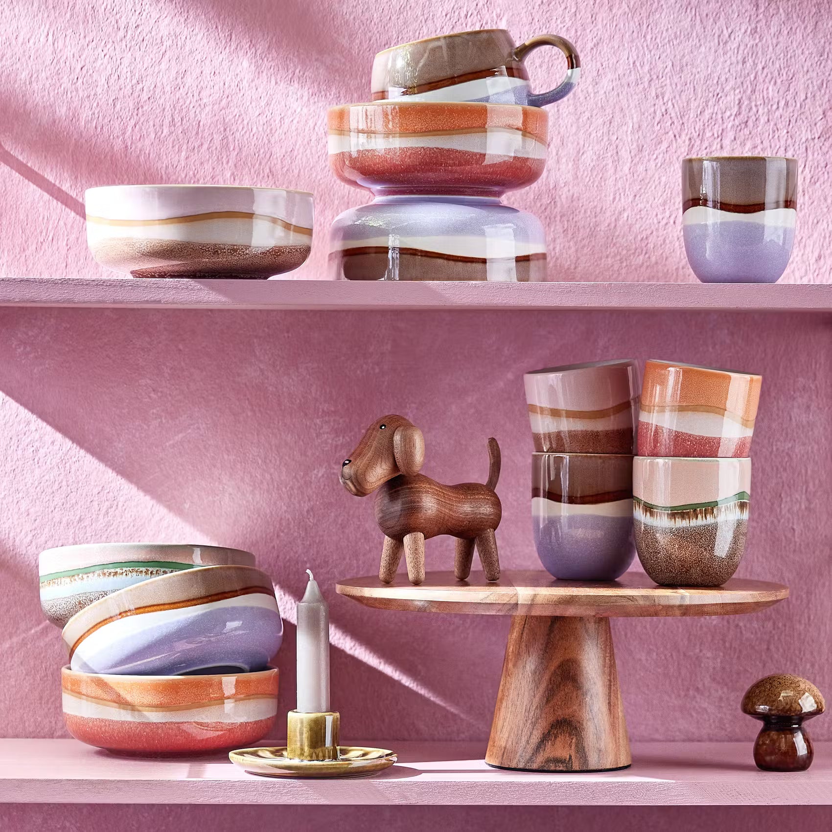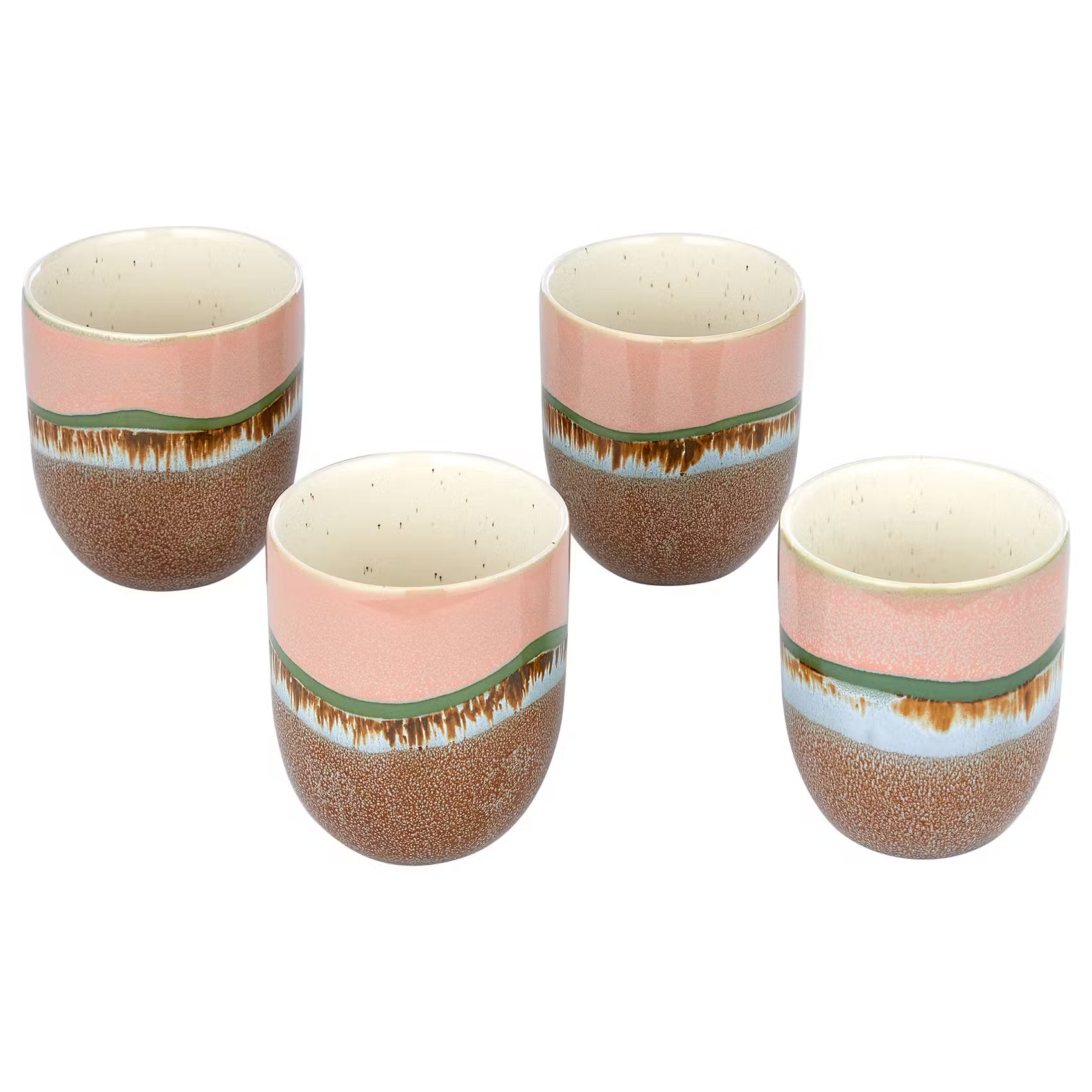 Bei der Medley Tasse im 4er-Set wird die Glasur zum Star: Die Tasse aus hochwertigem Steinzeug wurde mehrfach von Hand in reaktive Effekt-Glasuren gedippt. Diese reagieren unterschiedlich miteinander, wodurch bei jeder Tasse eine individuelle Optik entsteht und jedes Teil zum Unikat wird. Der Look ist inspiriert von den 70er Jahren, kombiniert mit einer modernen Formensprache. Im täglichen Gebrauch erweist sich die Tasse als robust und langlebig, natürlich spülmaschinen- und mikrowellengeeignet. Die Medley Serie umfasst Tassen, Schalen und Pastateller in verschiedenen Farbvarianten, perfekt für das individuelle Mix & Match auf deinem gedeckten Tisch.