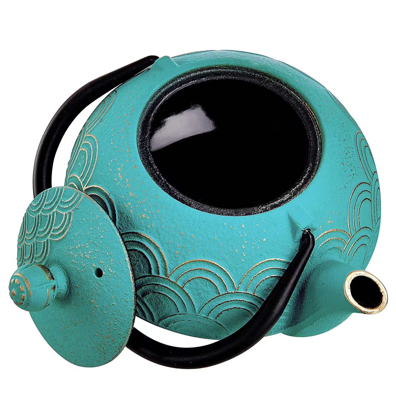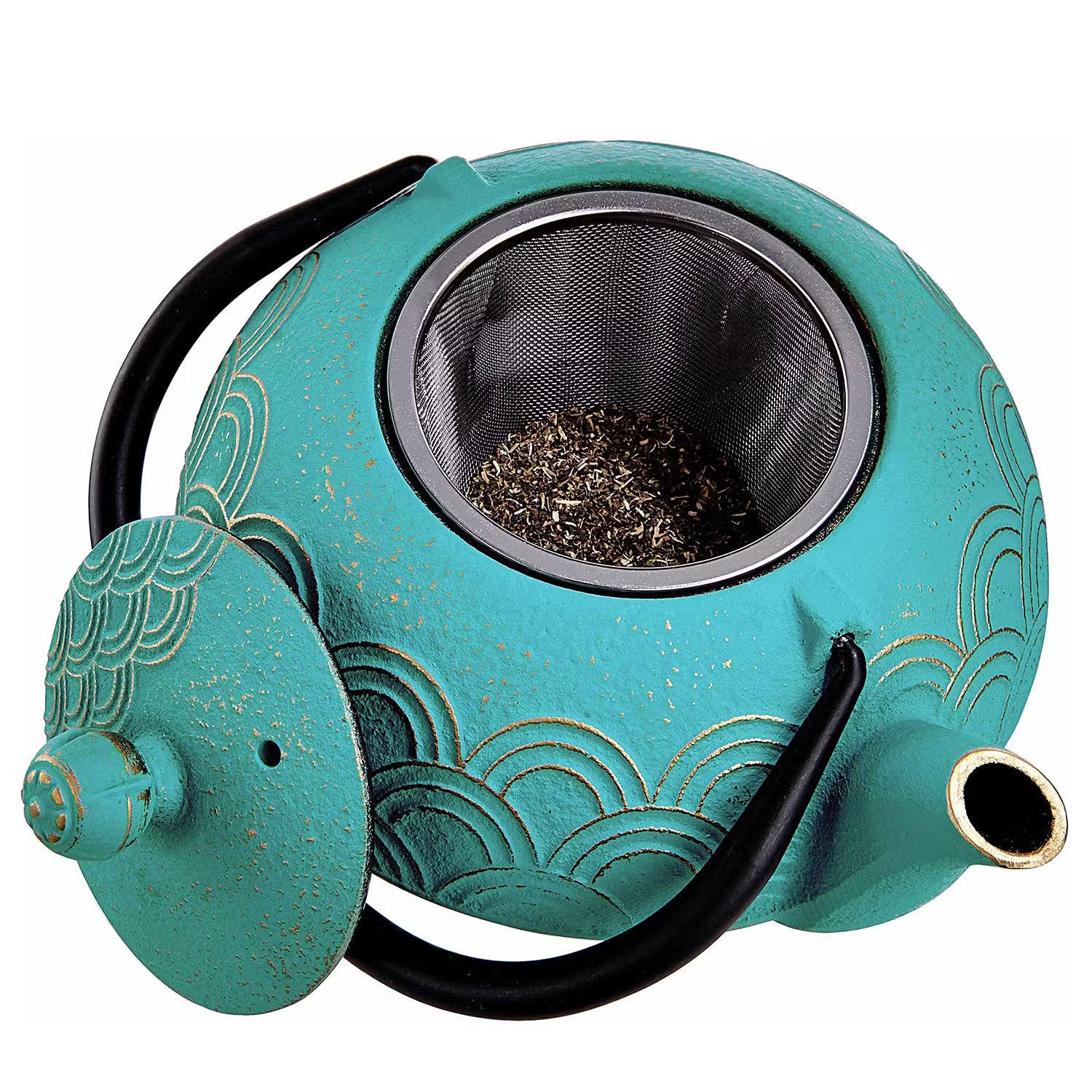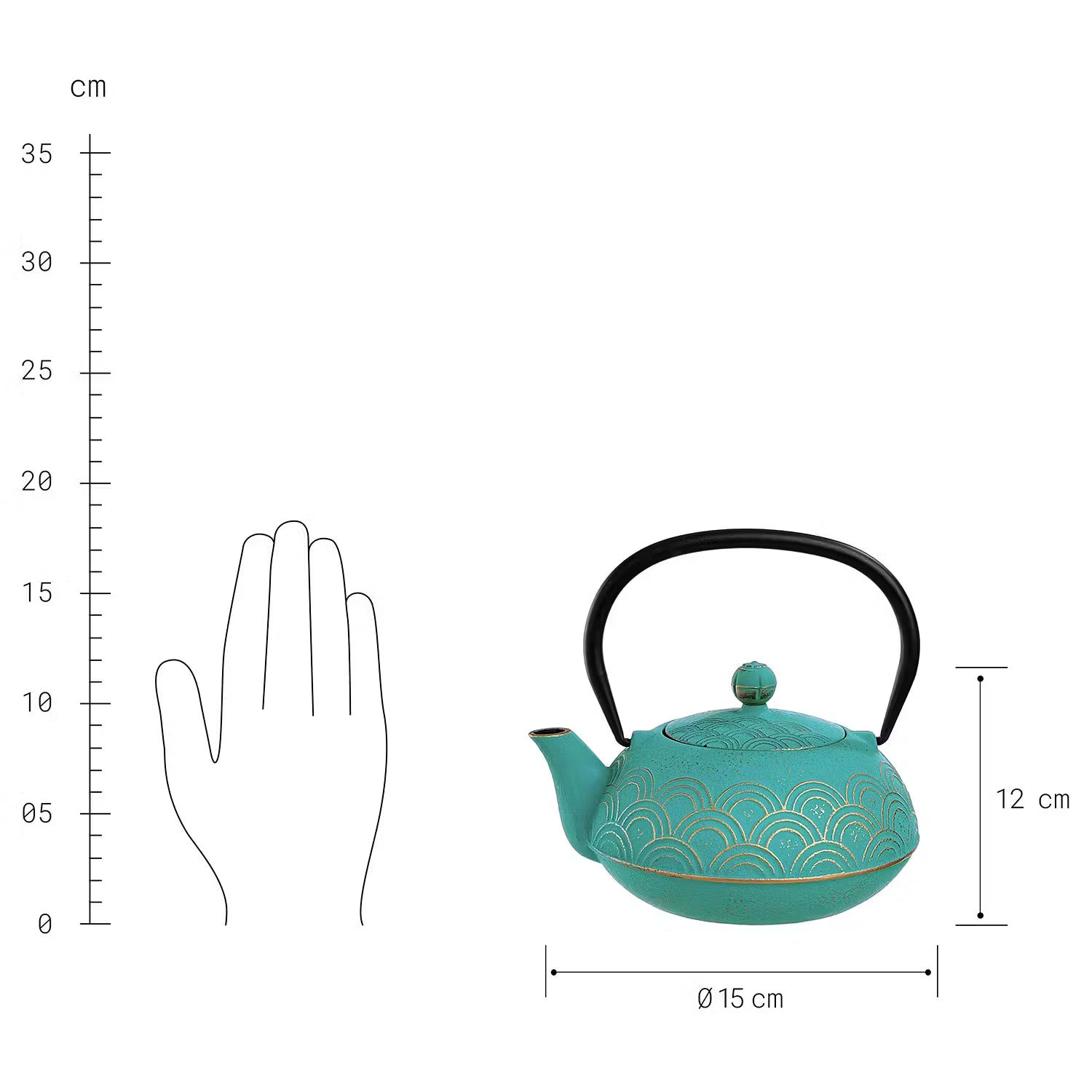 Ob morgens oder nachmittags, ob mit grünem oder schwarzem Tee, ob mit einem Schuss Milch oder einem Stück Gebäck - Sie entwickeln Ihre ganz private Tee-Zeremonie mit der Ceremony-Teekanne aus türkisem Gusseisen. Die Form dieser Teekanne ist asiatisch inspiriert, im Inneren verbirgt sie einen Siebeinsatz. Schwere Ausführung.