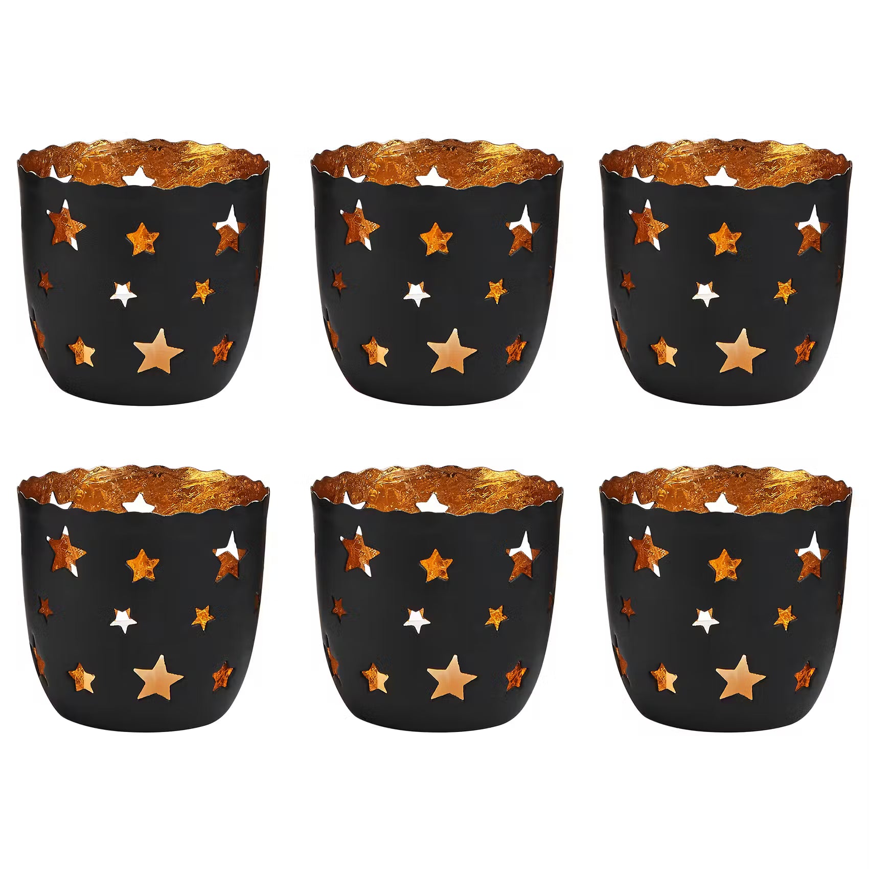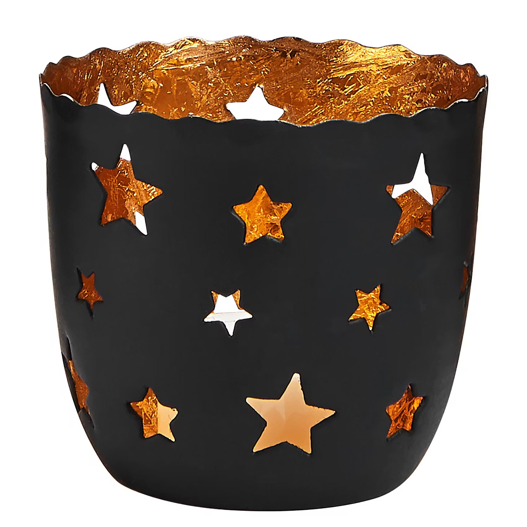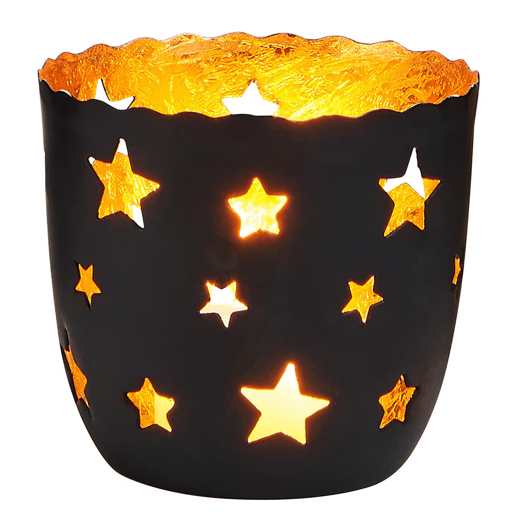 Dieser schwarze Teelichthalter in Form einer Schale mit ausgestanzten Sternen macht Kerzenlicht zum reinsten Vergnügen und lässt Ihr Zuhause jedes Mal in einem neuen Licht erscheinen. Die Innenseite in Antik wirkendem Gold sorgt für warme Funkeleffekte. Jetzt heißt es für Sie: Losstöbern und zündende Ideen finden. In weiteren Varianten erhältlich.