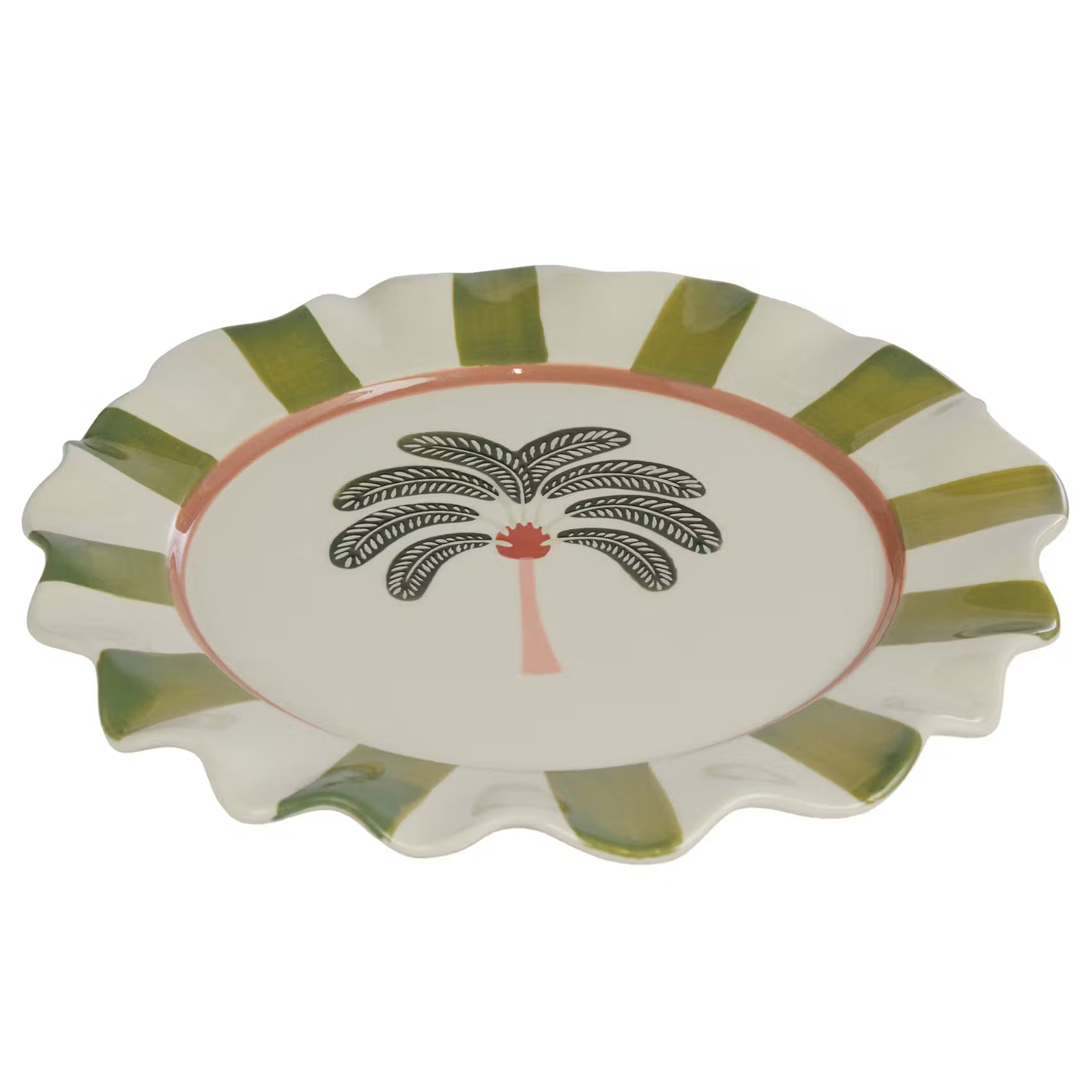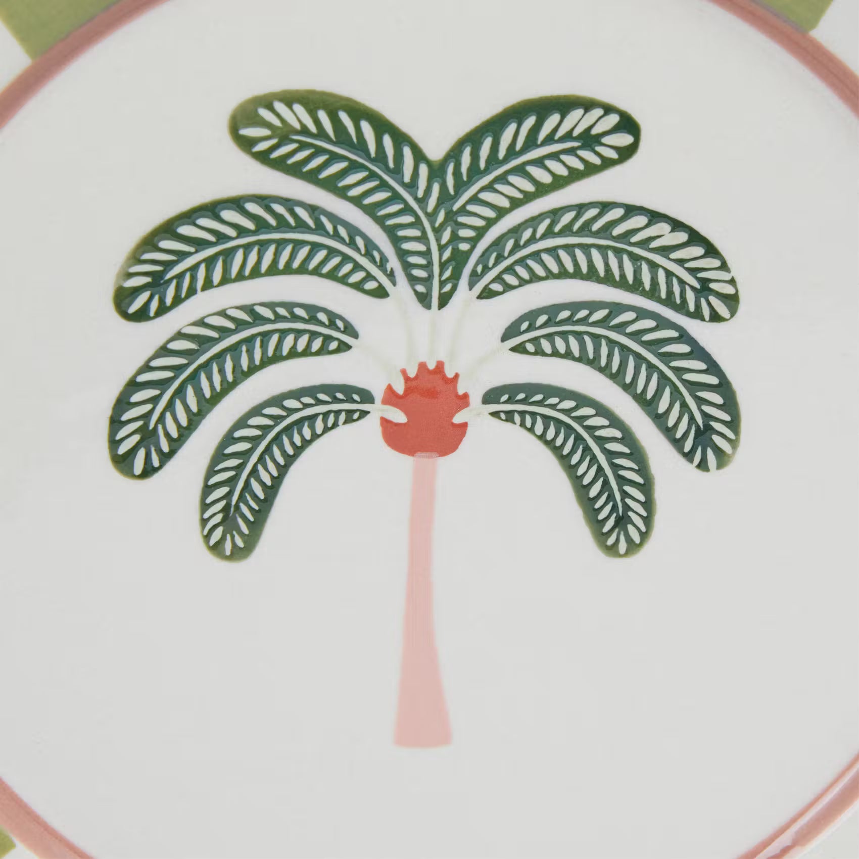 Jetzt wird's tropisch: Der Palacio Teller mit Palme im 6er-Set ist aufwändig handbemalt - mit dekorativem Rand und modernem Palmen-Motiv. Mit diesem Schmuckstück rundest du deine sommerliche, exotische Einrichtung ab oder präsentierst deine Lieblingsspeisen und beweist deine Liebe zum Besonderen. Auch als Palacio Teller Leo erhältlich.