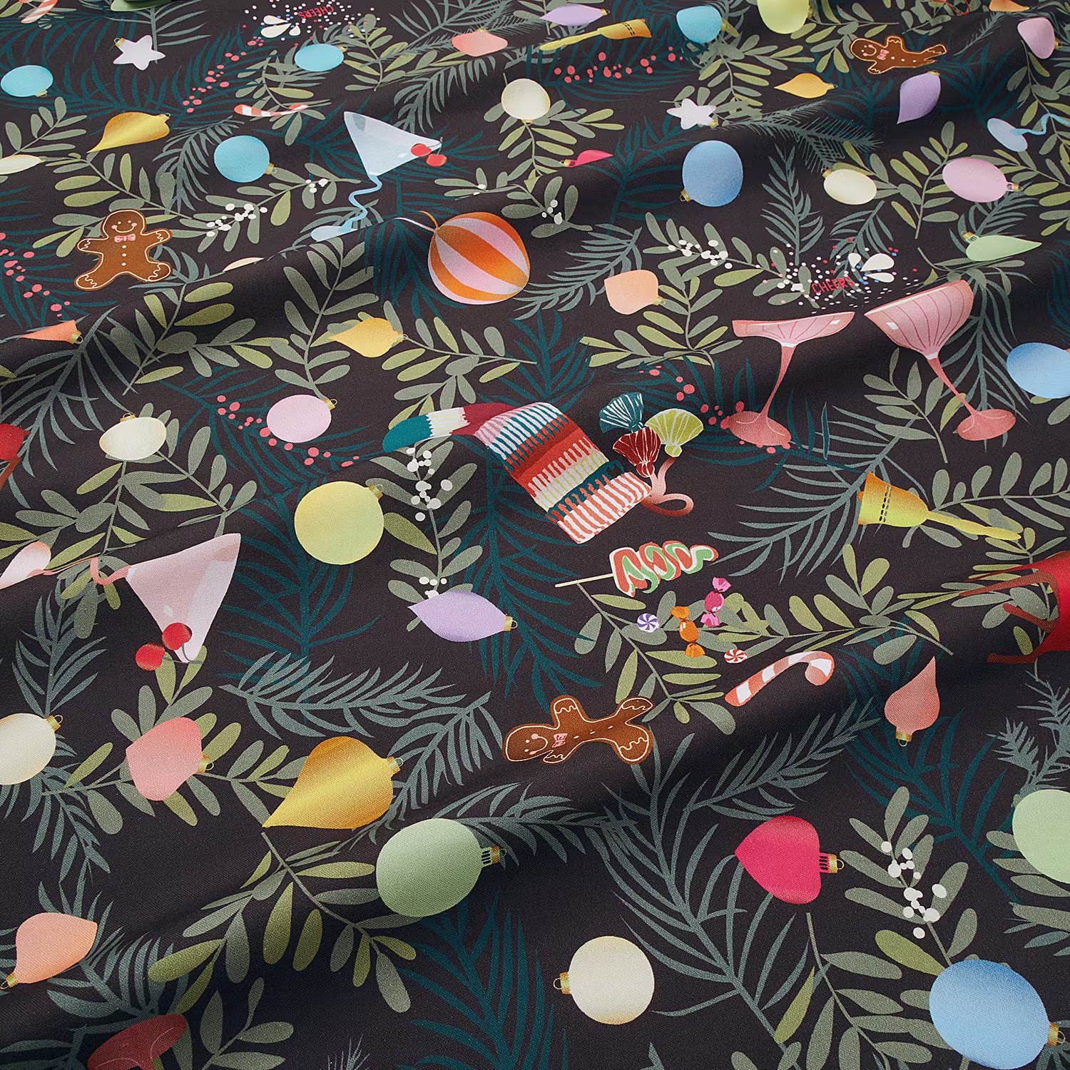 Zuckerstangen, Sterne, Glöckchen und noch vieles mehr: Jede Menge gute Weihnachtslaune tummelt sich auf der Christmas Cheers Tischdecke 300 x 160 cm aus reiner Baumwolle. Ebenso wie das Dessin ist bei dieser Tischwäsche auch die Mischung aus dunklem Untergrund und farbenfrohen Elementen wunderbar auf die Jahreszeit abgestimmt - für den hübsch gedeckten Tisch im Advent und zur Weihnachtszeit. Tischdecke in weiteren Größen erhältlich, zudem gibt es passende Tischläufer und Servietten.
