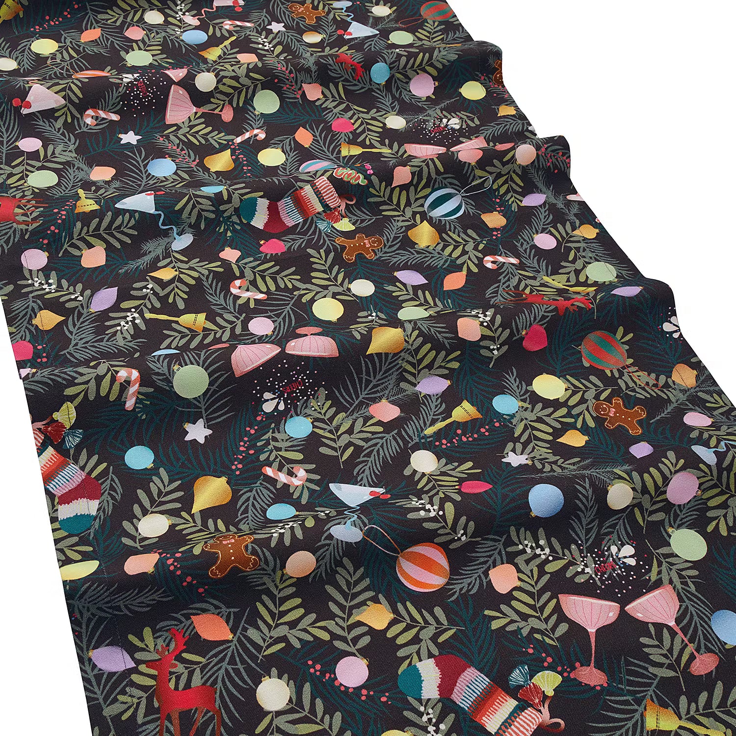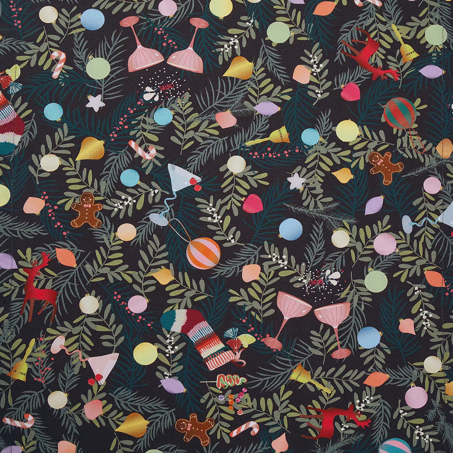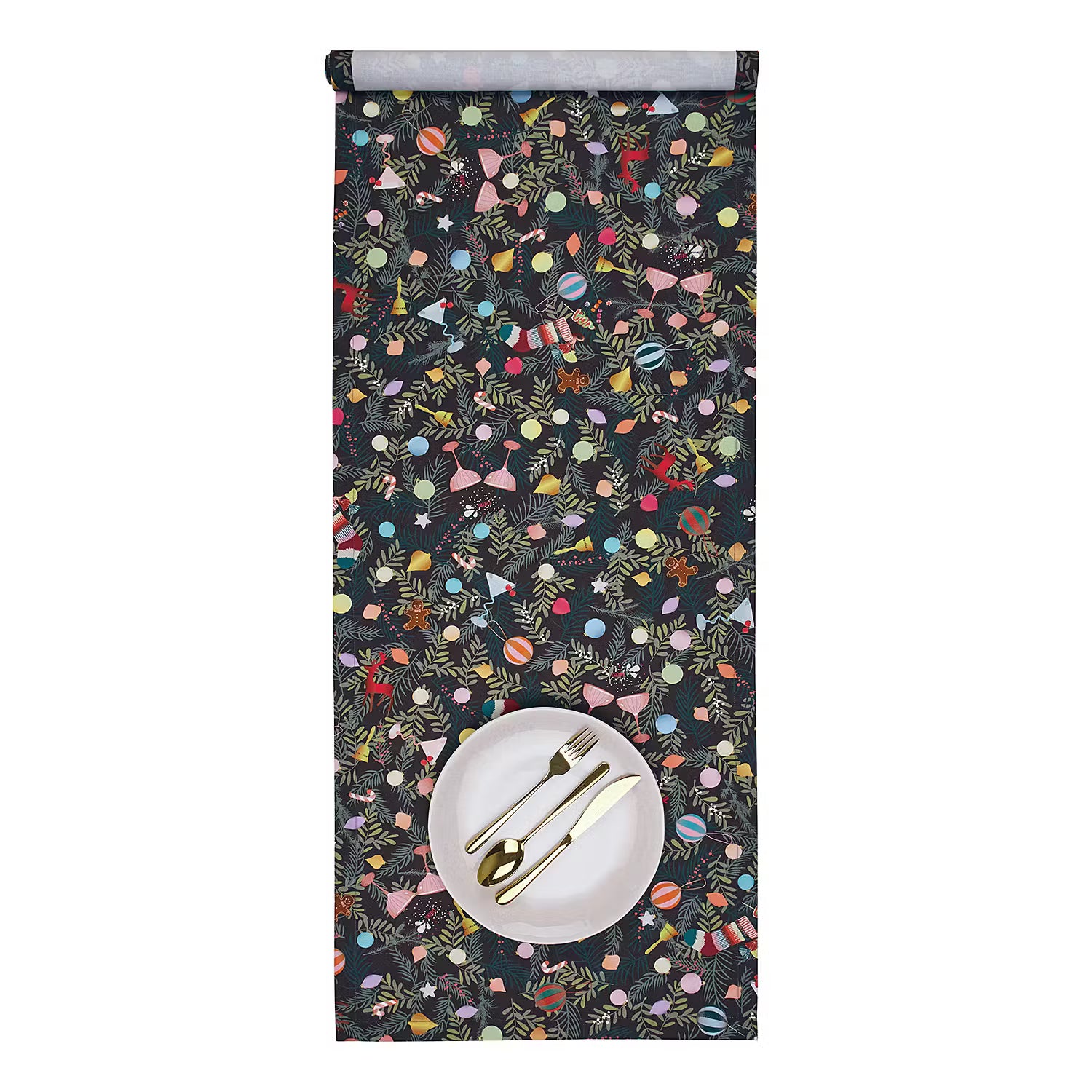 Zuckerstangen, Sterne, Glöckchen und noch vieles mehr: Jede Menge gute Weihnachtslaune tummelt sich auf dem Christmas Cheers Tischläufer 160 x 50 cm aus reiner Baumwolle. Ebenso wie das Dessin ist bei dieser Tischwäsche auch die Mischung aus dunklem Untergrund und farbenfrohen Elementen wunderbar auf die Jahreszeit abgestimmt - für den hübsch gedeckten Tisch im Advent und zur Weihnachtszeit. Tischdecke in weiteren Größen erhältlich, zudem gibt es passende Servietten.