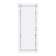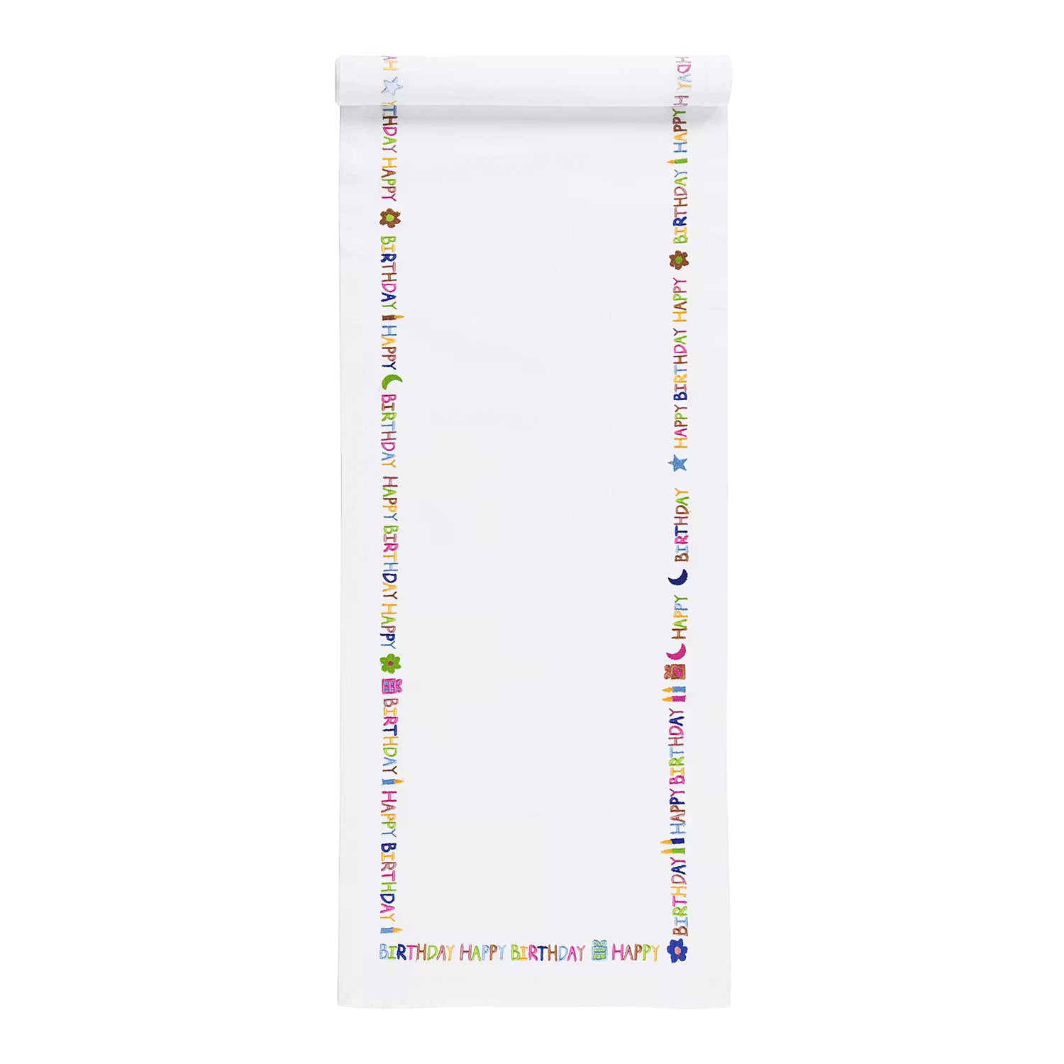 Wer Geburtstag hat, darf sich verwöhnen lassen - mit Glückwünschen, Aufmerksamkeiten und einer fröhlichen Dekoration. Dieser leichte Tischläufer aus reiner Baumwolle ist umlaufend bunt bestickt: mit den Wörtern "Happy Birthday", kleinen Blumen, Kerzen, Sternen, Monden und Geschenken. Apropos Geschenke: Die lassen sich perfekt auf dem Tischläufer präsentieren, am besten direkt neben der Geburtstagstorte. Übrigens: Zu diesem Tischläufer sind passende Servietten erhältlich.
