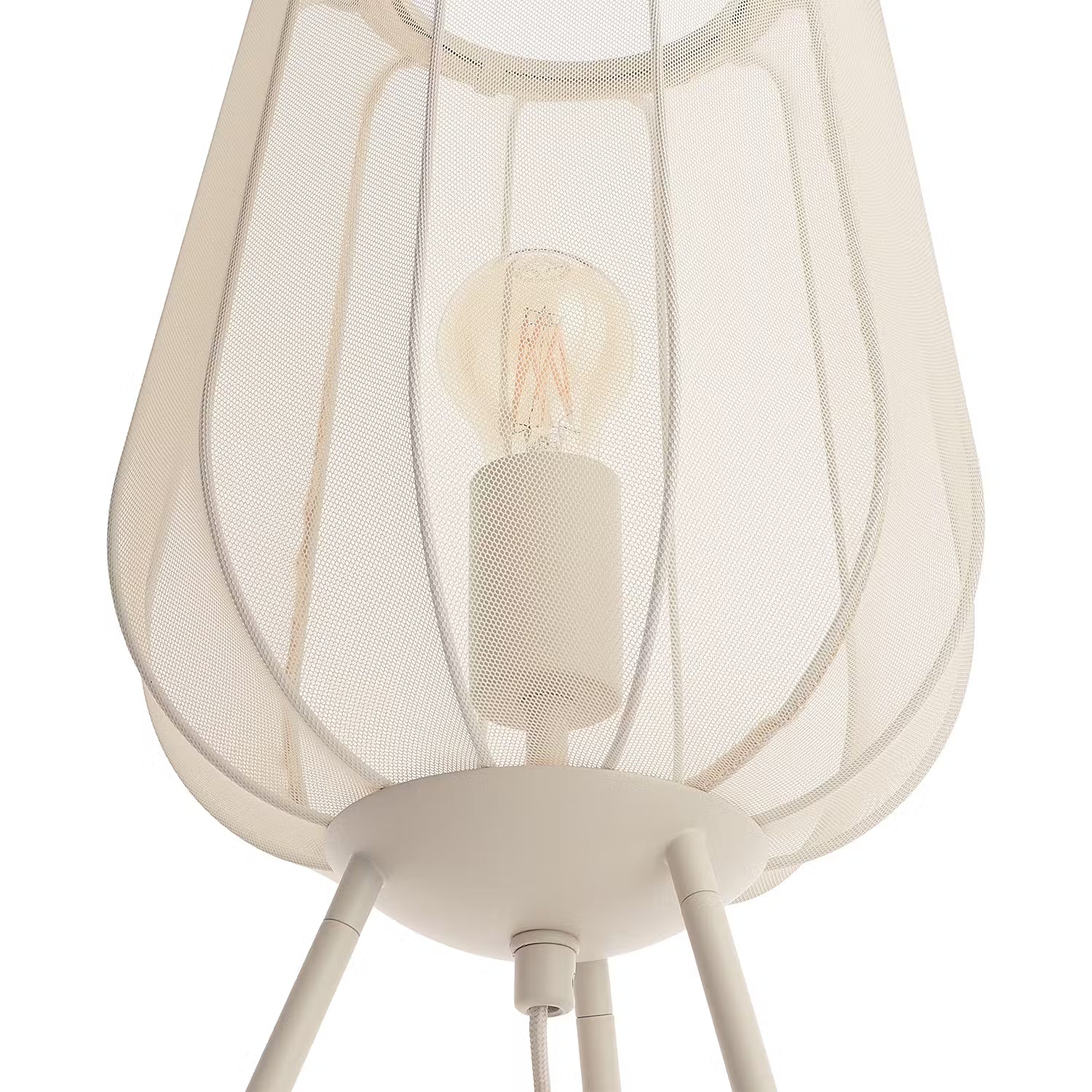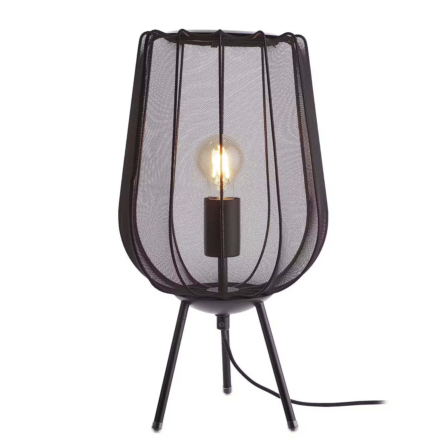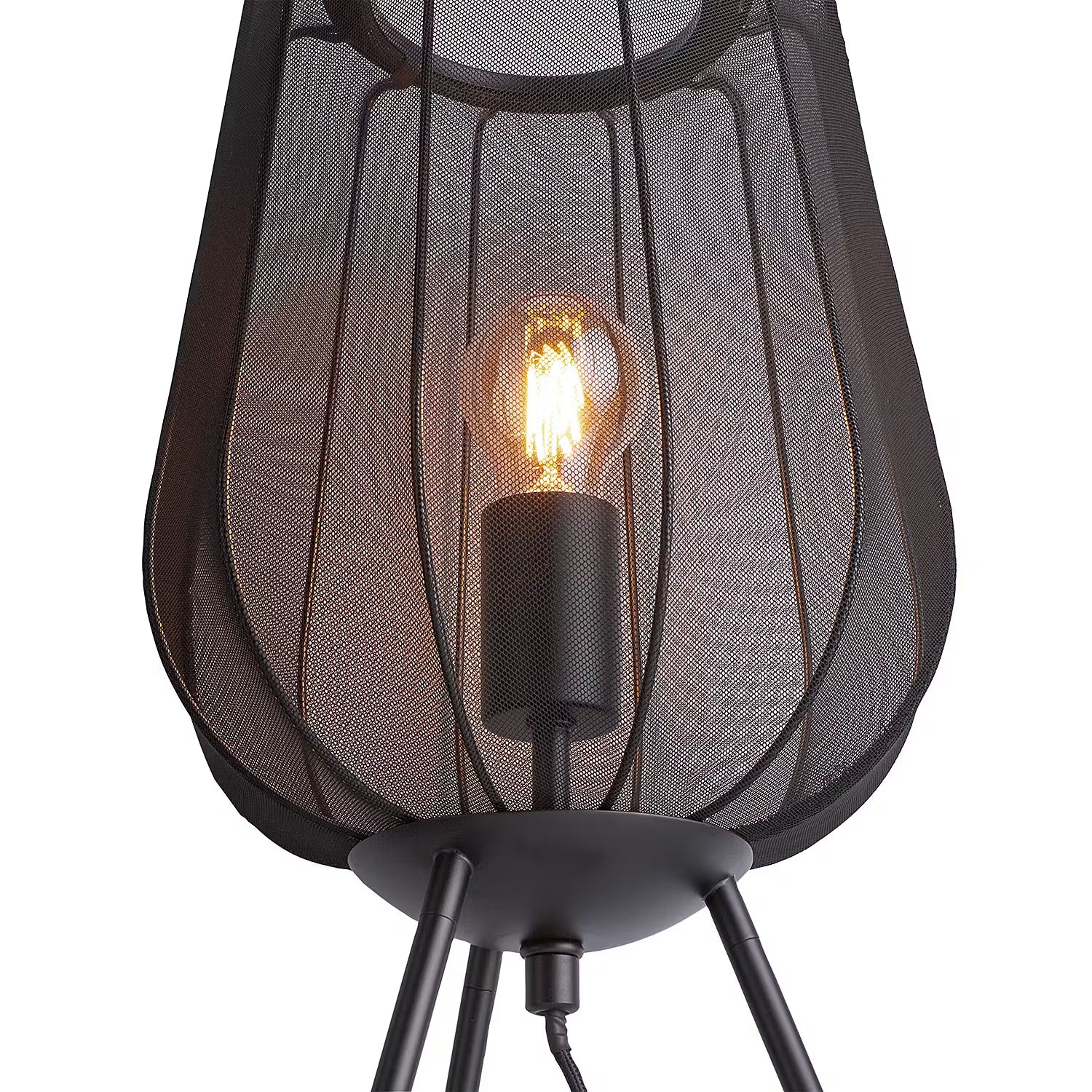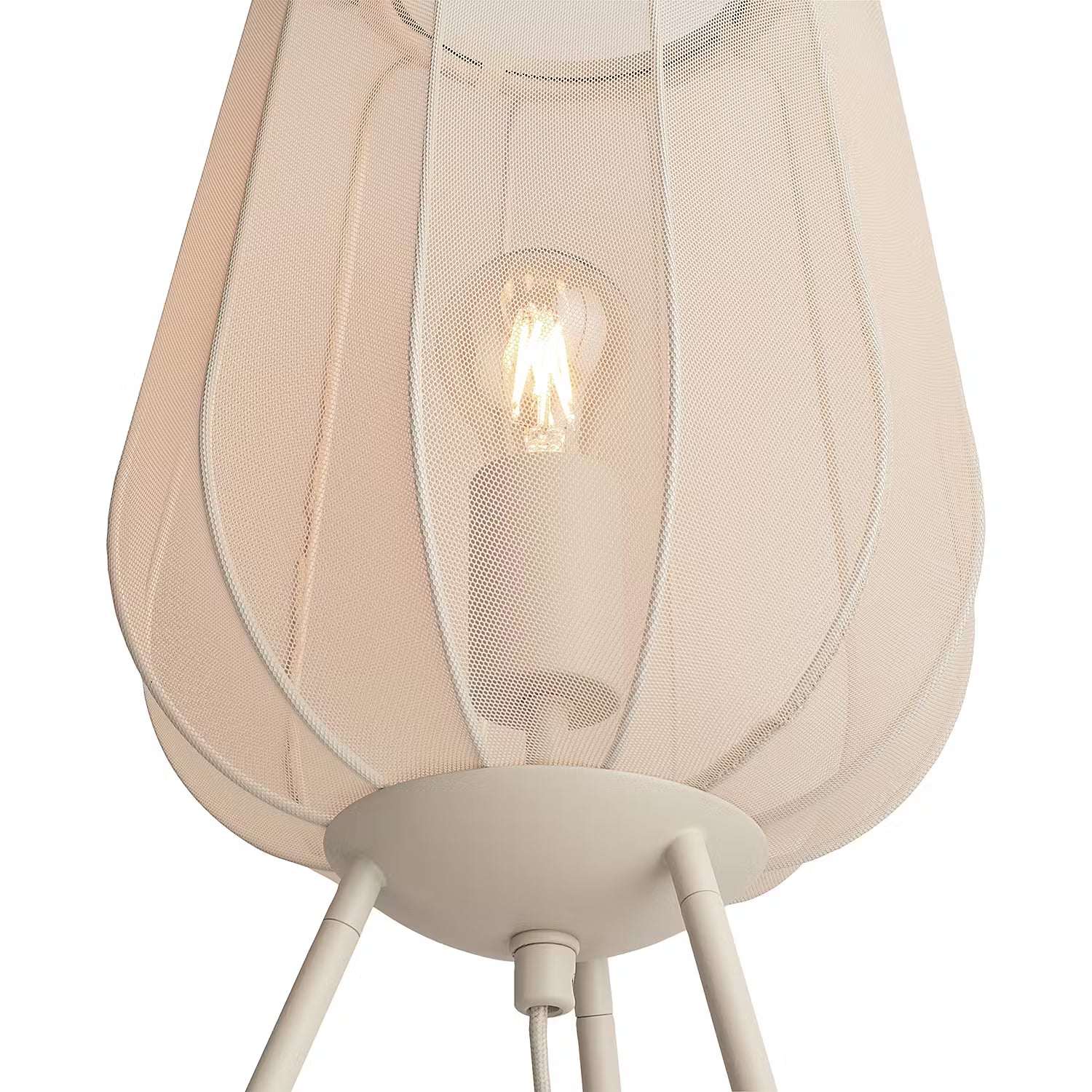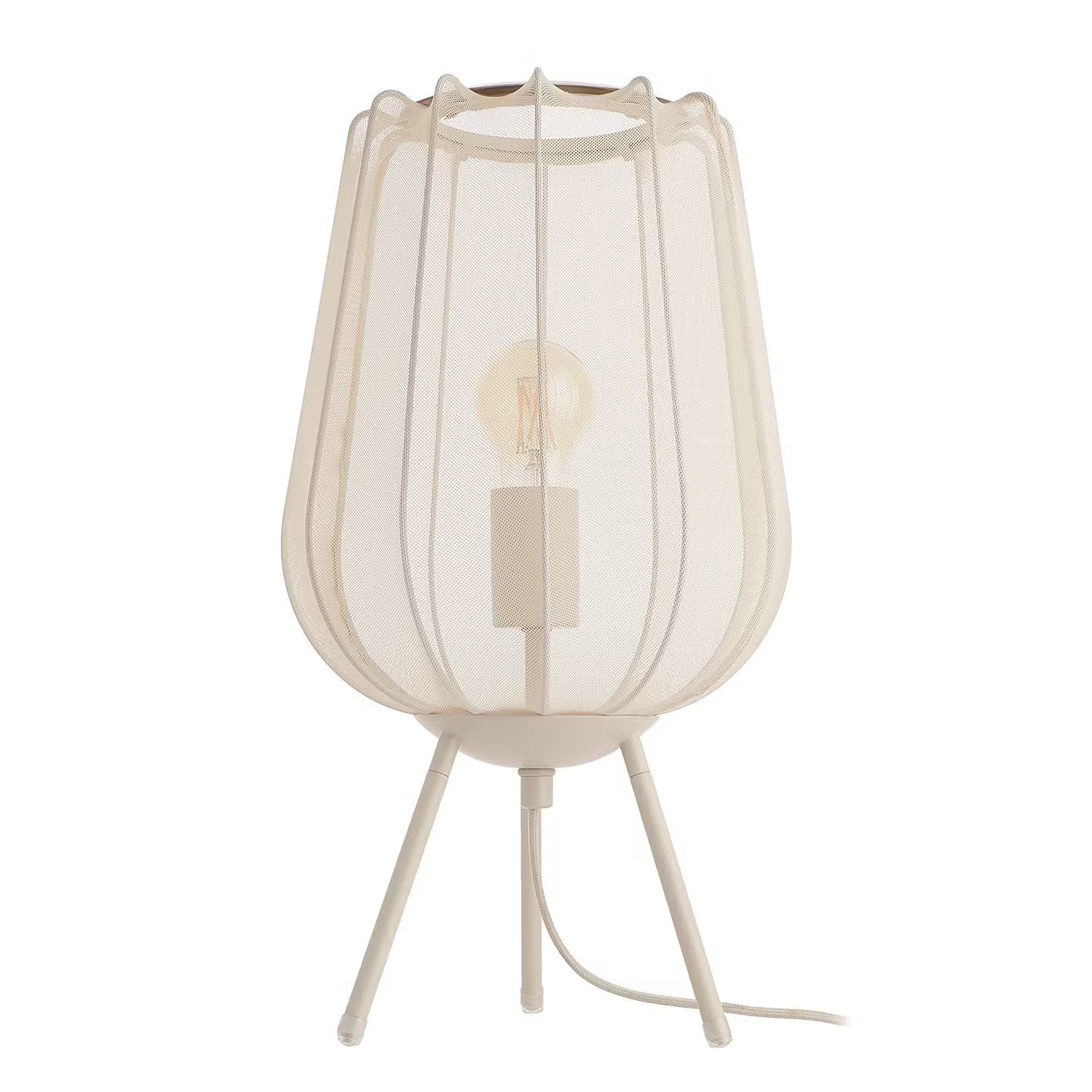 Ein Hauch von Extravaganz umgibt die moderne Amal Tischleuchte. Ihr hoher, geschwungener Schirm ist mit einem transparentem Netzgewebe überzogen und thront auf drei Beinen aus Eisen. Gerade diese Verbindung von exklusivem Design und hochwertiger Materialauswahl verleiht der Tischleuchte eine fast geheimnisvolle Ausstrahlung. In Creme und Schwarz erhältlich, auch als passende Stehleuchte und Hängeleuchte.