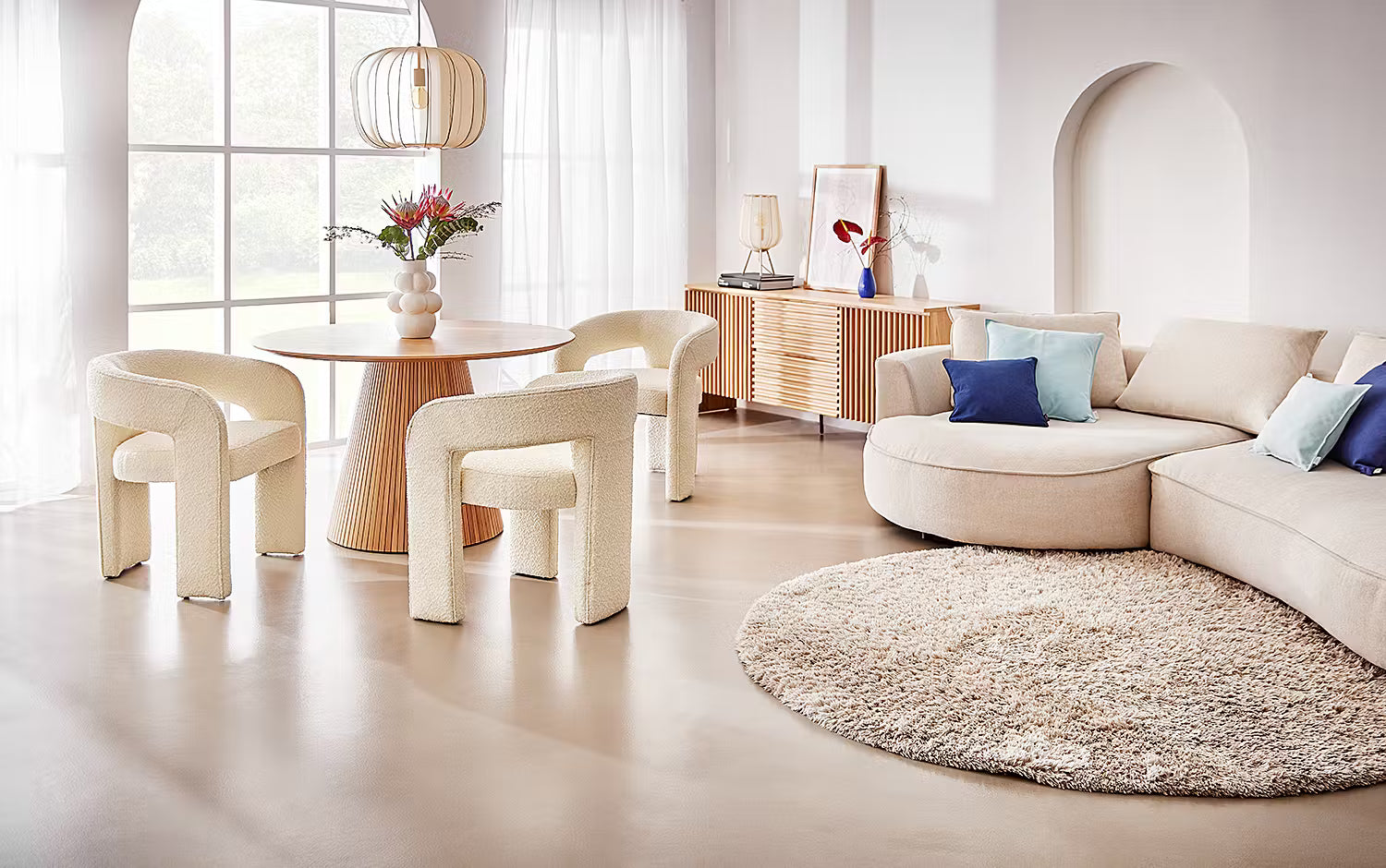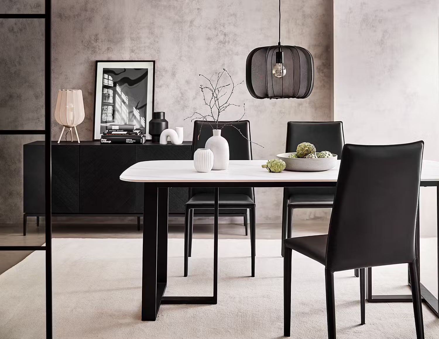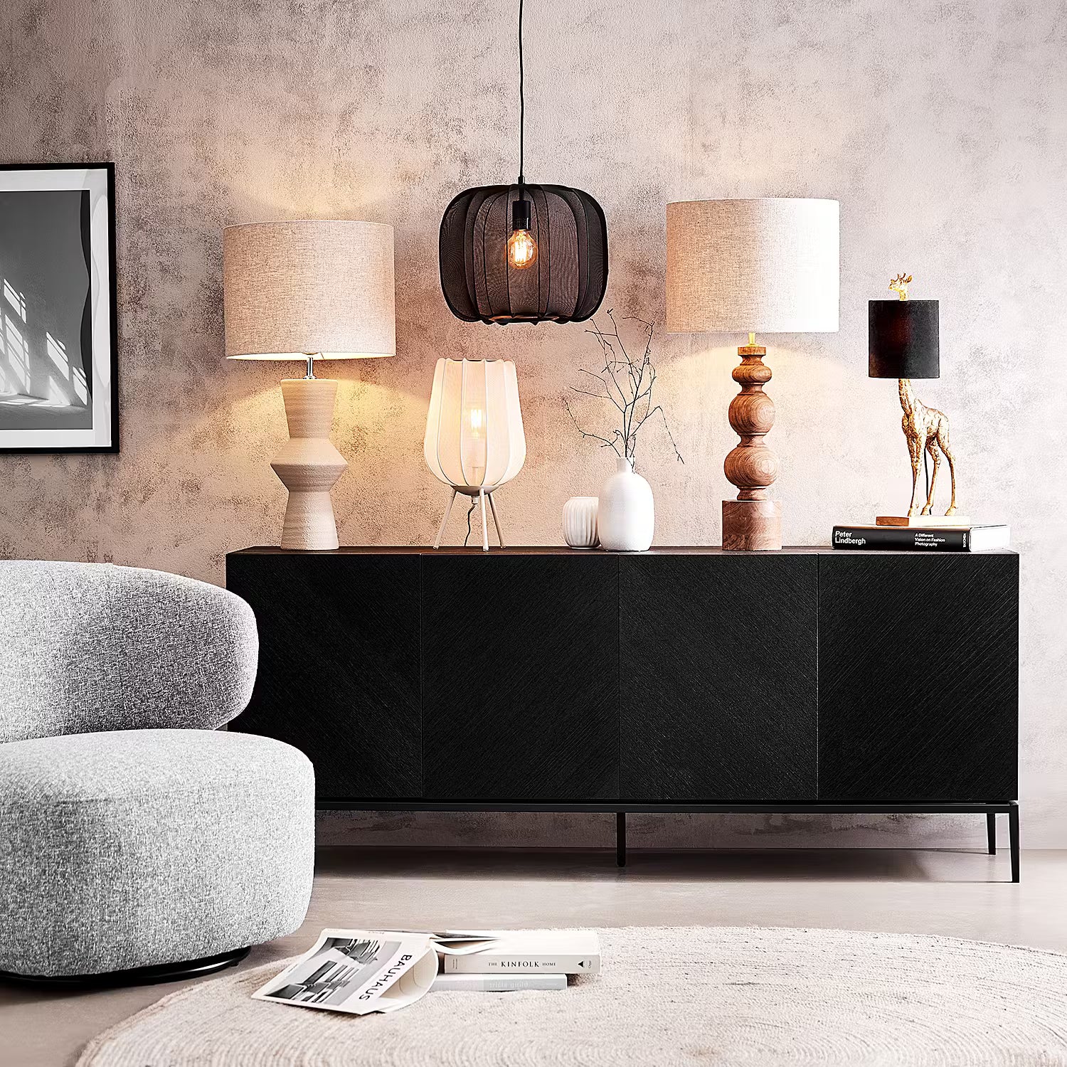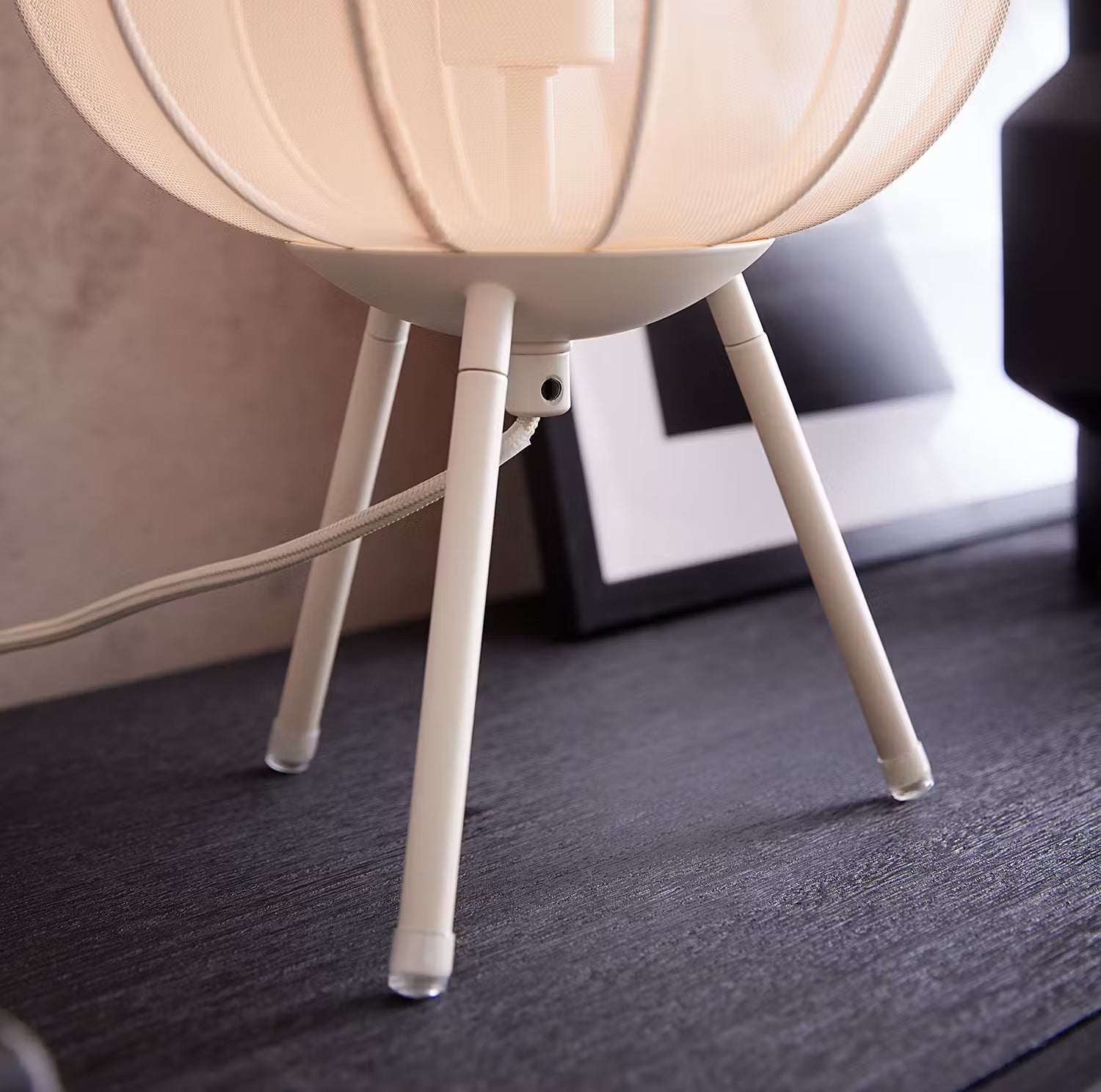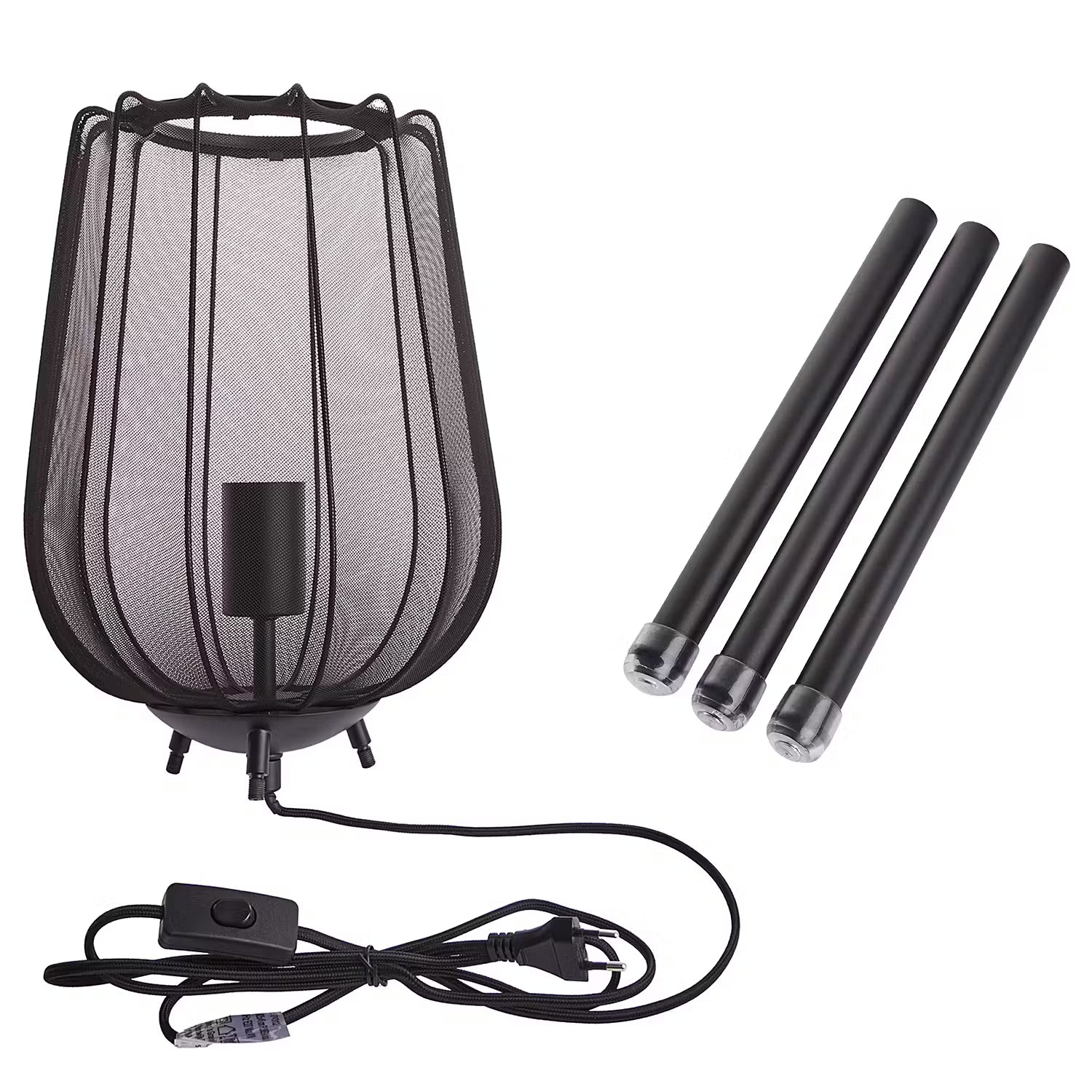 Ein Hauch von Extravaganz umgibt die moderne Amal Tischleuchte. Ihr hoher, geschwungener Schirm ist mit einem transparentem Netzgewebe überzogen und thront auf drei Beinen aus Eisen. Gerade diese Verbindung von exklusivem Design und hochwertiger Materialauswahl verleiht der Tischleuchte eine fast geheimnisvolle Ausstrahlung. In Creme und Schwarz erhältlich, auch als passende Stehleuchte und Hängeleuchte.