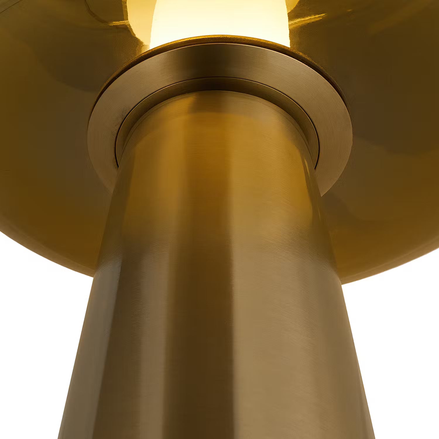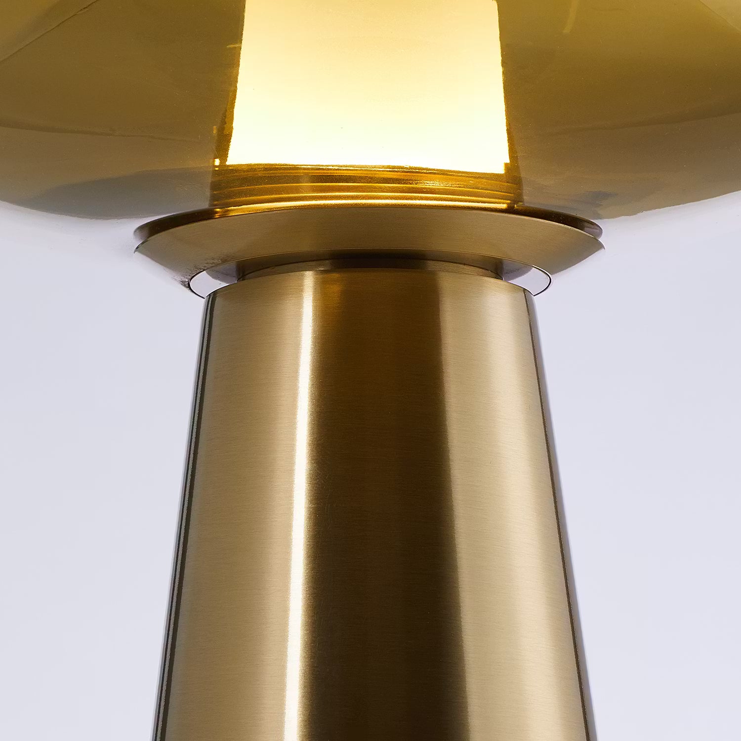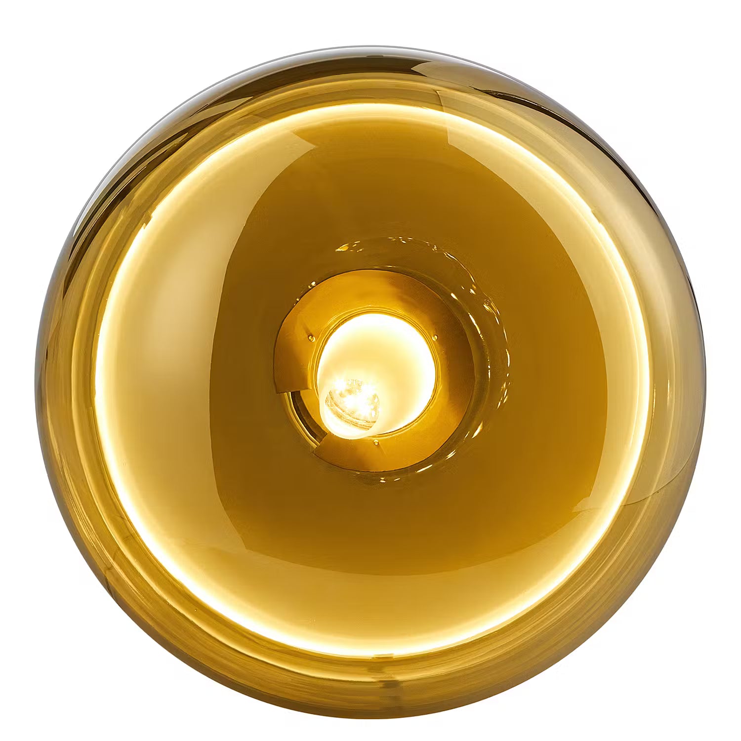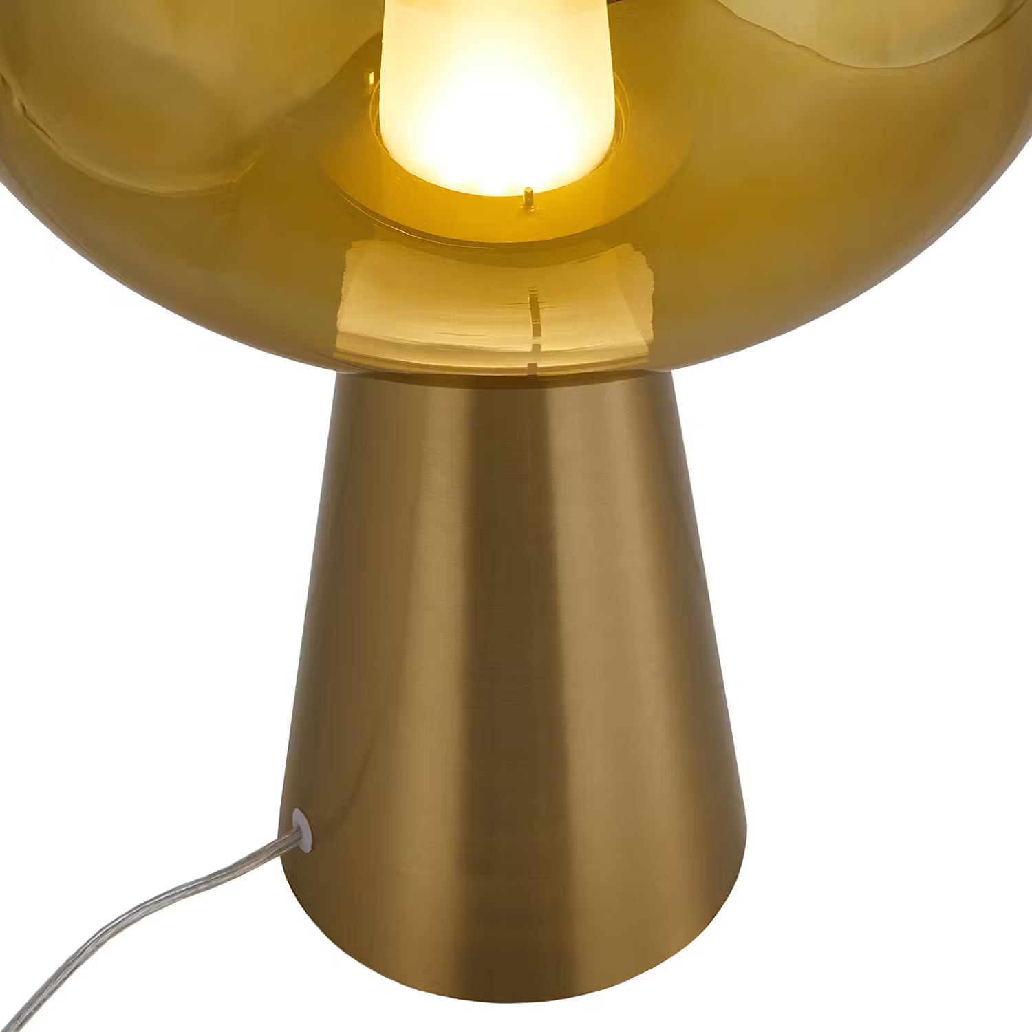 Gold verströmt Eleganz und Luxus bei der exklusiven Art Deco Tischleuchte. Diese Design-Tischlampe aus Glas, Metall und Acryl spielt modern und selbstbewusst mit Formen, indem sie den Leuchtenfuß optisch in die Glaskugel hinein verlängert. Eine echtes Highlight für jedes Zuhause, das von ausgesuchten Objekten und Sinn für Ästhetik geprägt ist.