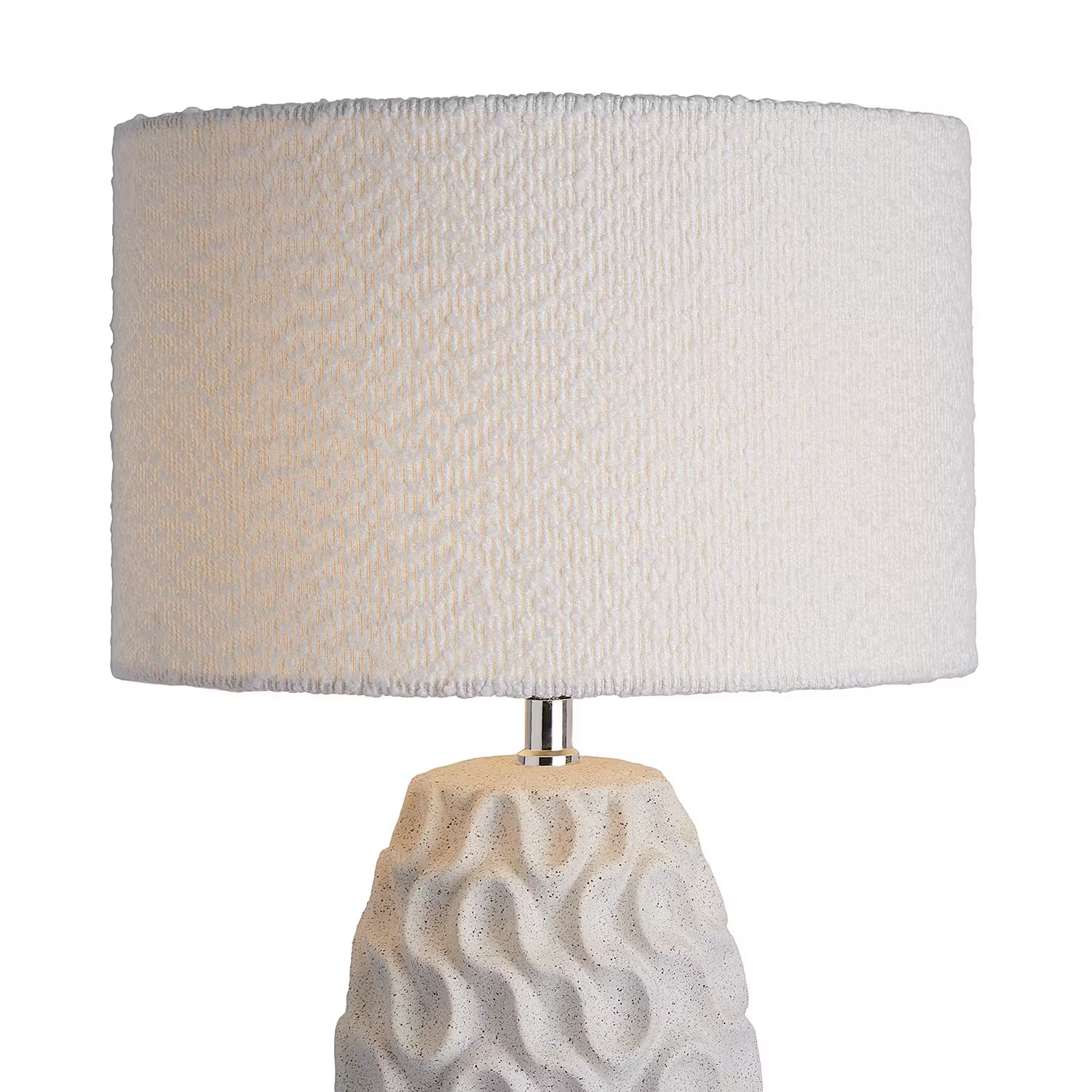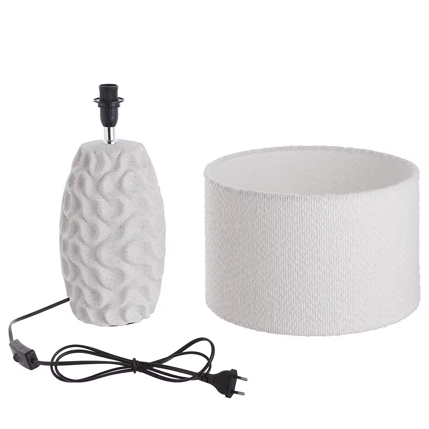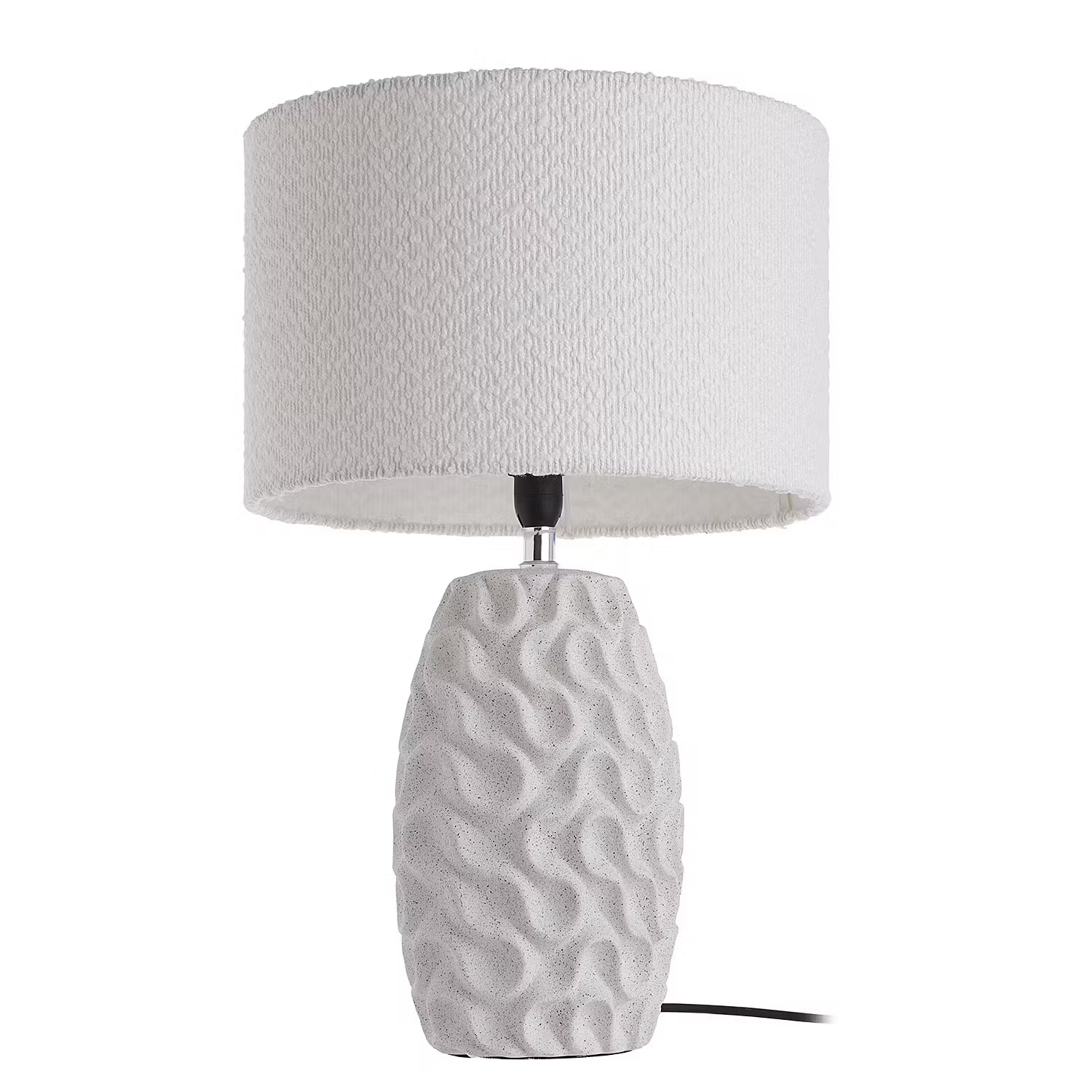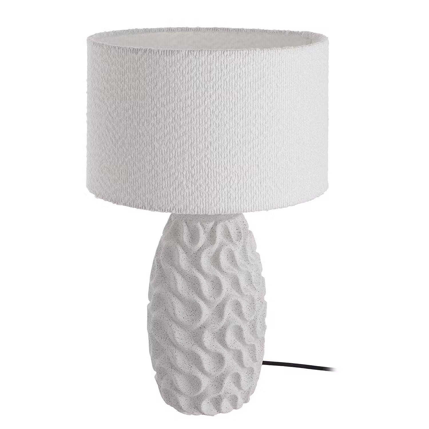 Keramik mit Wellenstruktur trifft strukturierten Boucléstoff: Bei der weißen Marlene Tischleuchte harmonieren unterschiedliche Strukturen und Materialien dekorativ miteinander. Damit passt die helle Tischlampe sowohl zum modernen Landhaus-Stil als auch zum natürlich gehaltenen Zuhause. Selbst in maritime Interieurs lässt sich diese Leuchte stimmig integrieren.