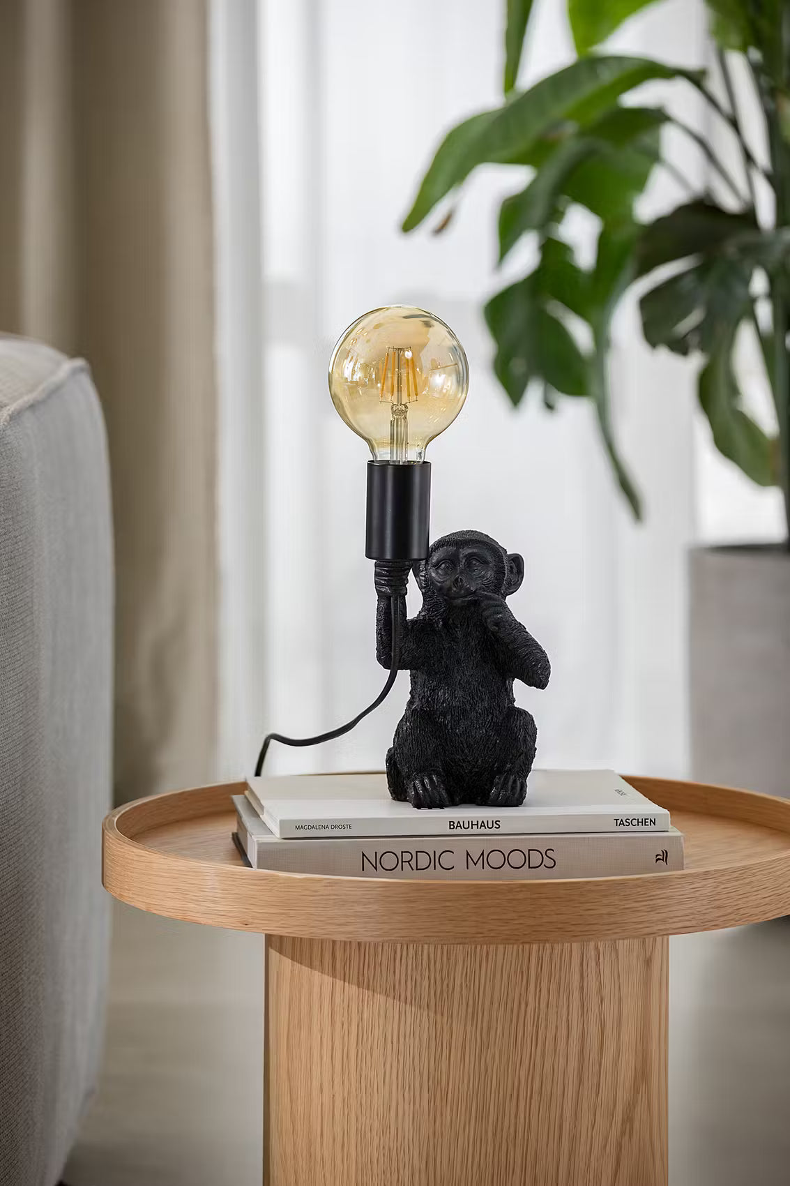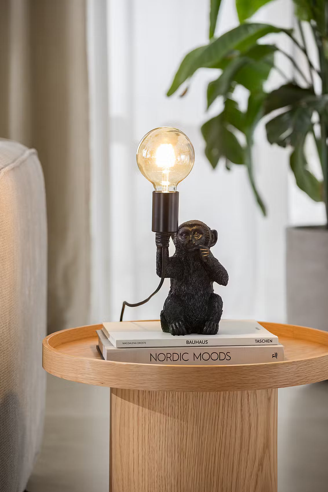 Außergewöhnliche Tierleuchten wie die Monkey Town Tierleuchte Affe sind ein raffiniertes Accessoire, das deinem Zuhause Persönlichkeit verleiht. Mit einem leicht provokanten Augenzwinkern bringt diese Tischlampe in Form eines sitzenden Affen deinen selbstbewussten Stil zum Ausdruck - z.B. als Blickfang im Wohnzimmer. Mit Textilkabel in passender Farbe und Kippschalter. Erhältlich in Gold und in Schwarz.