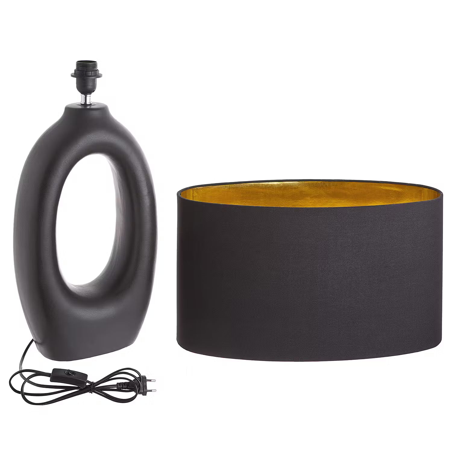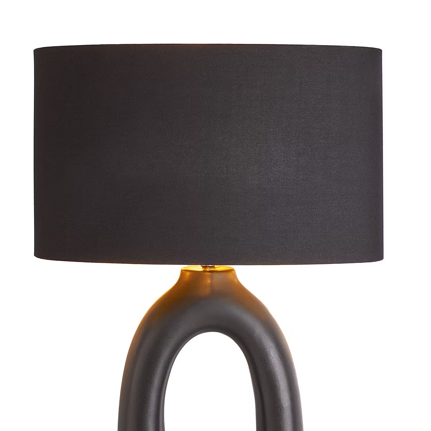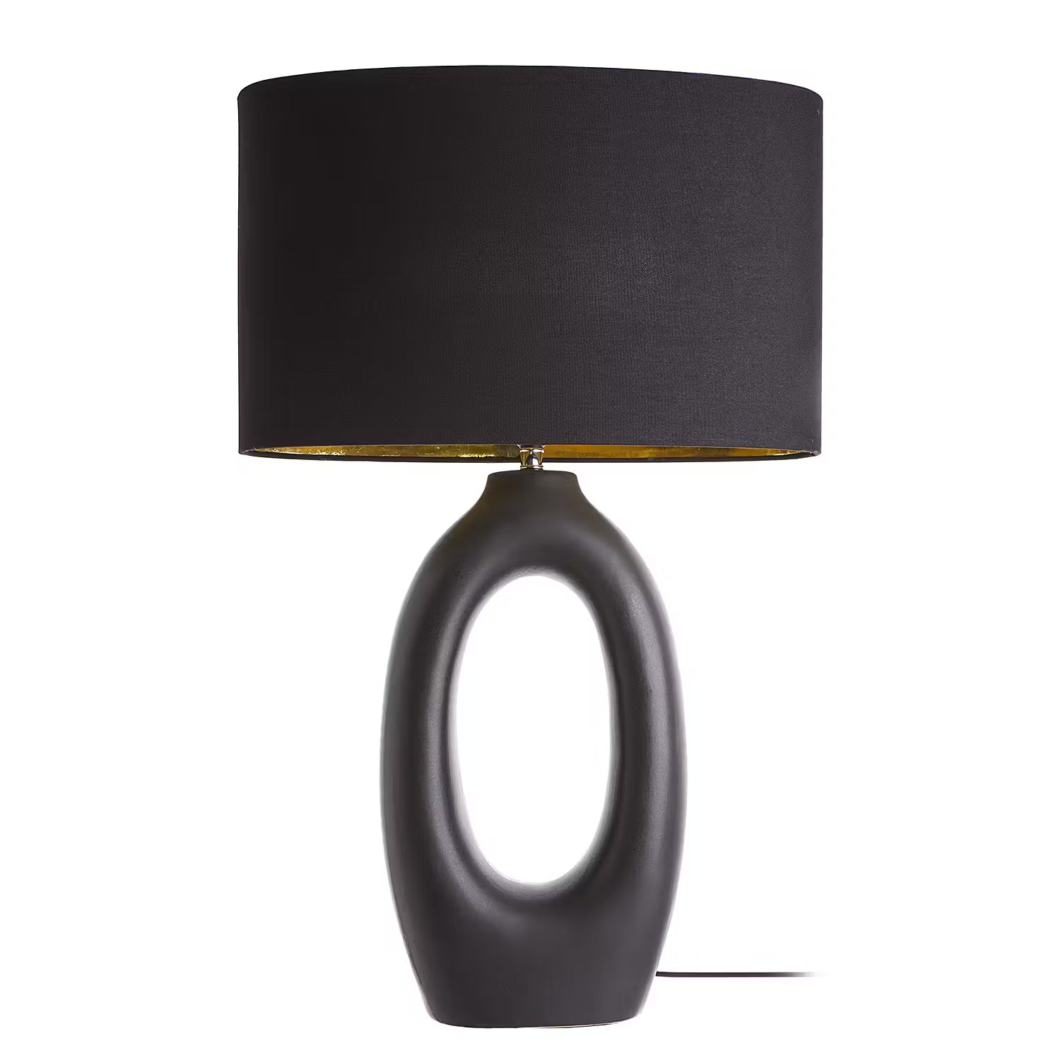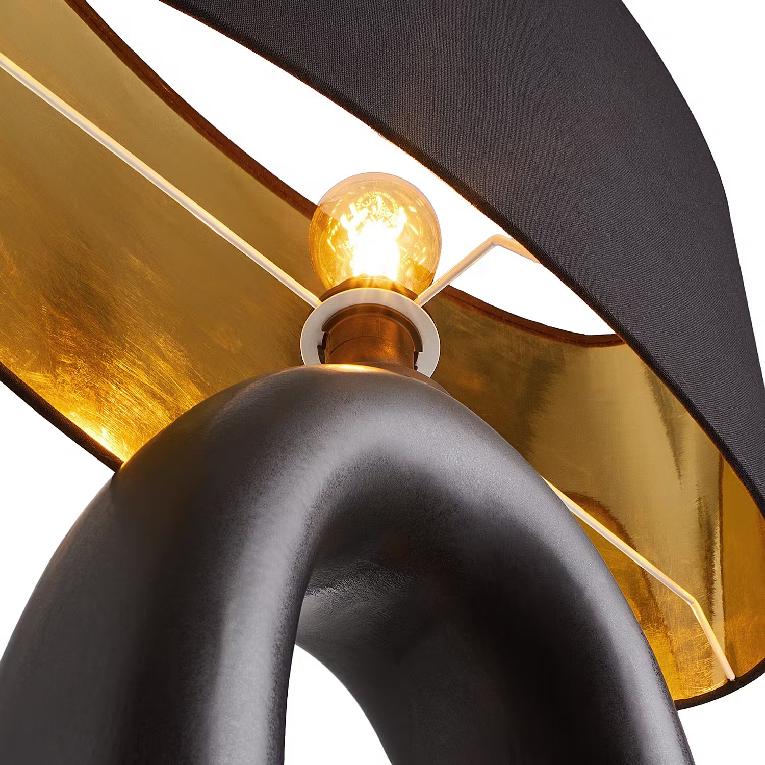 Black is beautiful bei der Mood Tischleuchte mit Lampenfuß in matt-schwarzer Keramik mit rauem Finish und Schirm in schwarzem Leinenstoff, von innen in Gold gehalten. Der Fuß dieser edlen Design-Leuchte erinnert von der Form her an eine Skulptur. Auf dem Tisch, auf Bestelltischen oder einem Sideboard setzt diese Lampe ein Zeichen und strahlt zugleich Ruhe aus.
