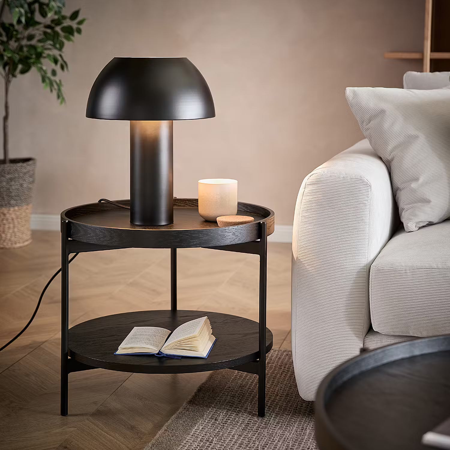 Die moderne, reduzierte Pilzform und das farbige Metall mit mattem Finish gehen bei der Protoype Tischleuchte eine trendige Verbindung ein. Ausgestattet ist die Designleuchte mit einem schwarzen, 1,5 m langen Textilkabel. So kannst du die Tischlampe flexibel in deinem Zuhause platzieren und z.B. auf einem Beistelltisch, einer Kommode oder eben auf dem Esstisch einen cleanen Blickfang schaffen. Erhältlich in den Farben Creme, Salbei und Schwarz.