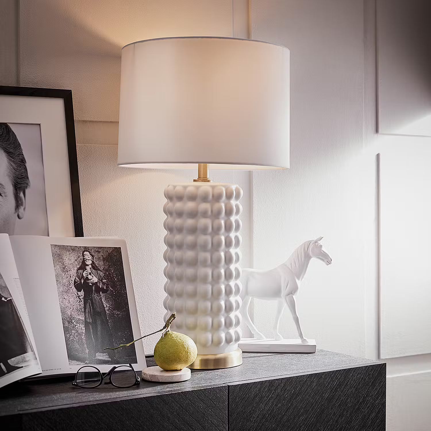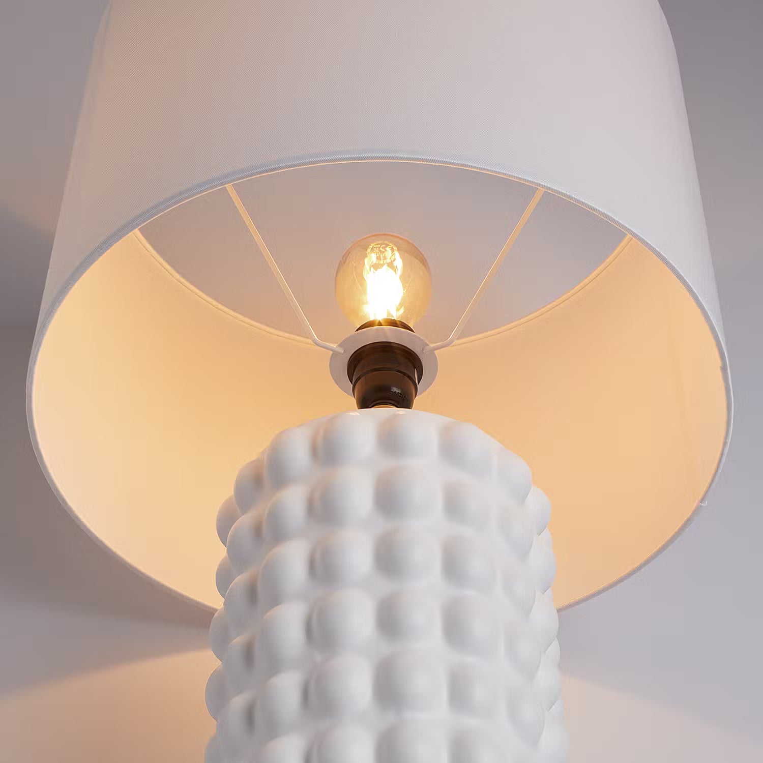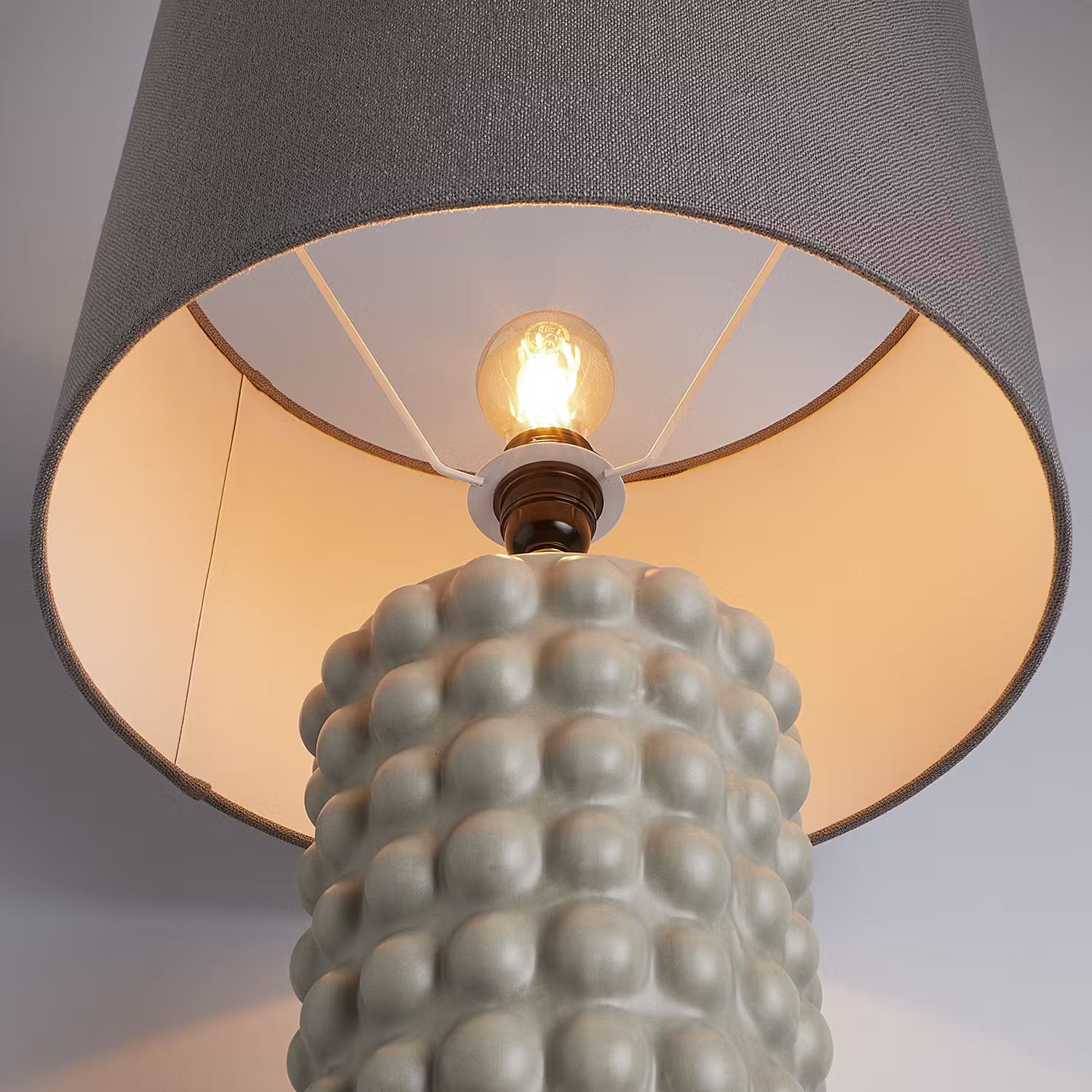 Was für eine Tischleuchte! Die hochwertige Sculpture Tischleuchte zeigt mit 73 cm Höhe echte Größe - und kommt zudem mit ihrem Design ganz groß raus. Der Keramik-Fuß im angesagten Bubble-Style und der Ton-in-Ton-harmonierende, stoffbespannte Schirm ergeben eine grandiose Kombination, perfektioniert durch goldene Akzente. Diese Tischlampe ist ein edler Hingucker in jedem Zuhause, das Wert auf Stil und einen Hauch Extravaganz legt.
