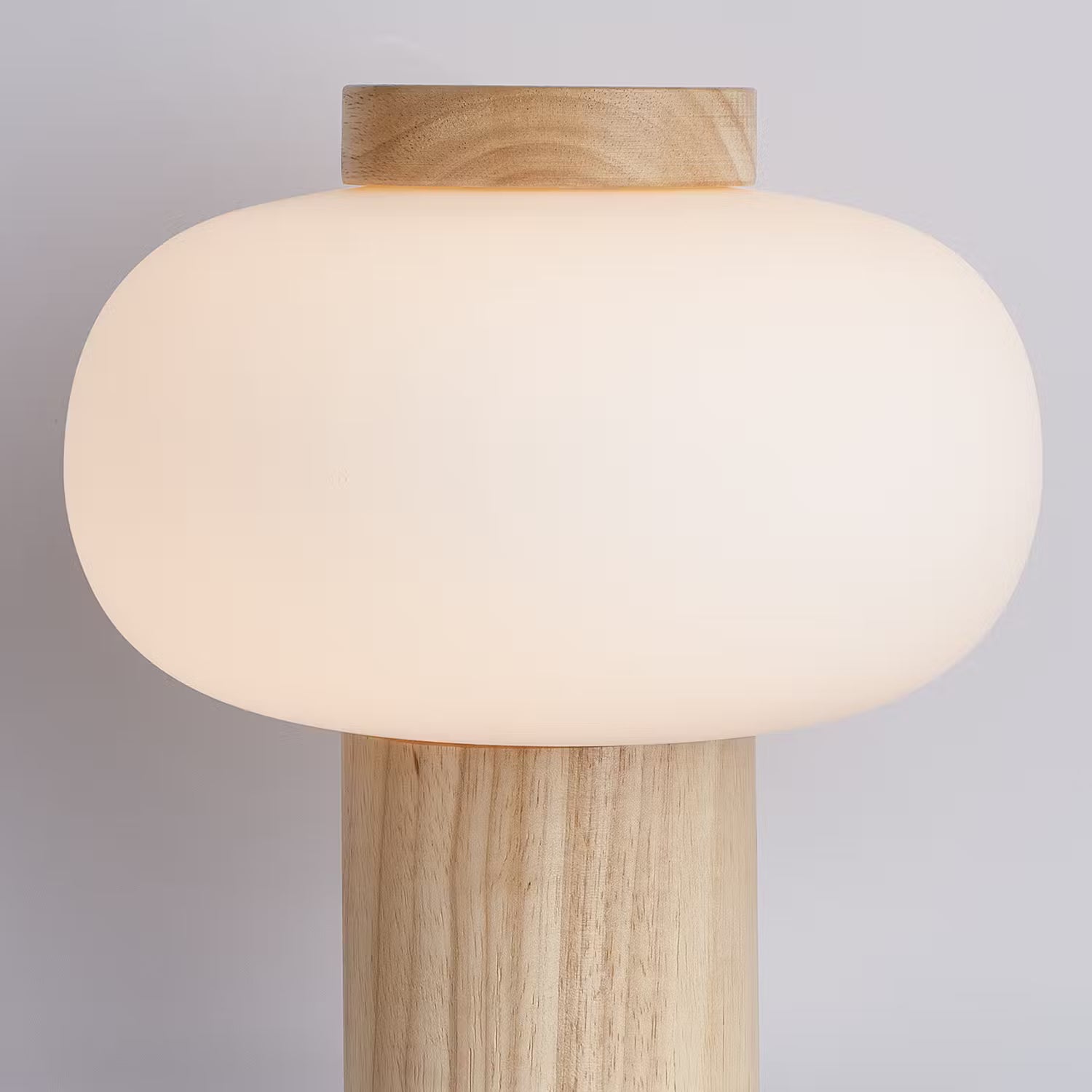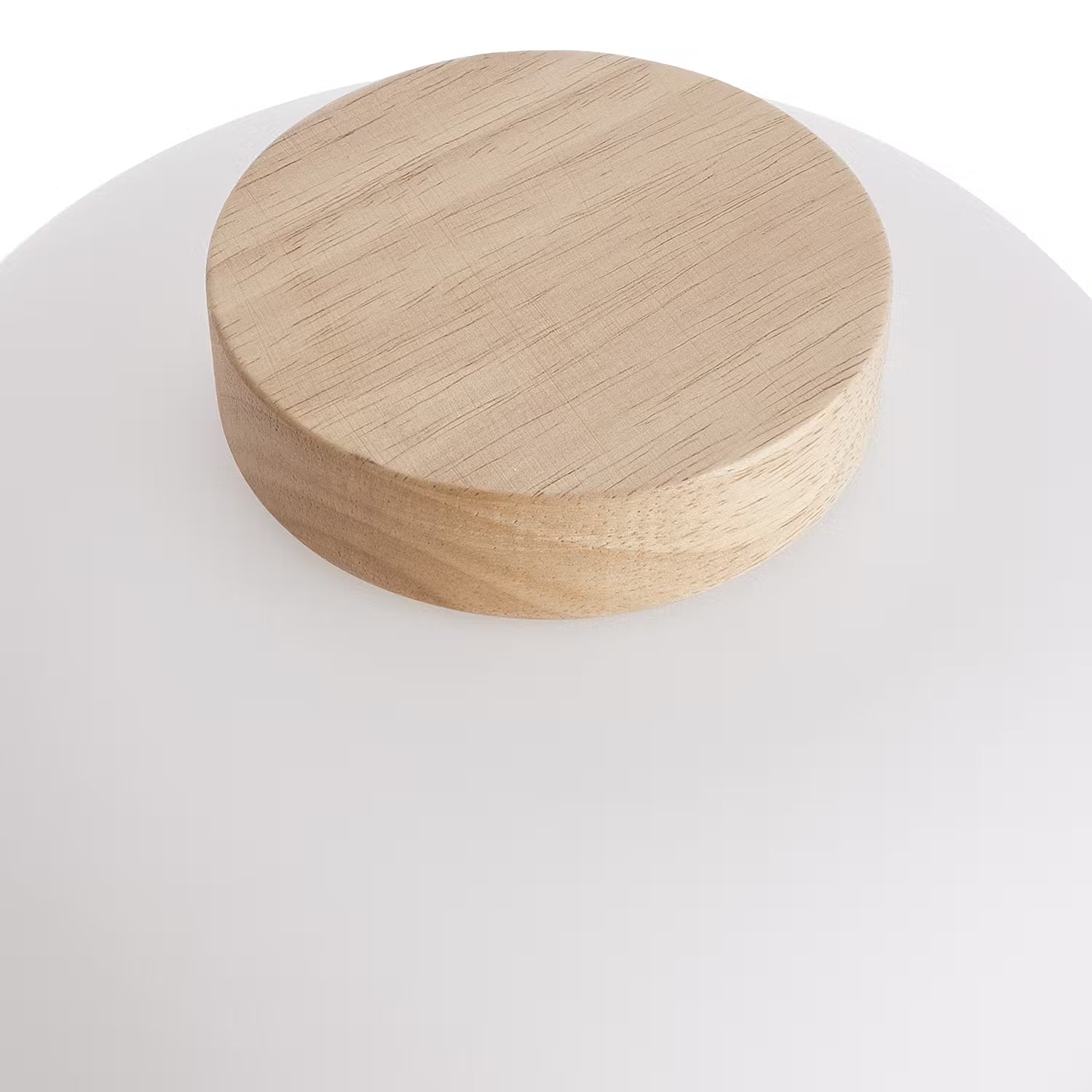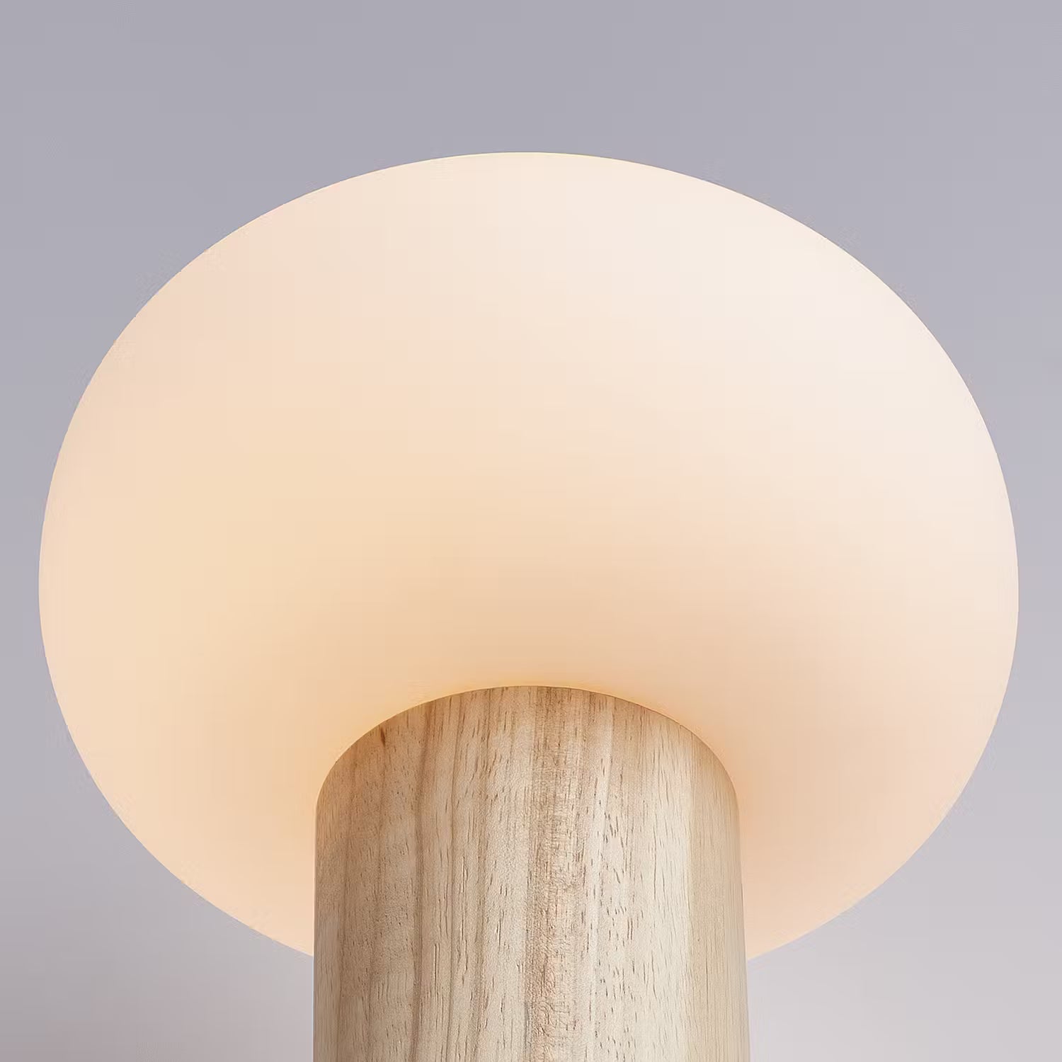 Weißes Glas trifft naturfarbenes Holz bei der modernen Taavi Tischleuchte, die mit Gummibaumholz, also einem nachwachsenden Rohstoff, hergestellt ist. Damit die Schönheit von Glas und Holz wirken kann, besinnt sich das Design auf klare, reduzierte Formen. So entsteht eine Tischlampe, die sich vielseitig kombinieren und nutzen lässt, z.B. im Wohnbereich oder Schlafzimmer.