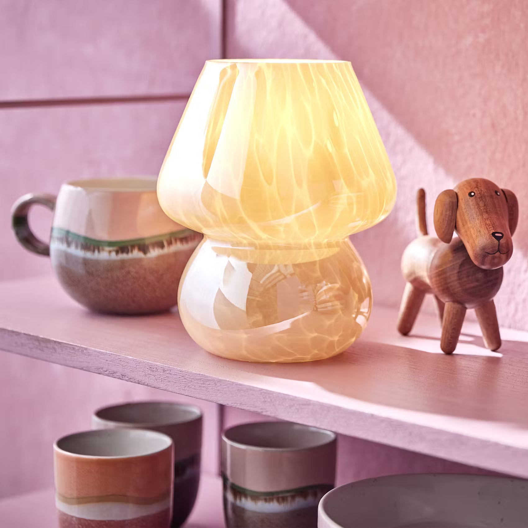 Räume gestalten und Ambiente schaffen durch Licht: Mit der Verre Tischleuchte aus Glas und Eisen setzt du warme Lichtakzente. Die kleine Leuchte in Hellorange begeistert mit ihrer hübschen Pilzform und Kombination aus glänzender und matter Oberfläche. Du platzierst die Lampe einfach auf einem Bestelltisch, einer Kommode oder z.B. der Fensterbank - und schon ist dein Zuhause um ein Highlight reicher.