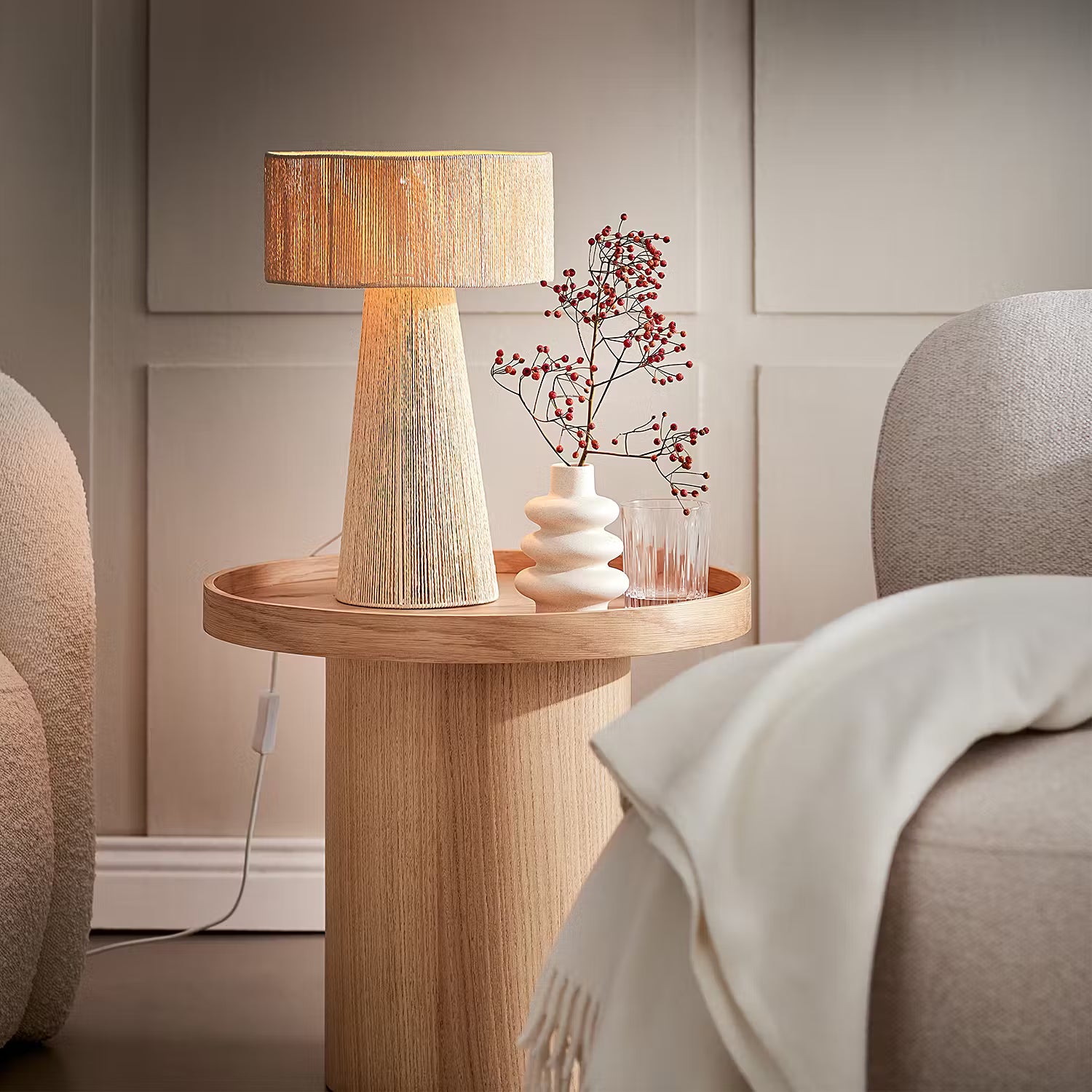 Papier statt Plastik: Die Kordeln der Weaver Tischleuchte bestehen aus natürlichem Paperrope - und sorgen im Innenbereich deines Zuhauses für ein angenehmes Stimmungslicht. Optisch präsentiert sich die Tischlampe dabei in modernem Design und wohnlichem Naturton. Mit Textilkabel in passender Farbe. In einer weiteren Variante erhältlich.
